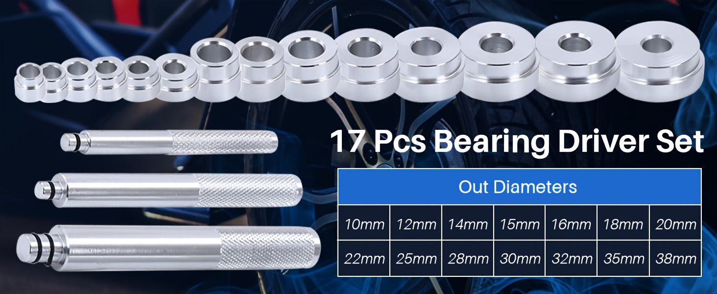 Набор из 17 шт. для установки подшипников и уплотнений, прочный алюминиевый, устойчивый к ржавчине, инструмент для оси колеса и втулки