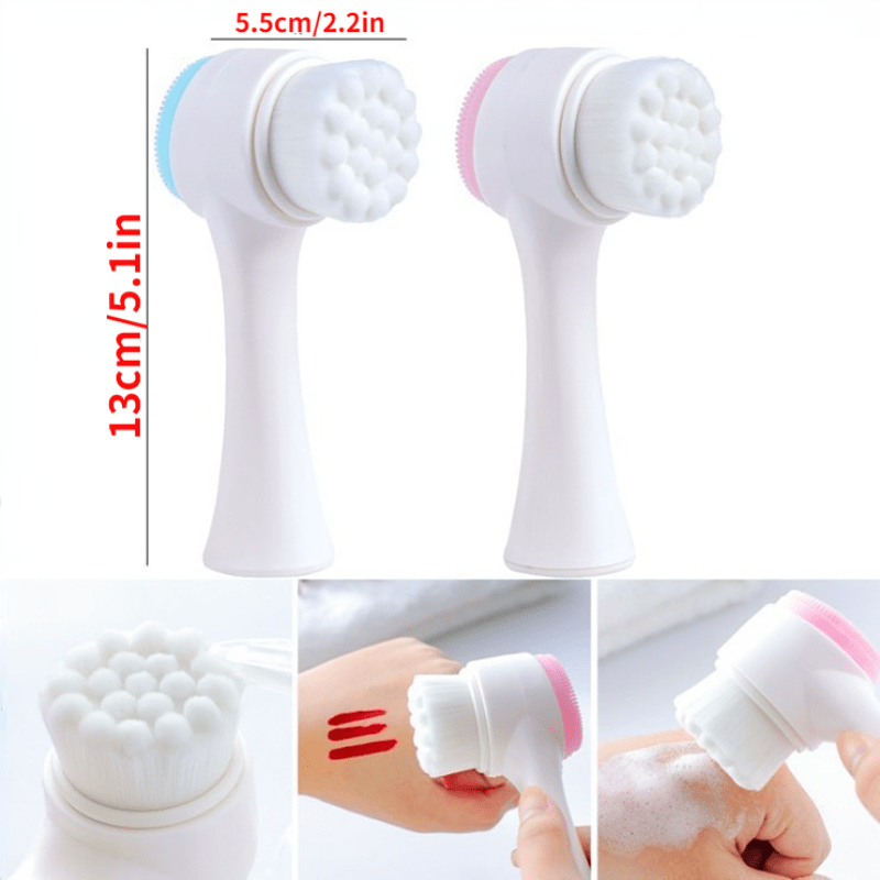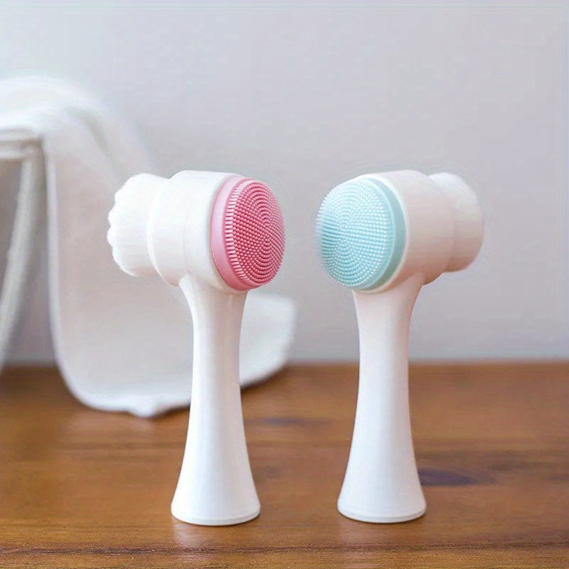 3D двухсторонняя щетка для очищения лица с мягкими волокнами из PU для бережного удаления макияжа и глубокого очищения пор