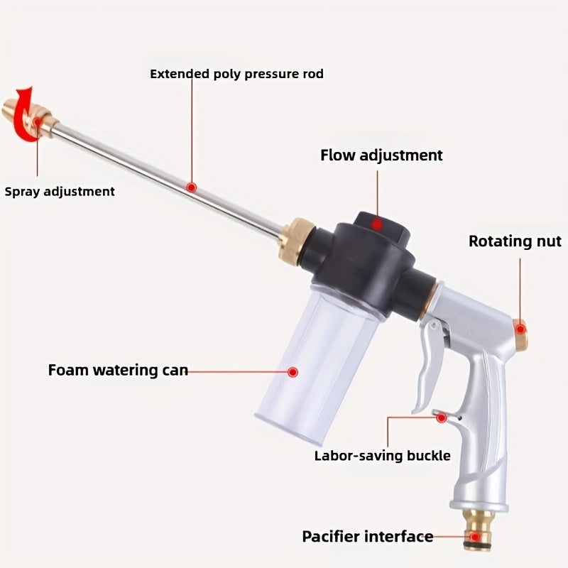 Медная водяная пушка из нержавеющей стали высокого давления с удлинённой трубкой и пенным распылителем для мойки автомобиля и полива сада