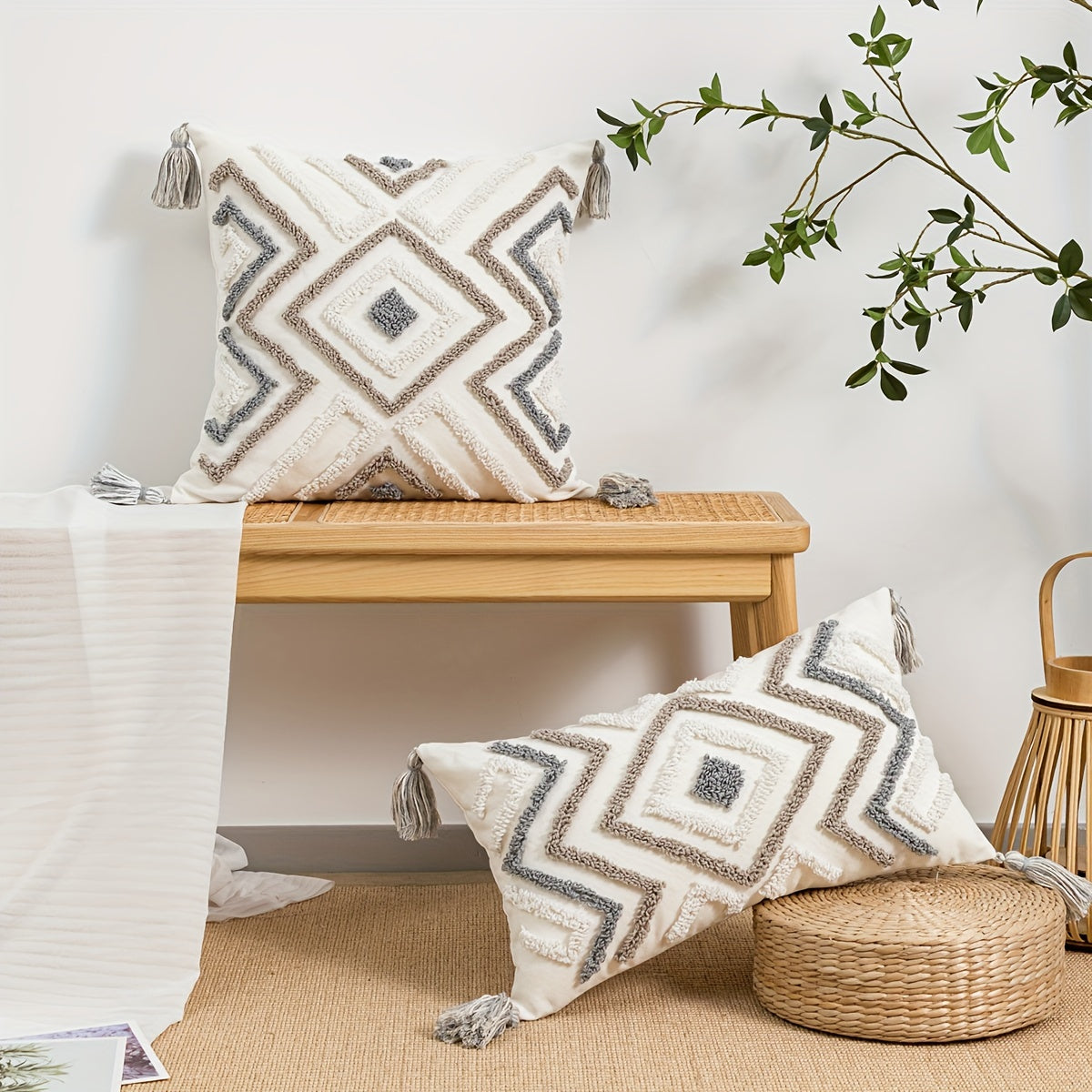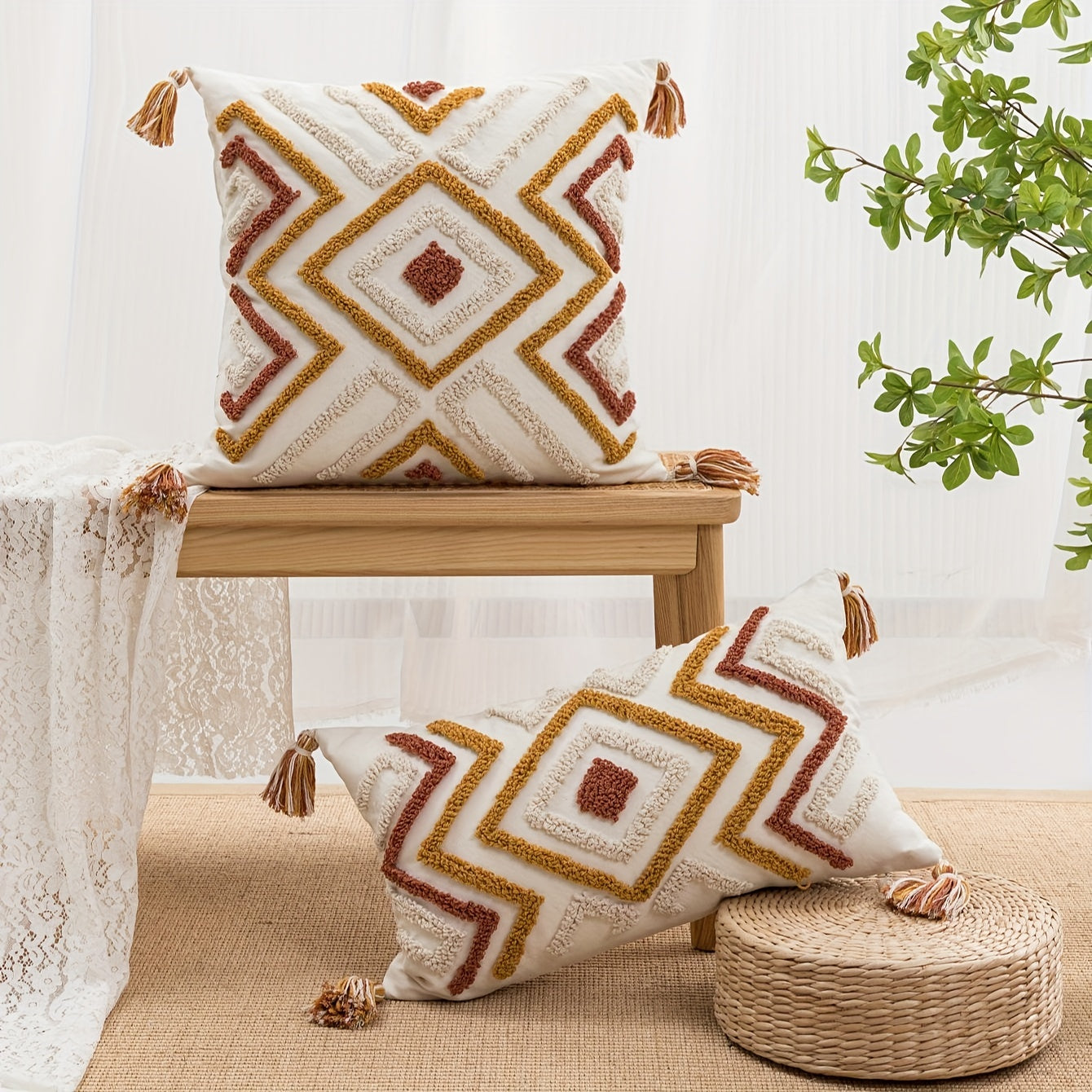 1 шт. Геометрическая квадратная подушка в стиле бохо с петлевой бархатной вышивкой, напечатанный чехол для подушки для домашнего декора