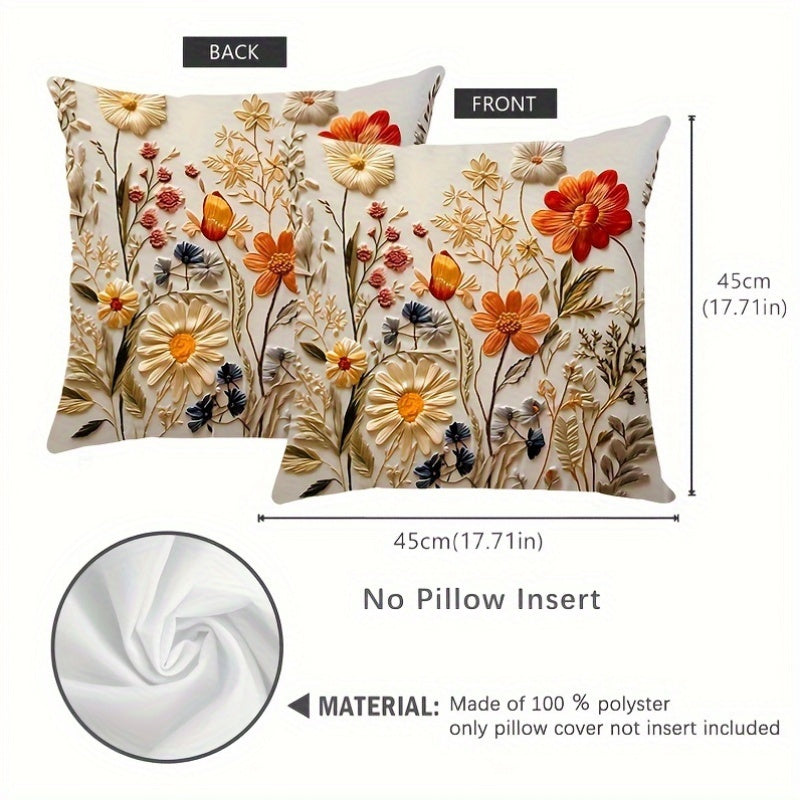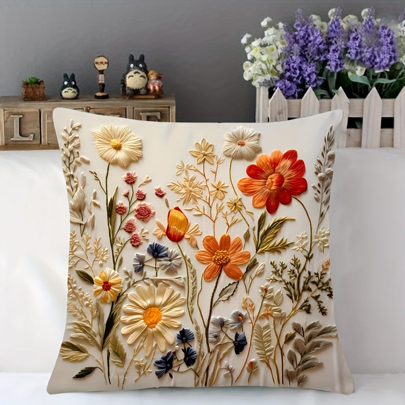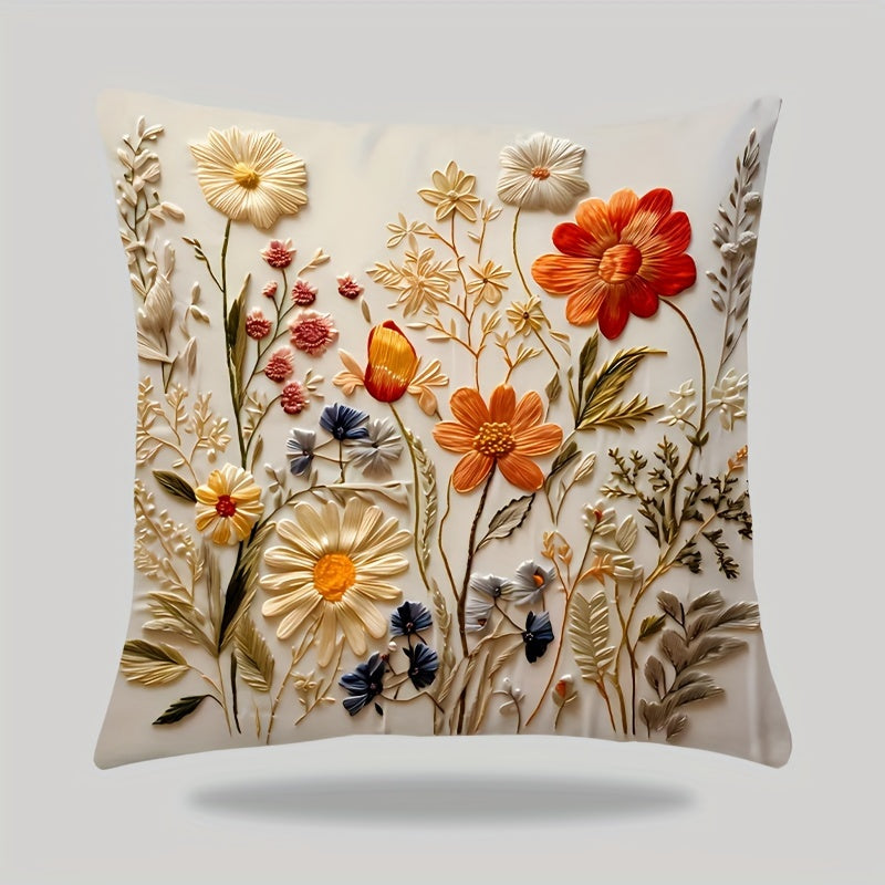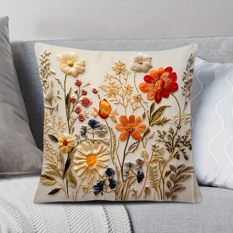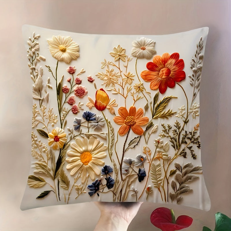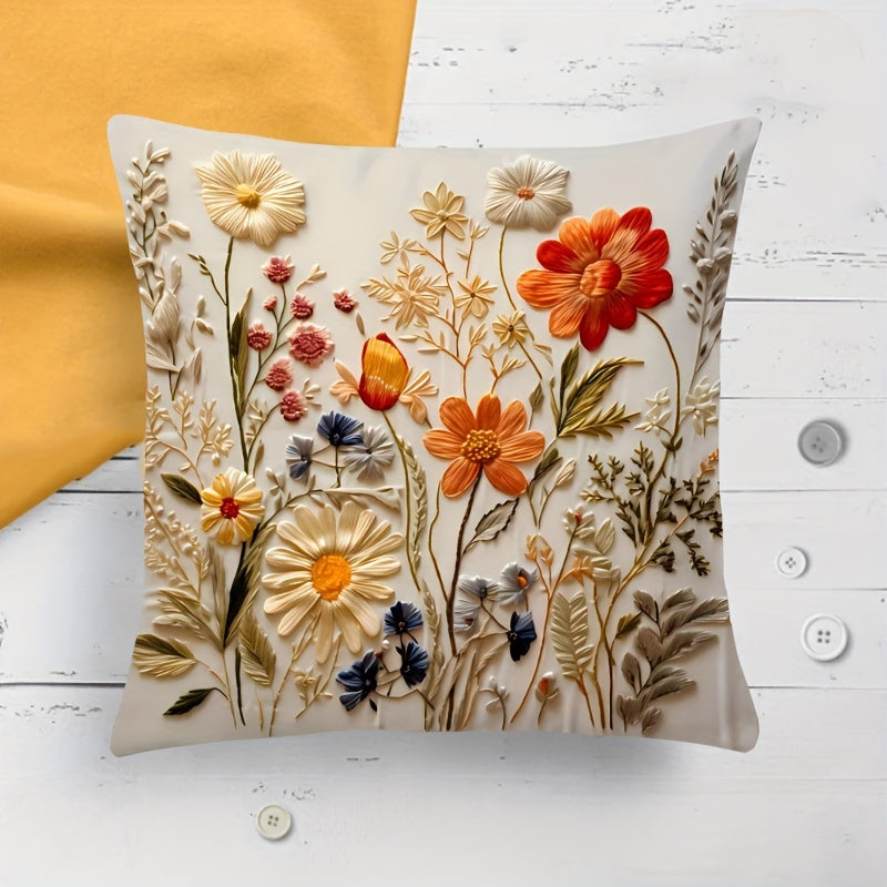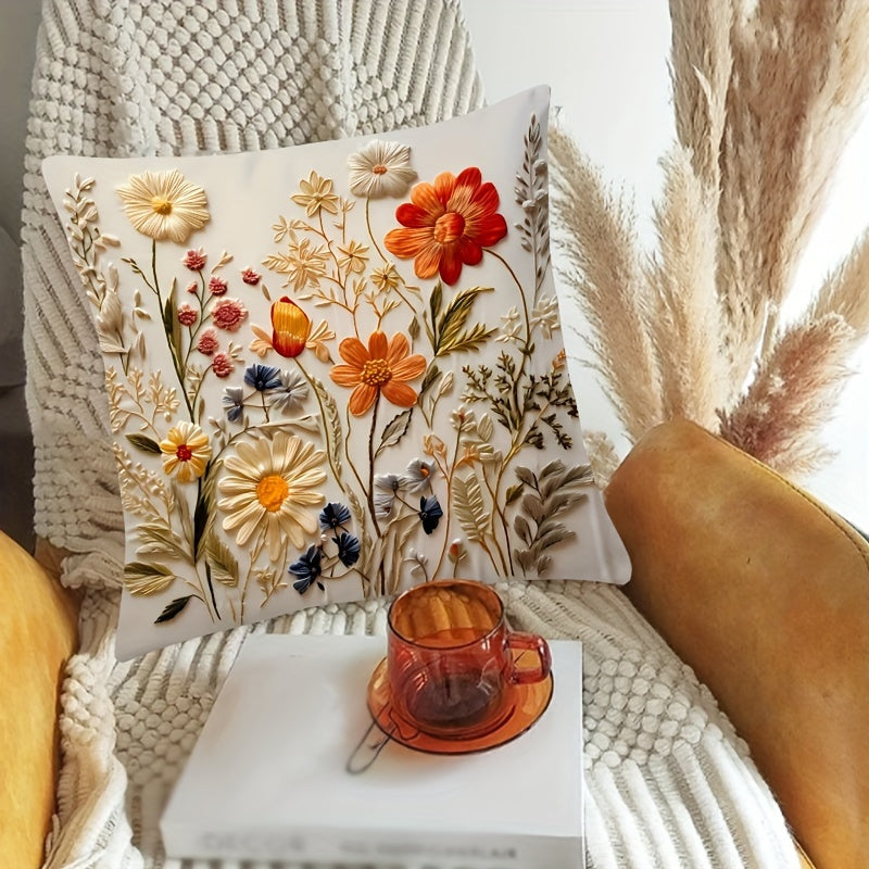 1 шт. Коврик в стиле MEMNUN с цветочным узором из полиэстера; Машинная стирка с застежкой-молнией; Тканевый декоративный чехол для подушки для домашнего и комнатного декора (вставка для подушки не включена)