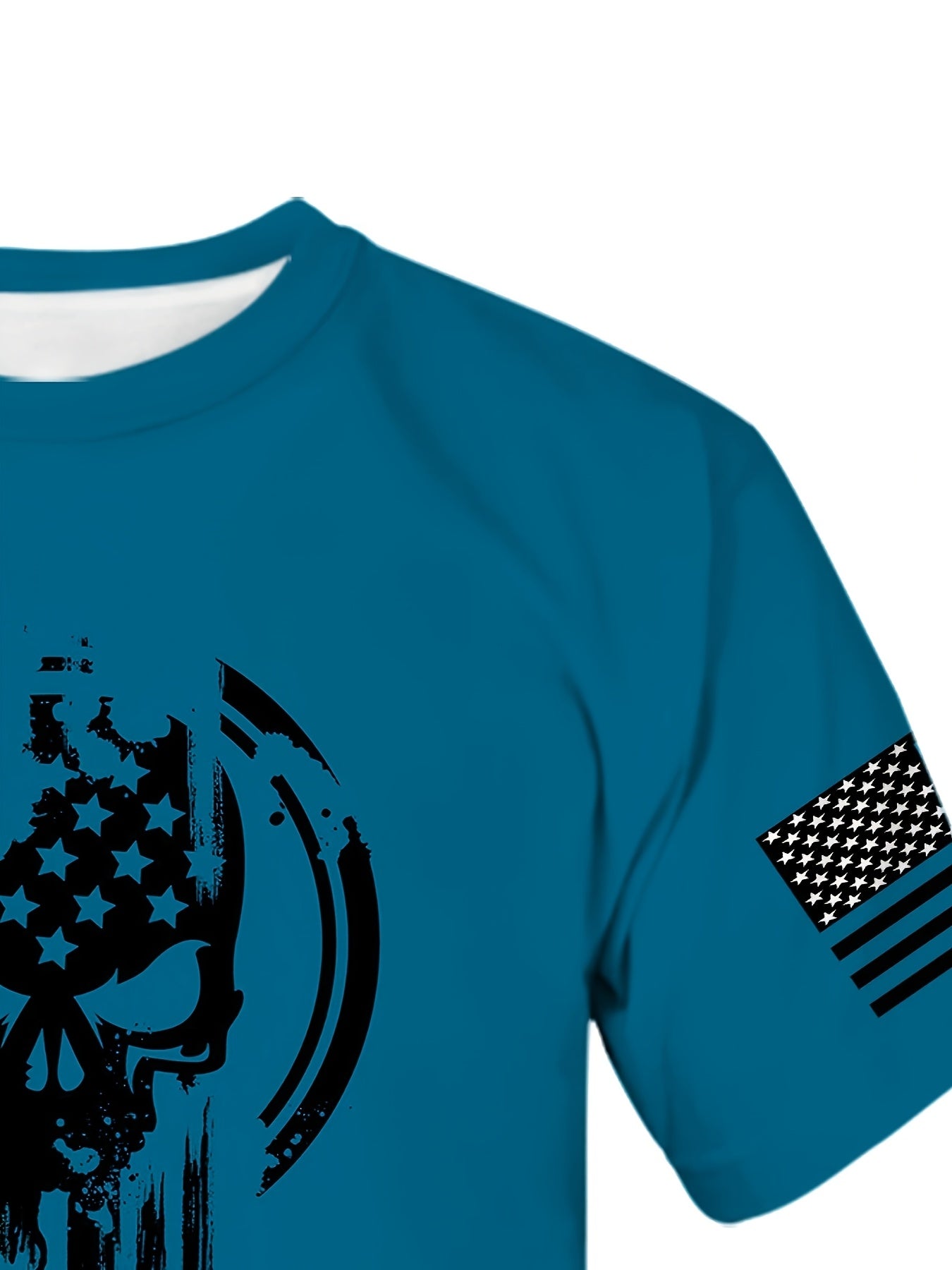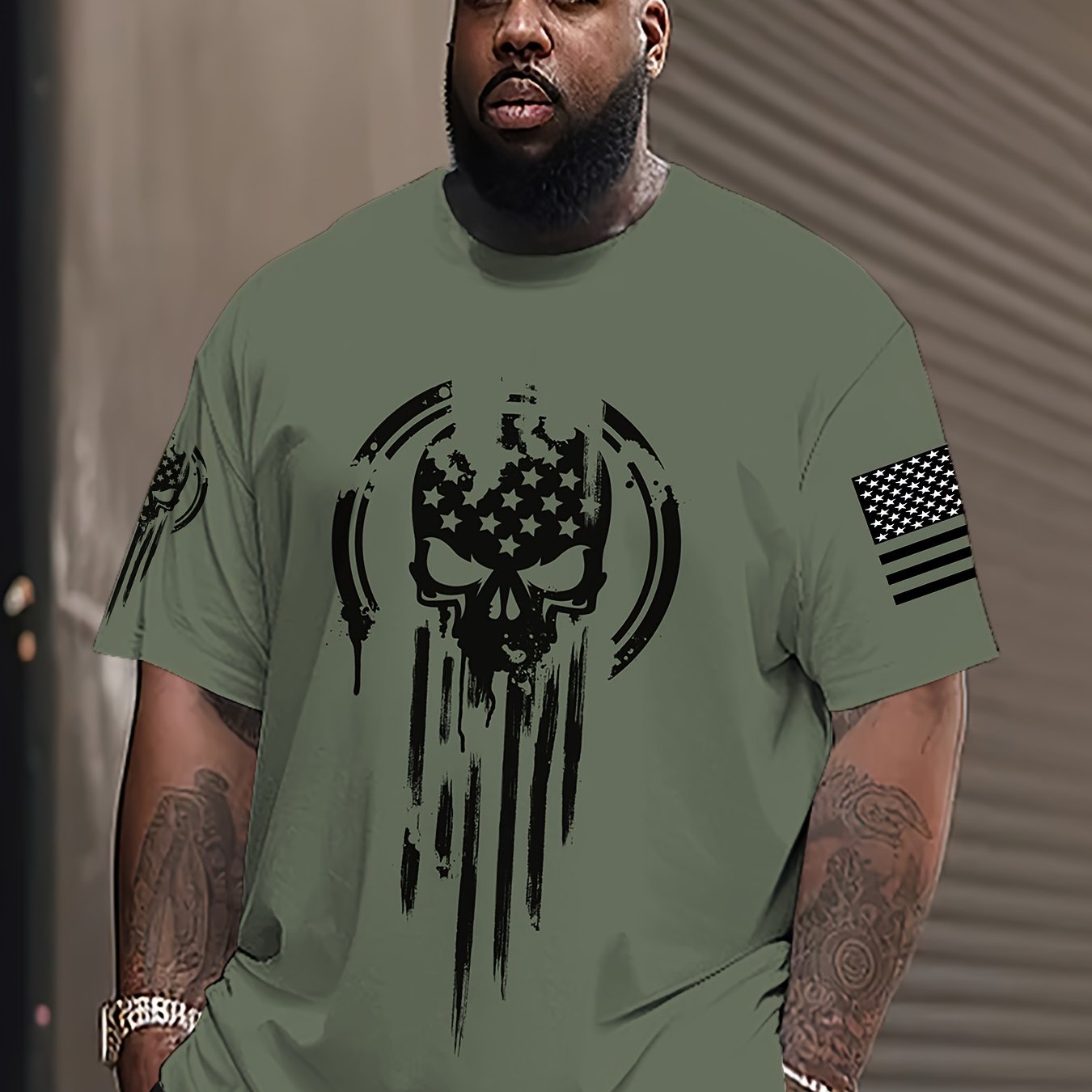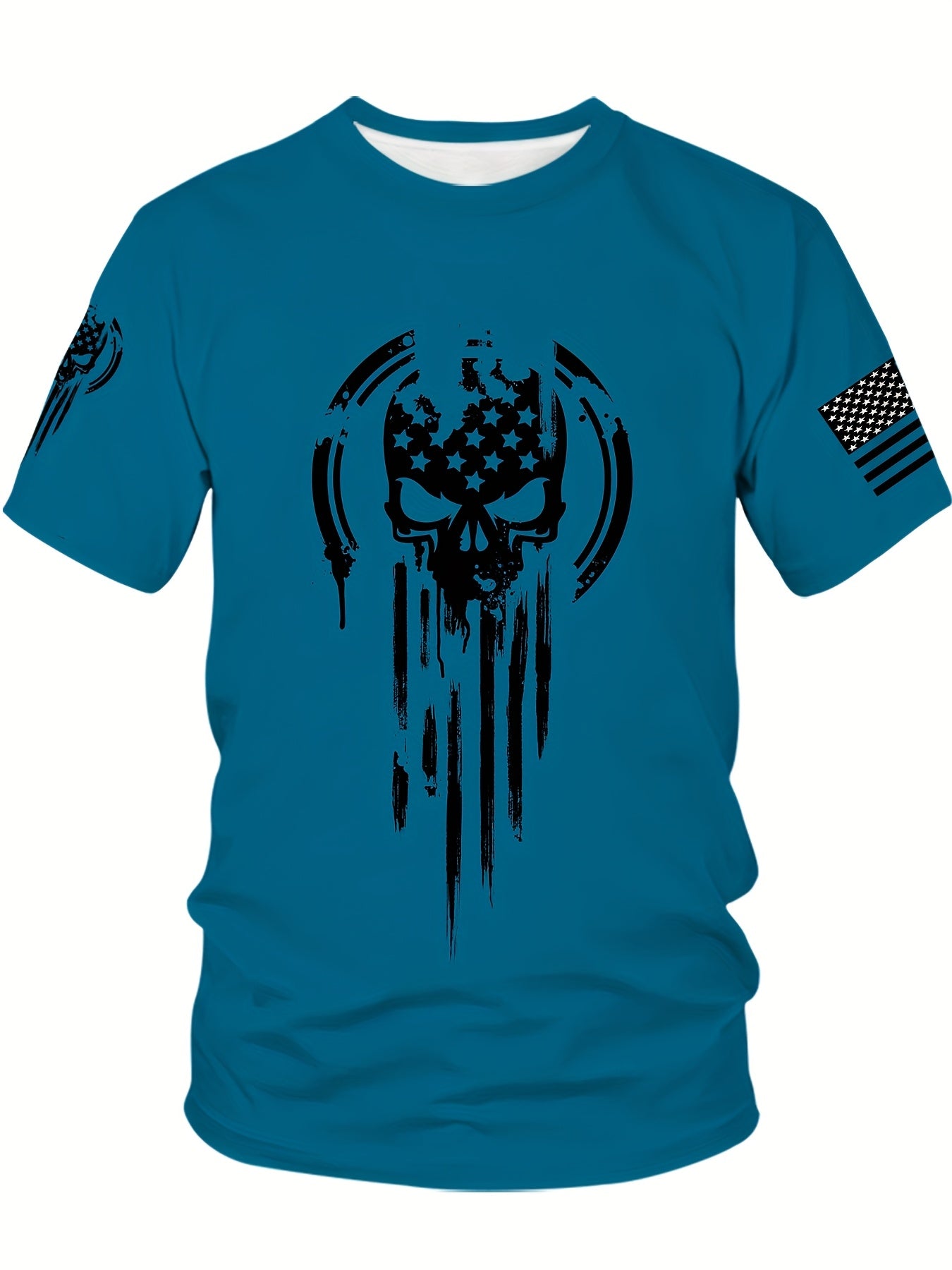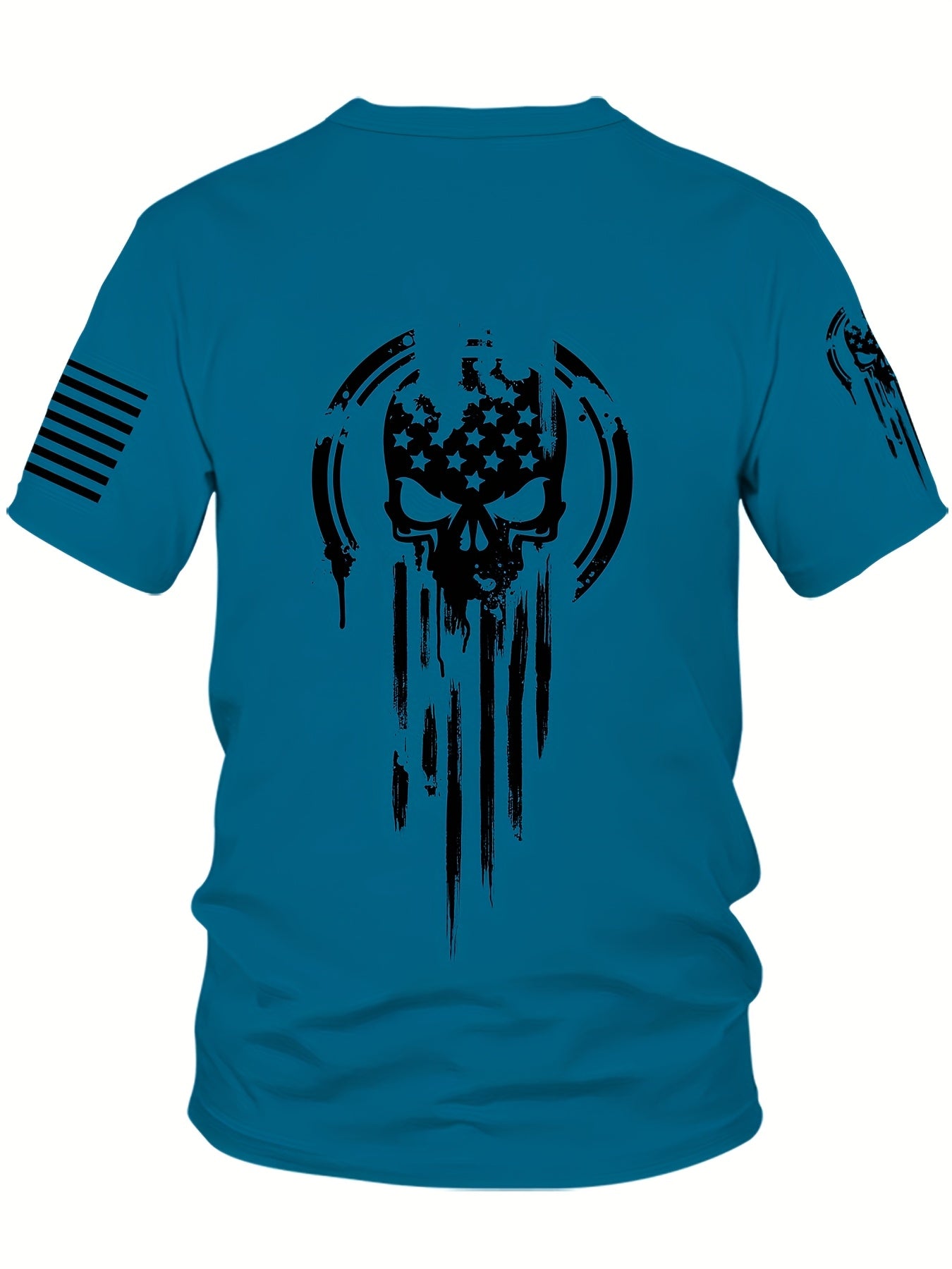 Мужская футболка с американским воином-черепом, военный принт, короткий рукав, полиэстер, трикотаж, повседневная летняя, увеличенный размер