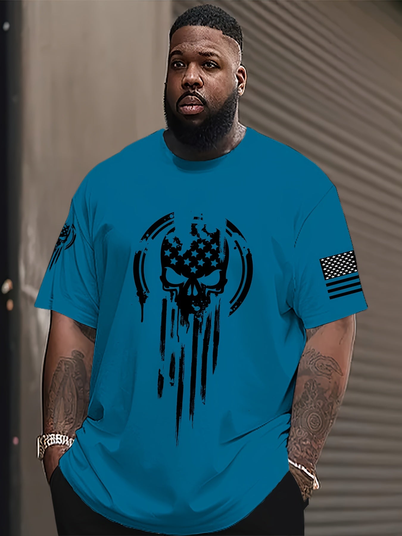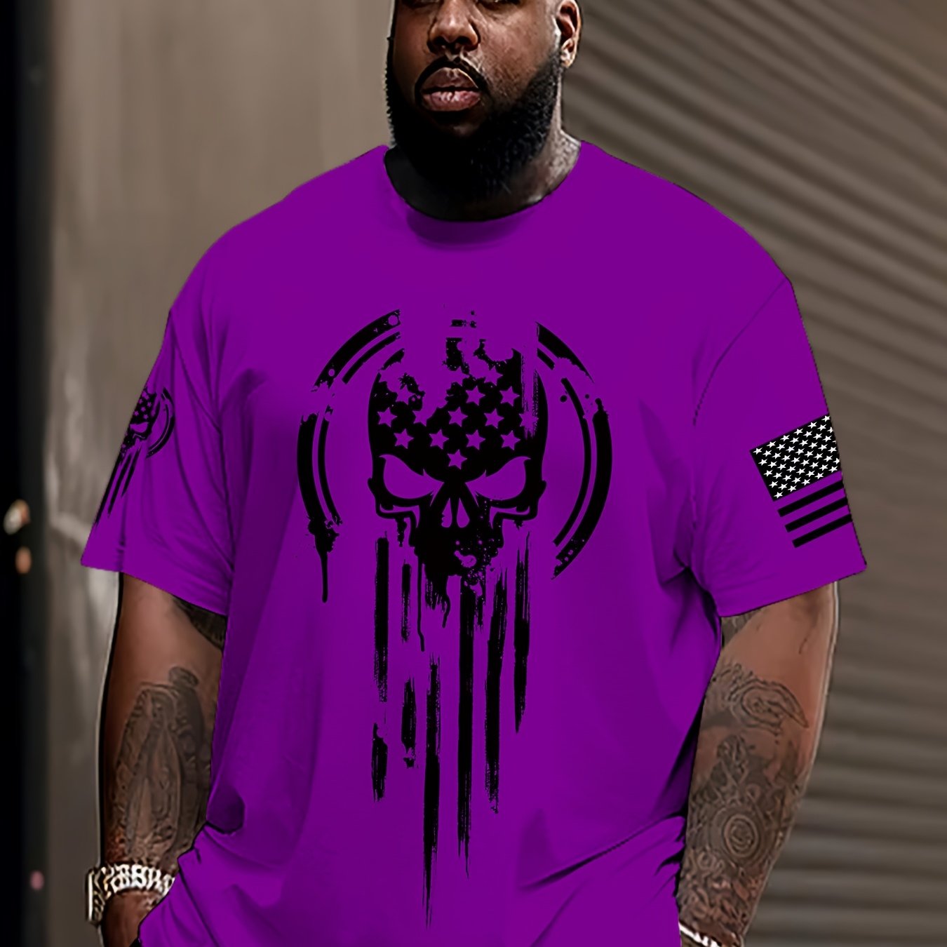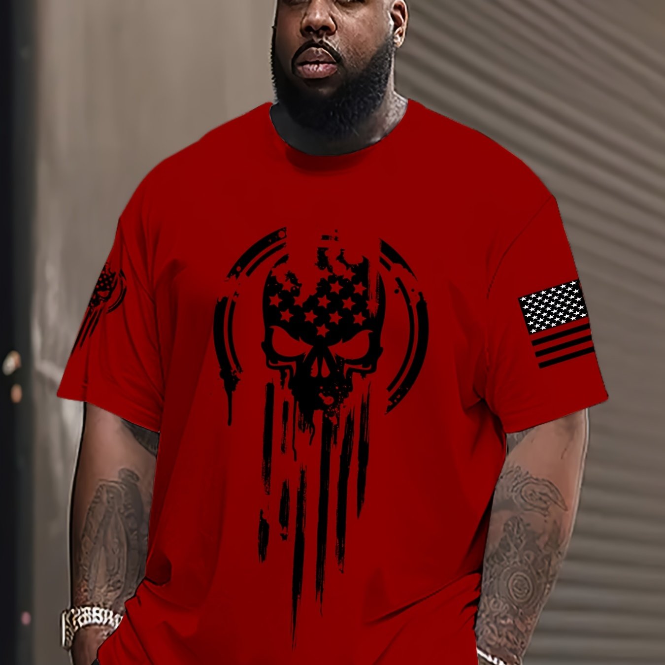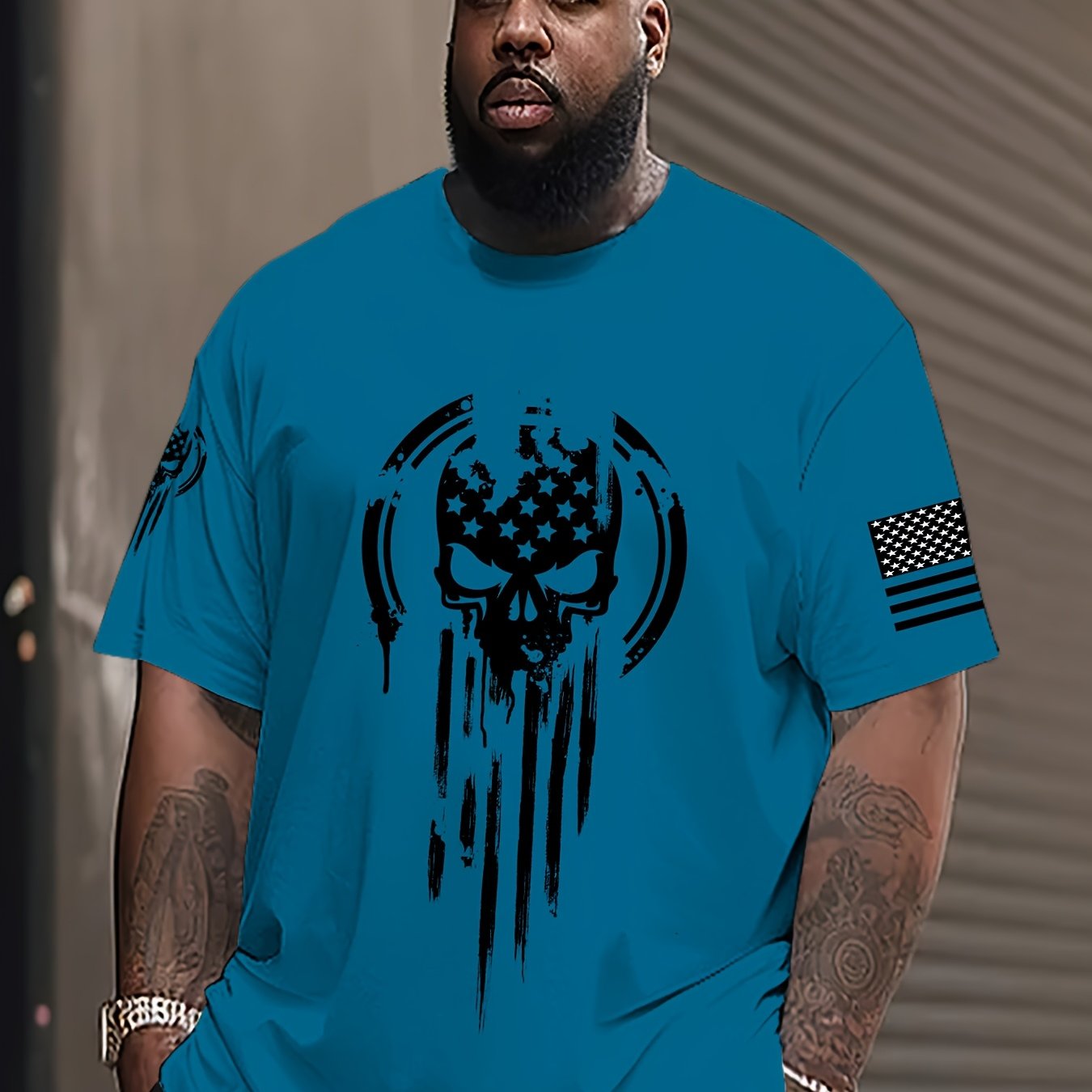 Мужская футболка с американским воином-черепом, военный принт, короткий рукав, полиэстер, трикотаж, повседневная летняя, увеличенный размер