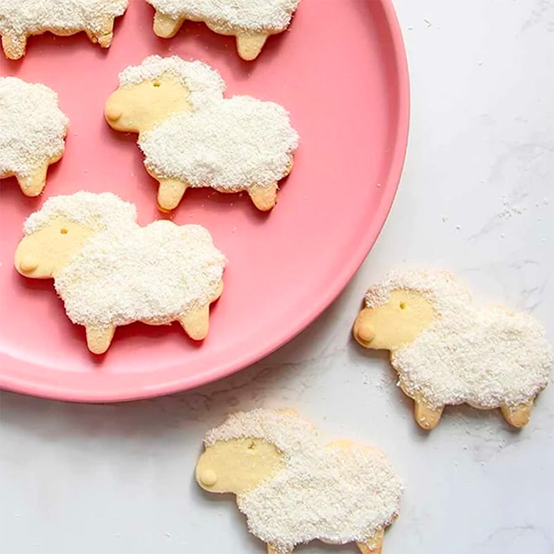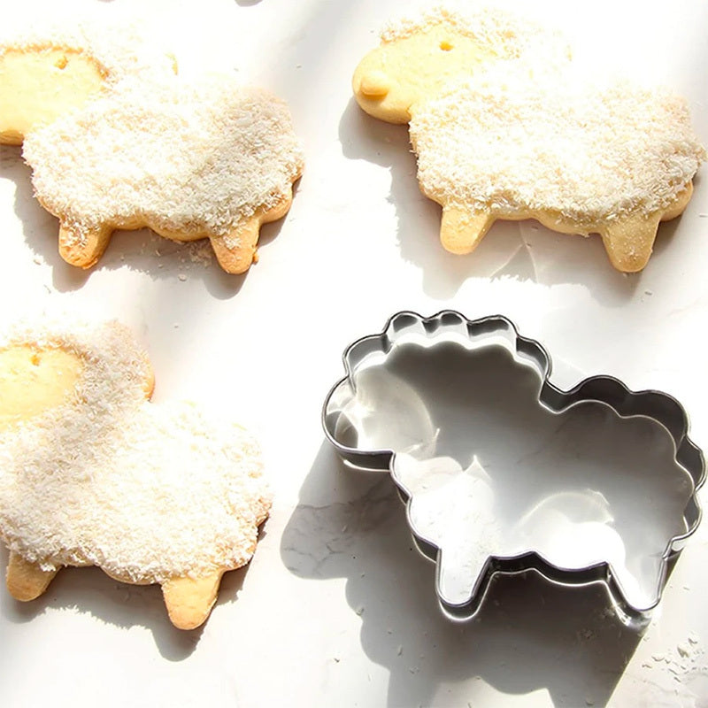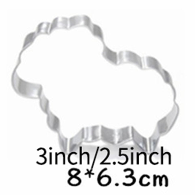 1 комплект посуды из нержавеющей стали для выпечки, включая форму для печенья в виде овечки, форму для печенья в виде нарезанного кусочками и форму для тостов.