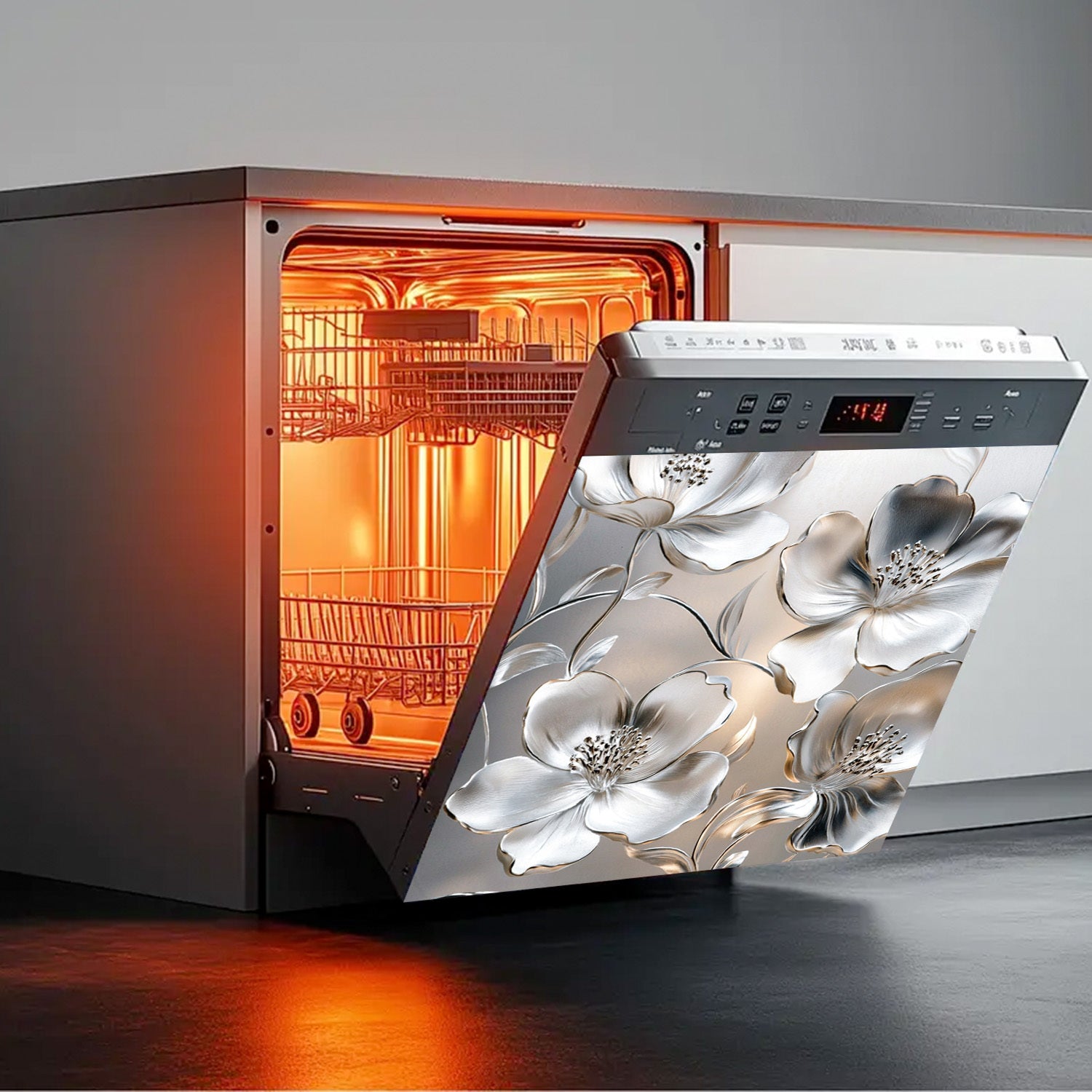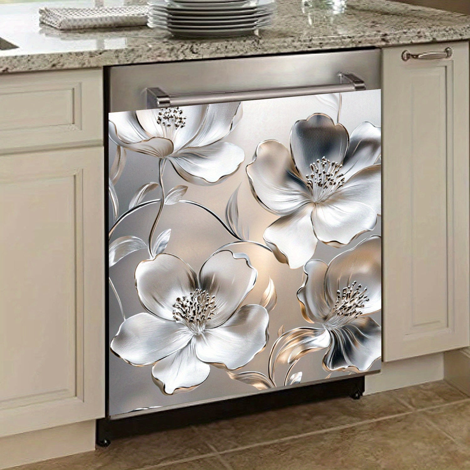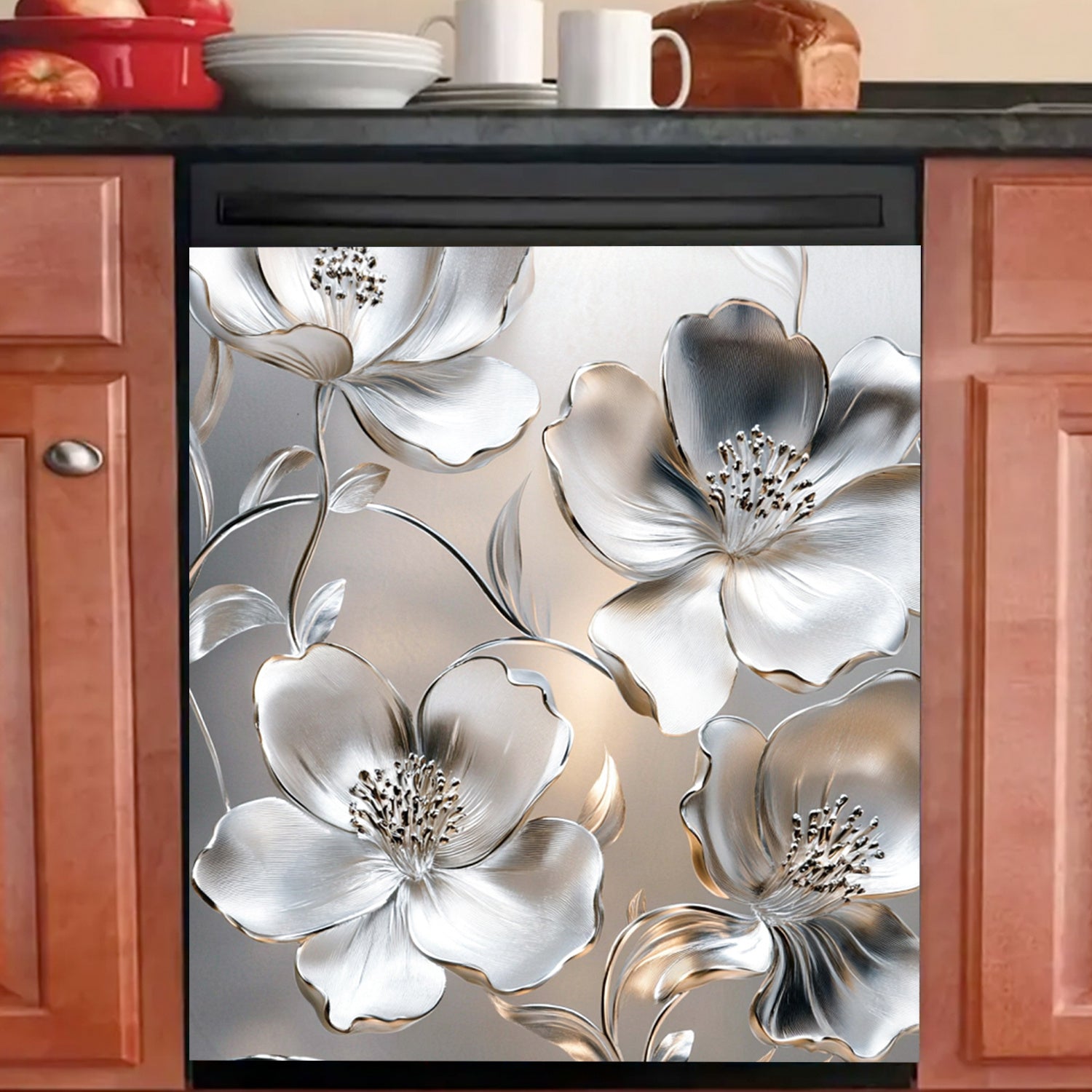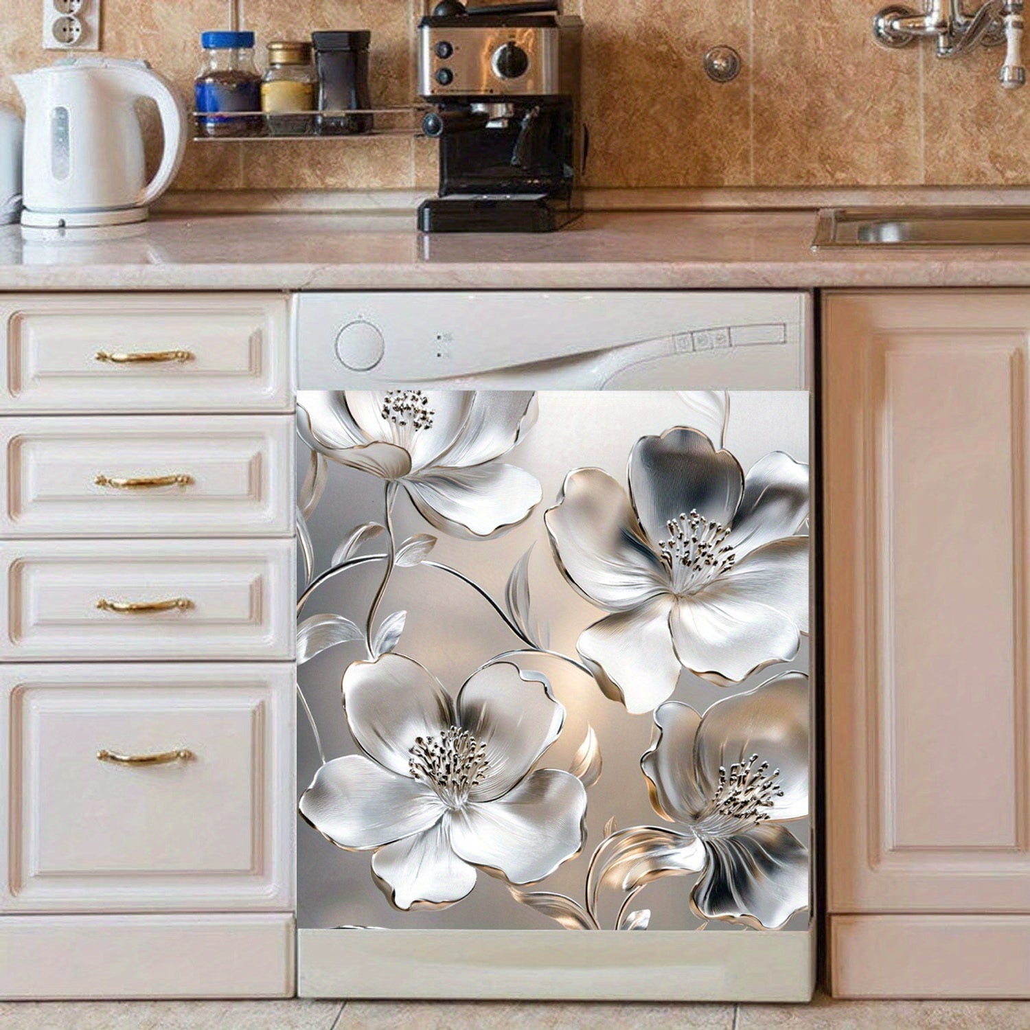 Серебристая 3D-цветочная магнитная крышка для посудомоечной машины, водонепроницаемая, термостойкая, 58,5x65 см