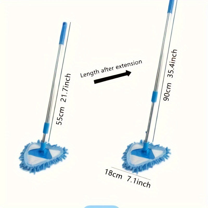 1 шт. Треугольная швабра для удаления пыли с ленивым механизмом для 360 градусов, для очистки стен, потолков, плитки и полов. Одноразовая телескопическая треугольная швабра с мини-фланелевой тканью для эффективной уборки.