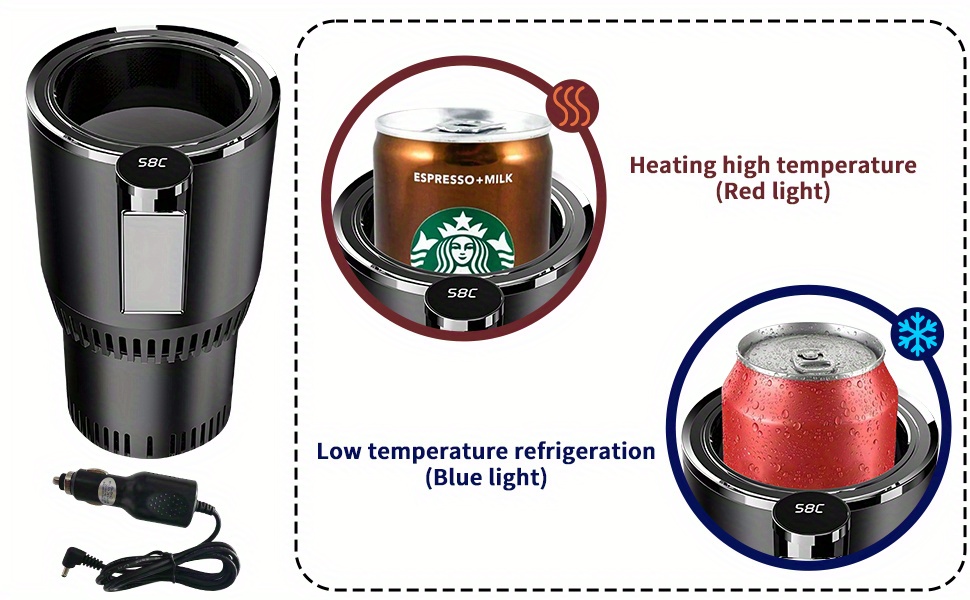 2-в-1 автомобильный охладитель и нагреватель для кружки черный с LED-дисплеем дорожная посуда