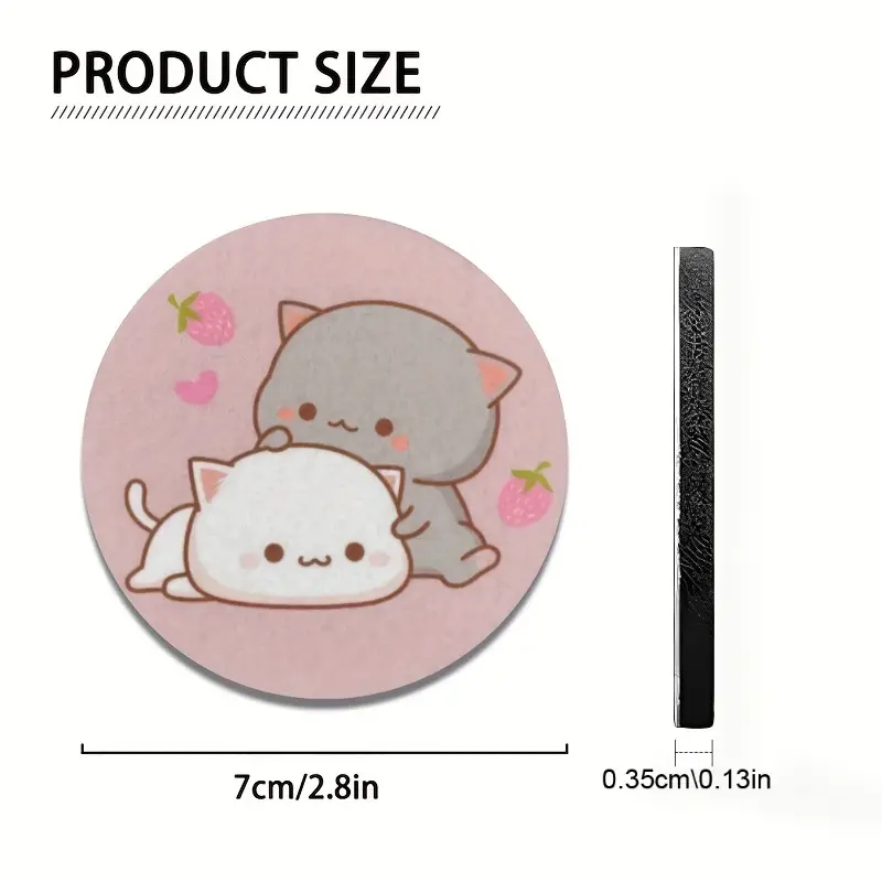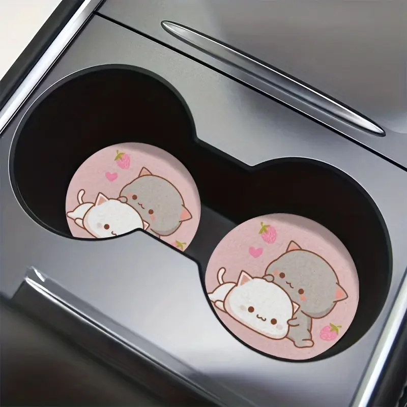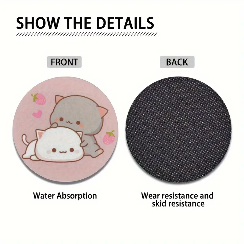 2 шт. розовых подставок для кружек с изображением клубничного кота-мультфильма, впитывающих, нескользящих
