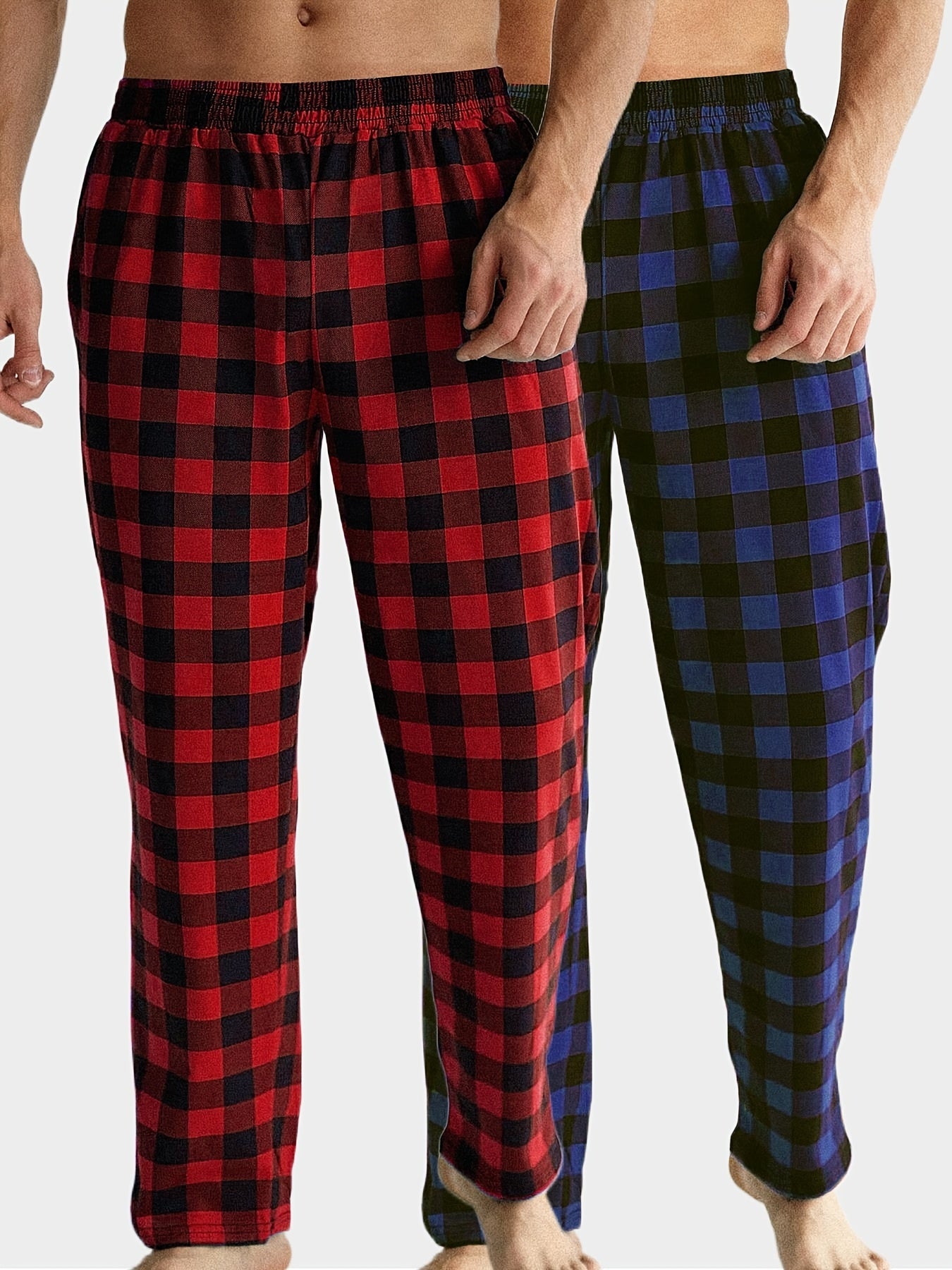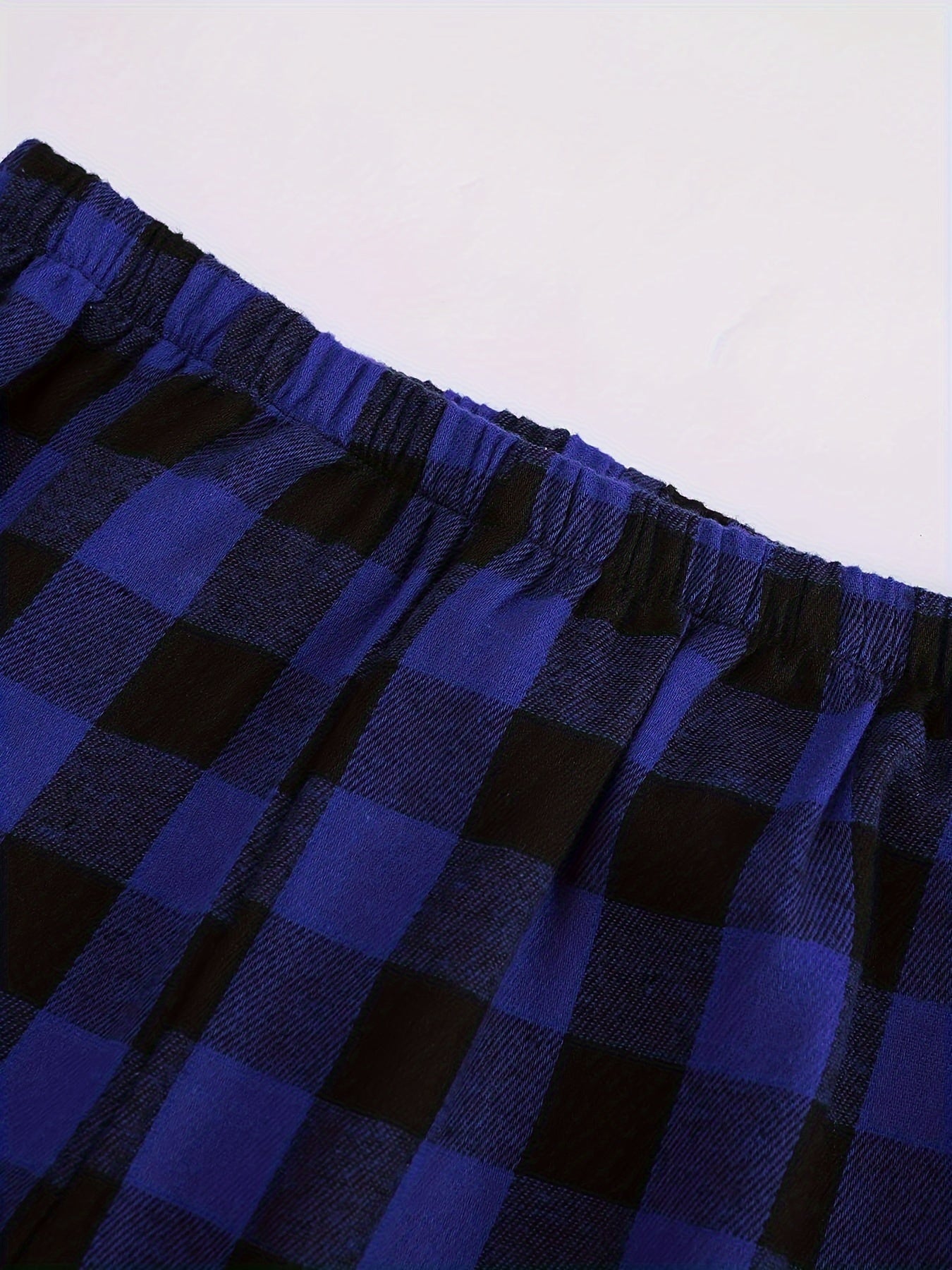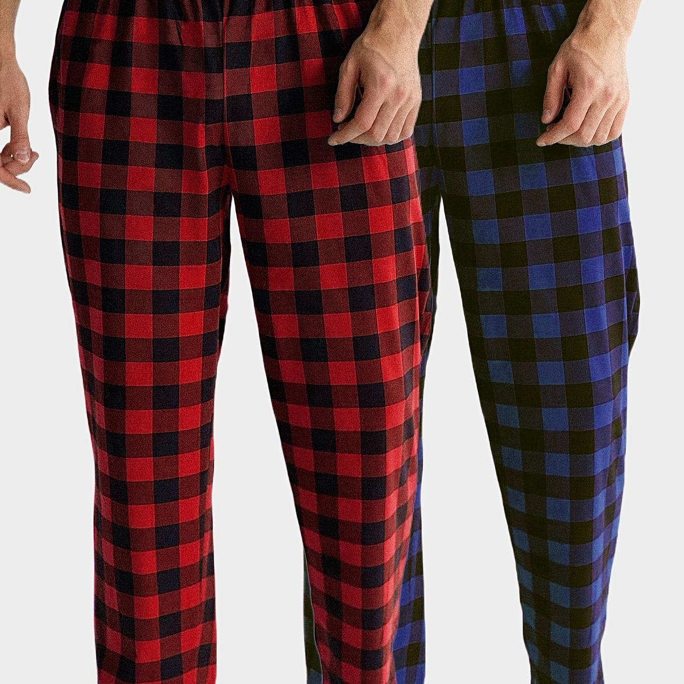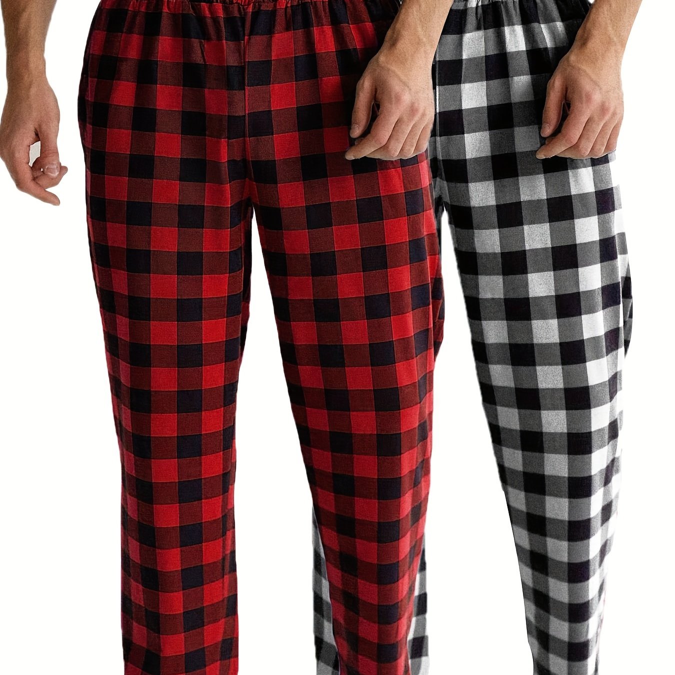 Мужской комплект из фланелевых пижамных штанов с рисунком в клетку, с эластичным поясом, для отдыха, весна и осень, 50% хлопок, 50% полиэстер
