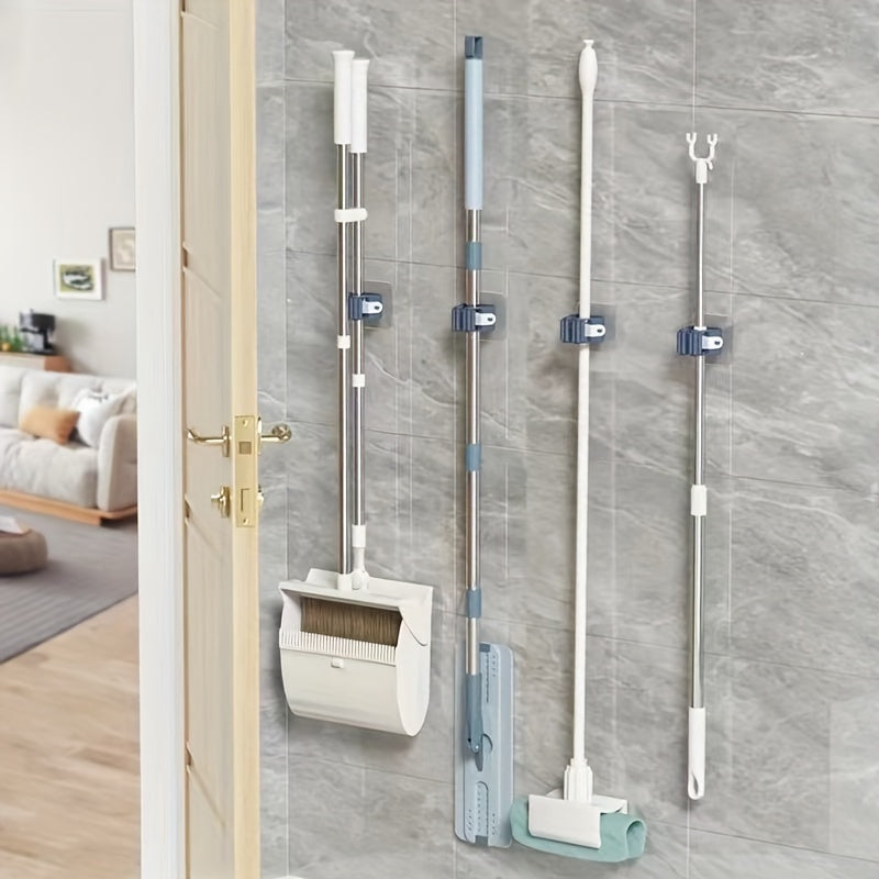 Двухсекционный настенный держатель для швабры и метлы без сверления, полка для хранения для кухни и ванной