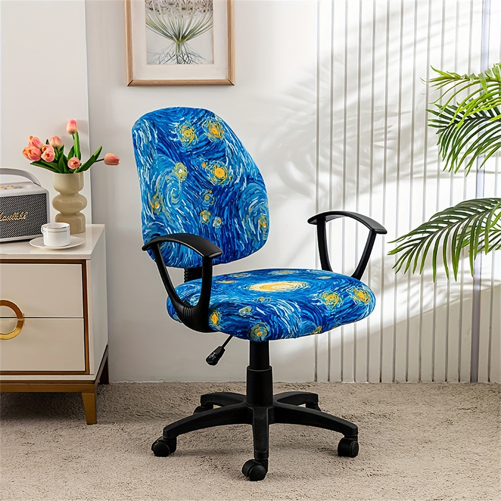2 печатных чехла для стульев, чтобы украсить и декорировать дома или в офисе для раскладных или вращающихся стульев.