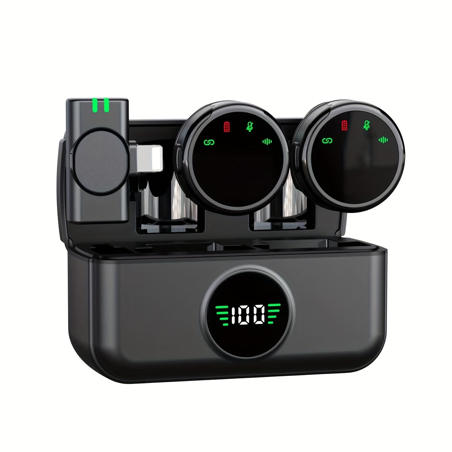 2 беспроводных петличных микрофона с зарядным кейсом для смартфонов, идеально подходящих для видеозаписи, ведения блогов и интервью.