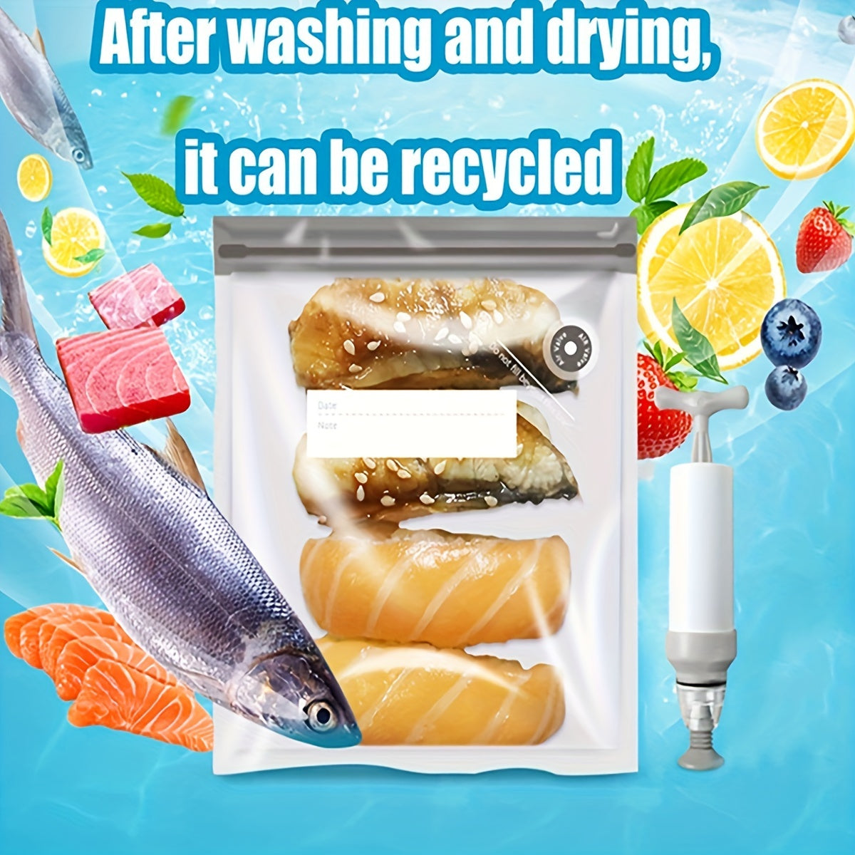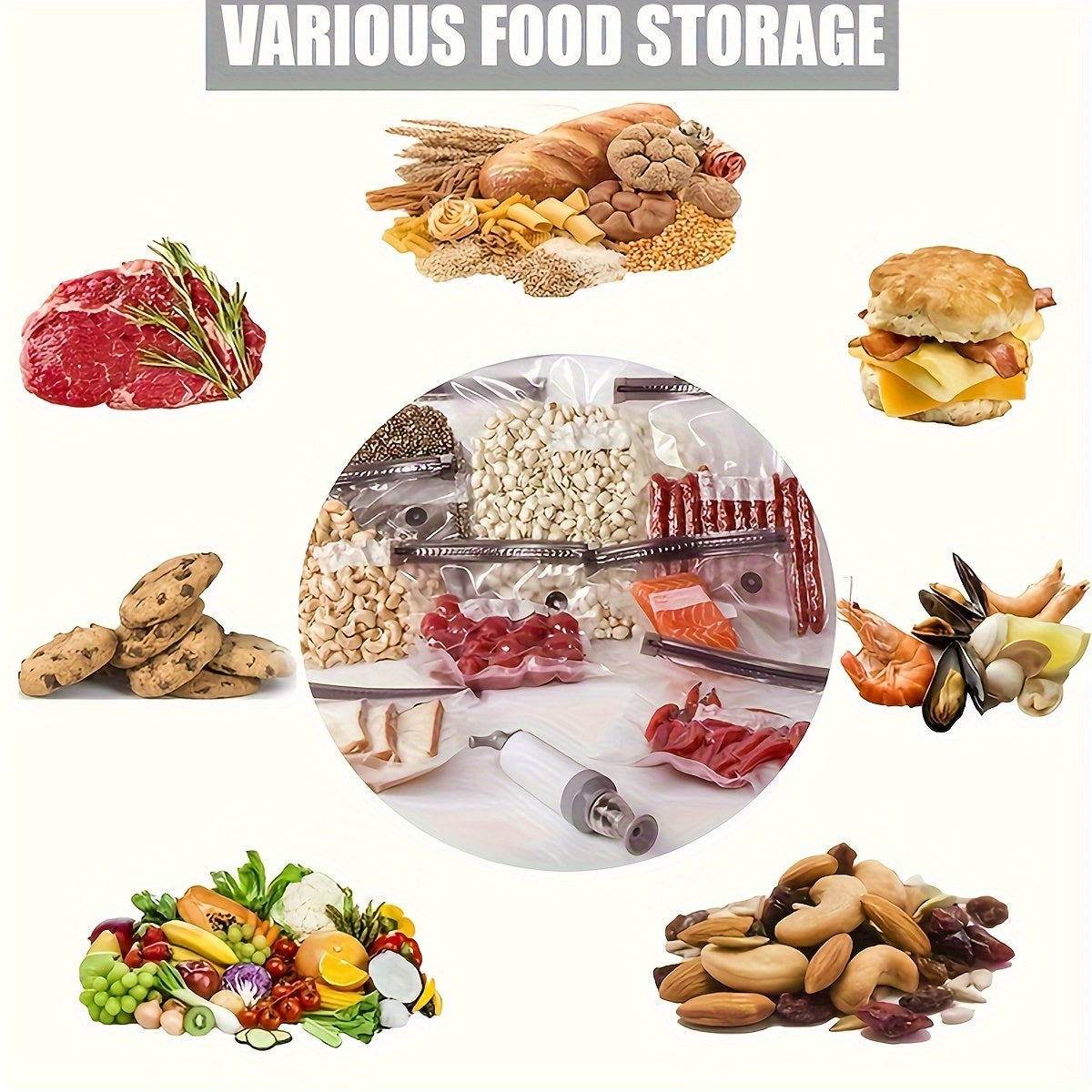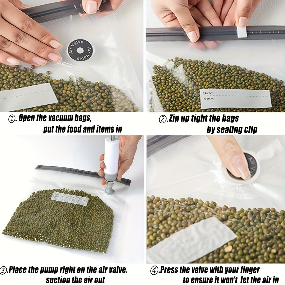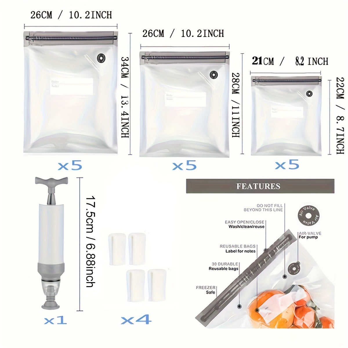 Набор из 20 вакуумных пакетов для хранения продуктов с зажимами и ручным насосом для сохранения свежести