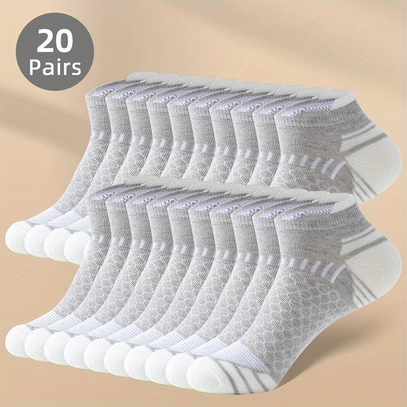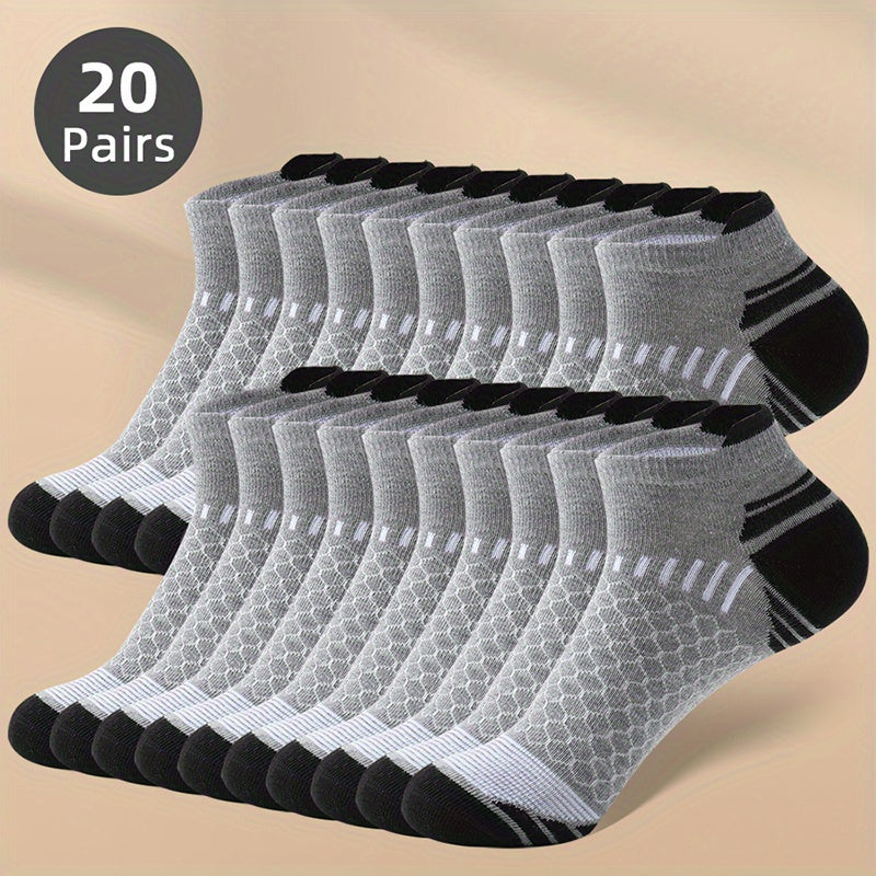 Мужские низкие носки до щиколотки, 20 пар, антибактериальные, впитывающие пот, для всех сезонов