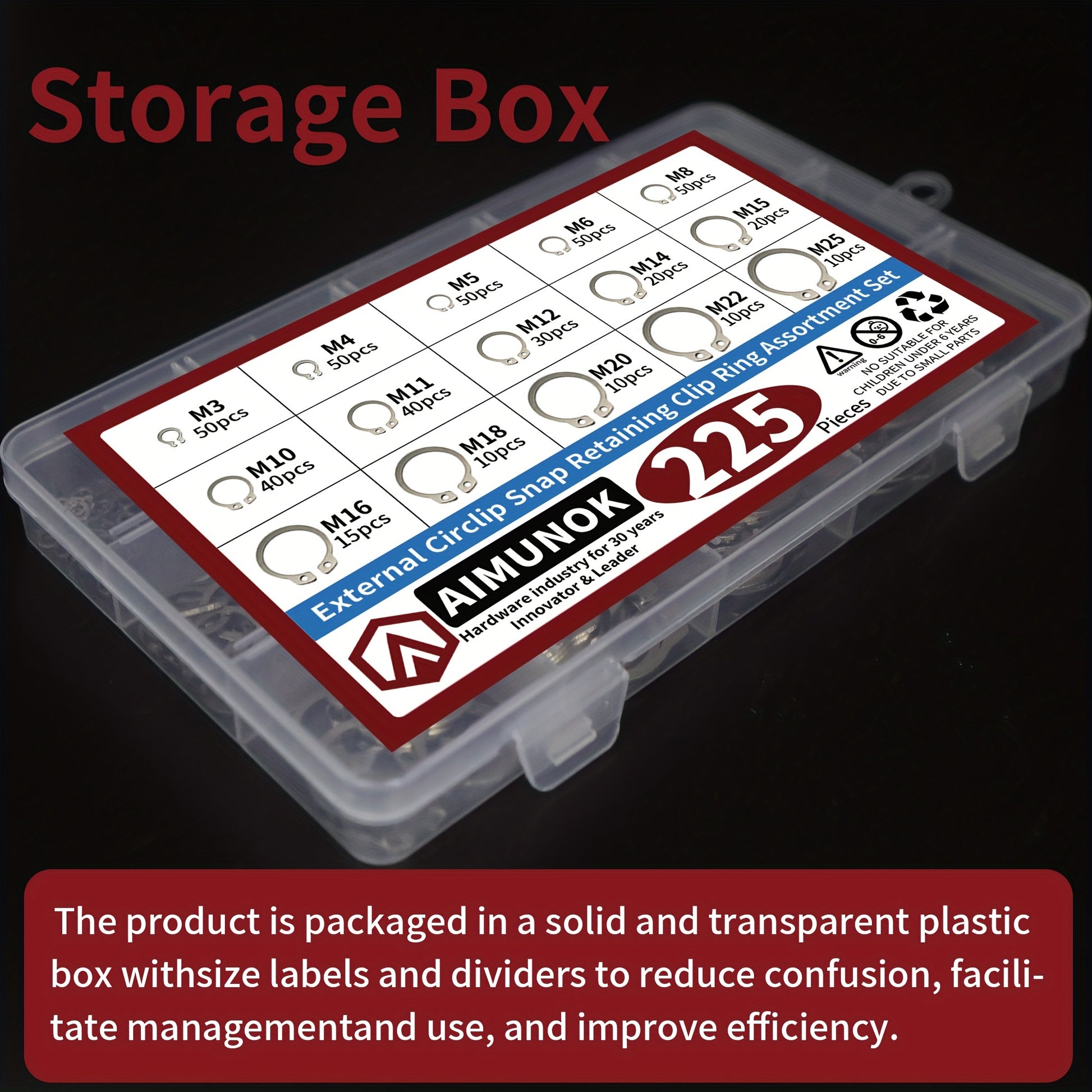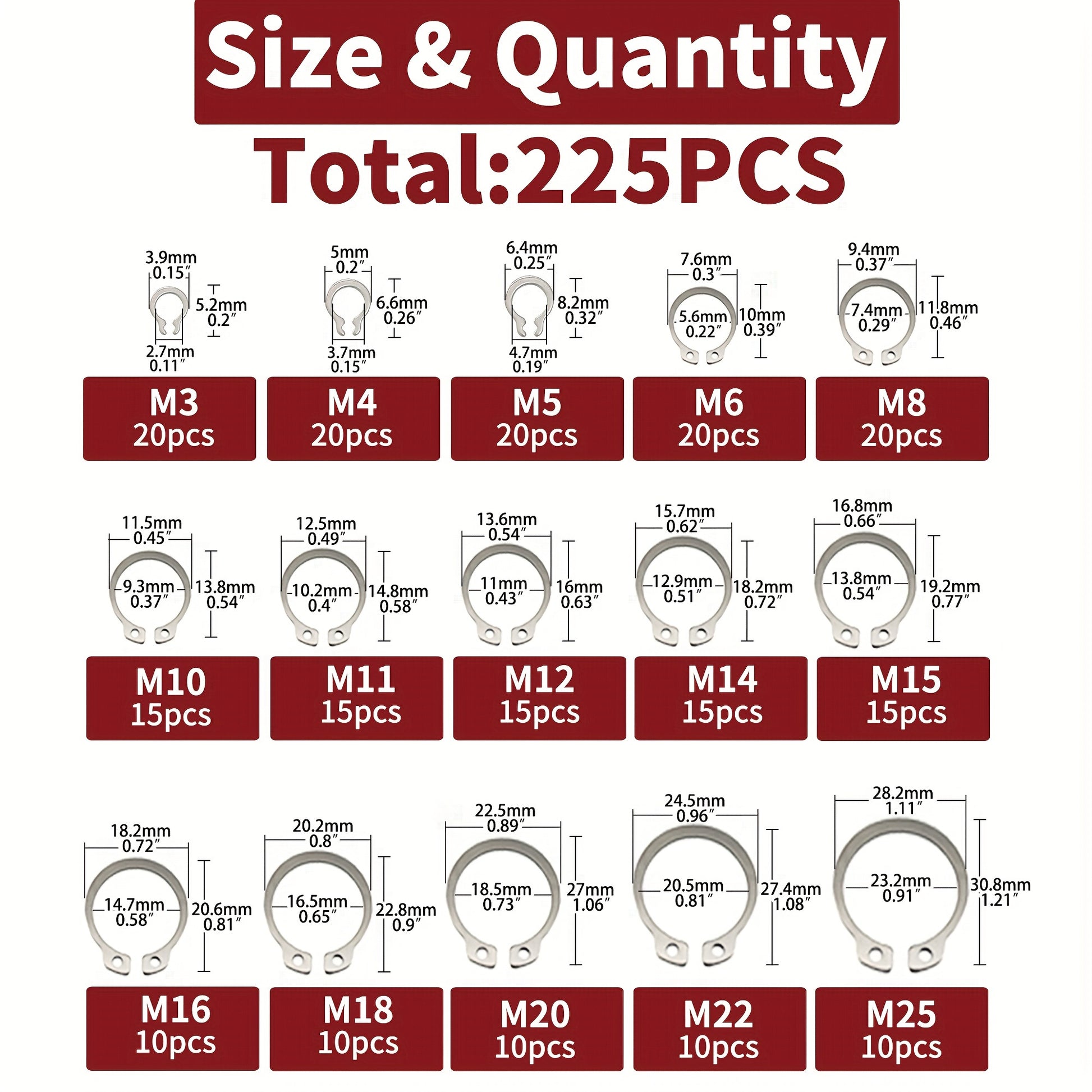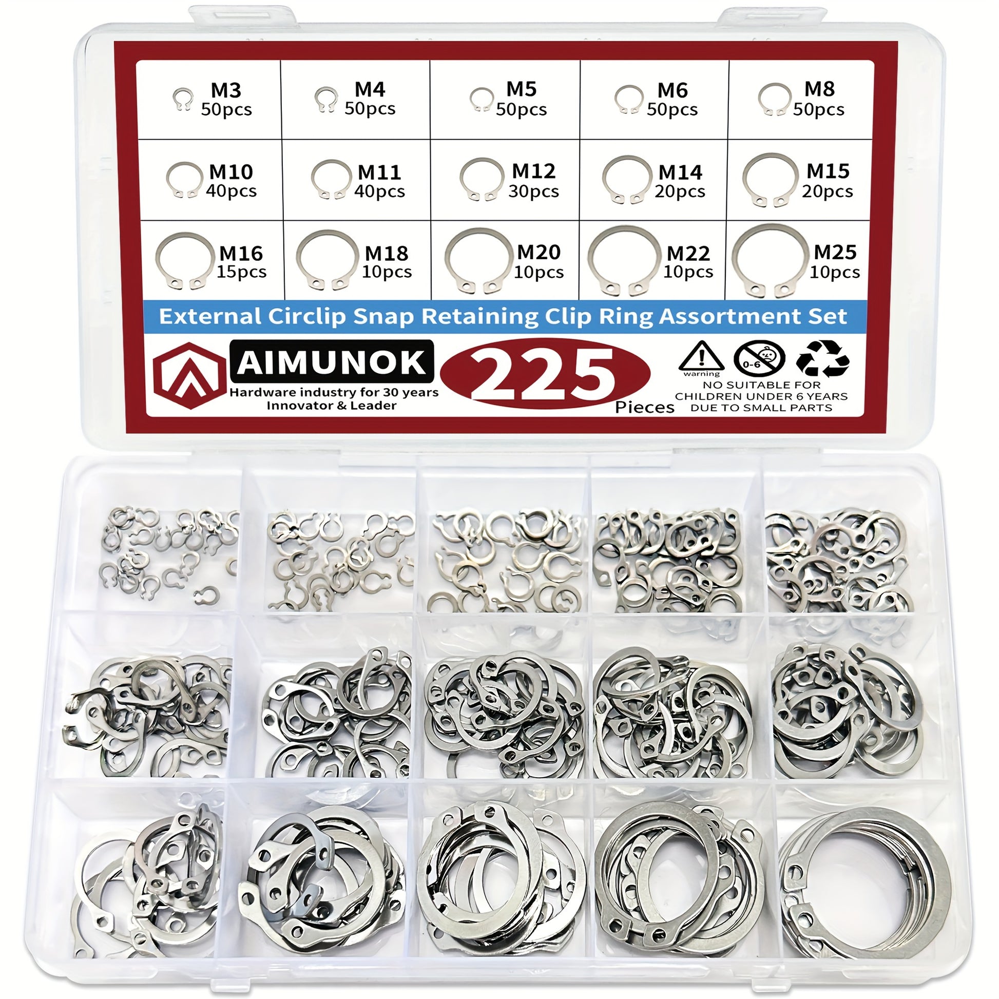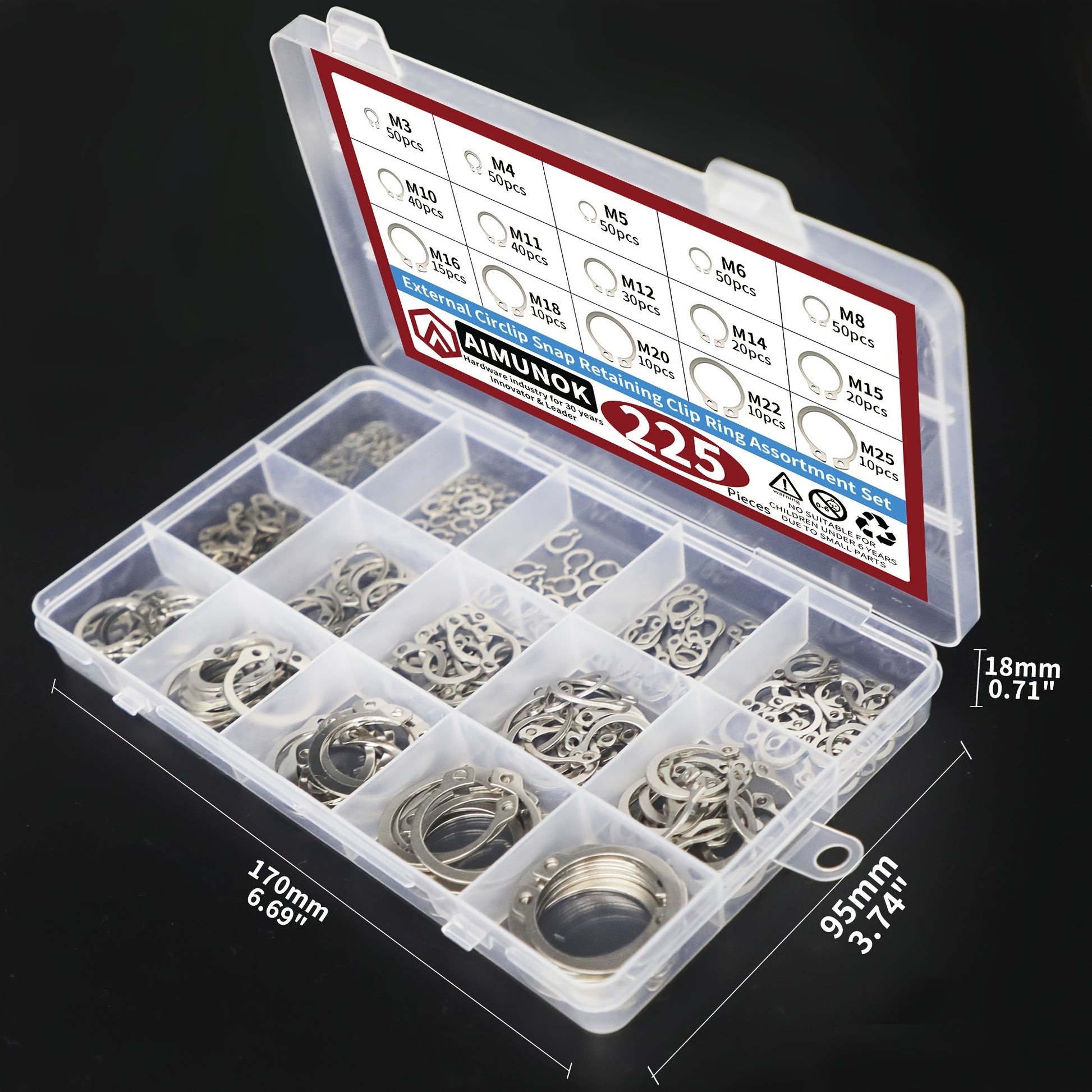 225-компонентный набор внешних стопорных колец из нержавеющей стали для сборки вала M3-M25