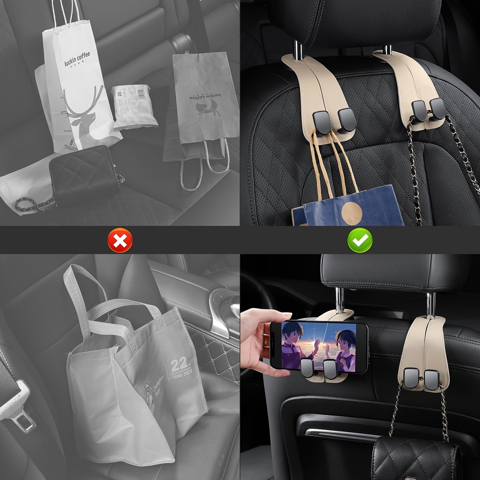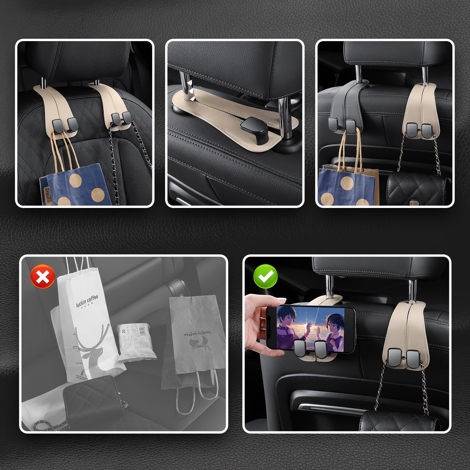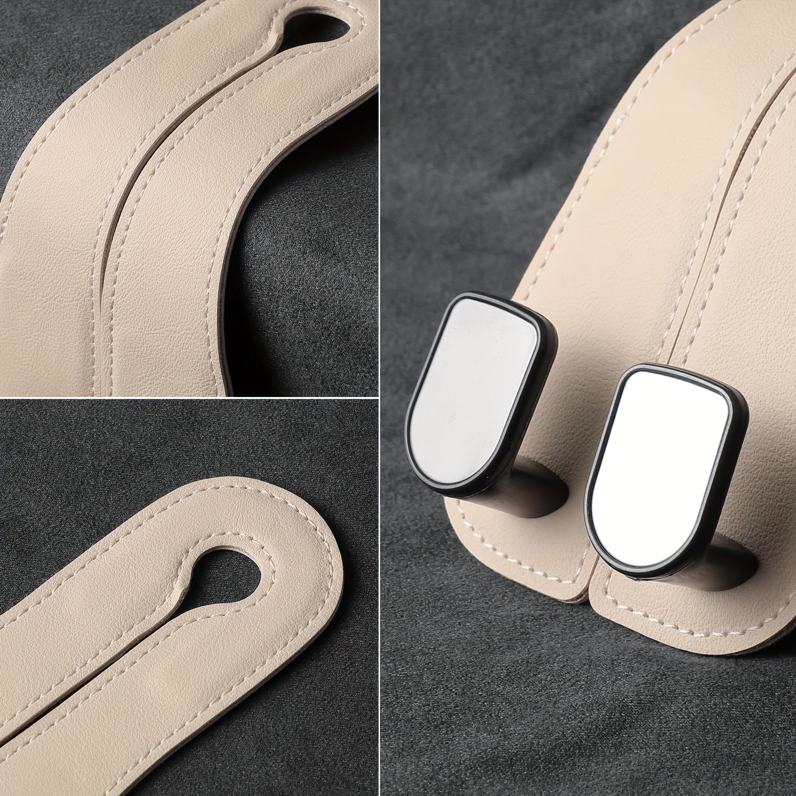 2 шт. бежевых крючков для автомобильных подголовников из ПВХ, двойной дизайн крюка для сумок и рюкзаков
