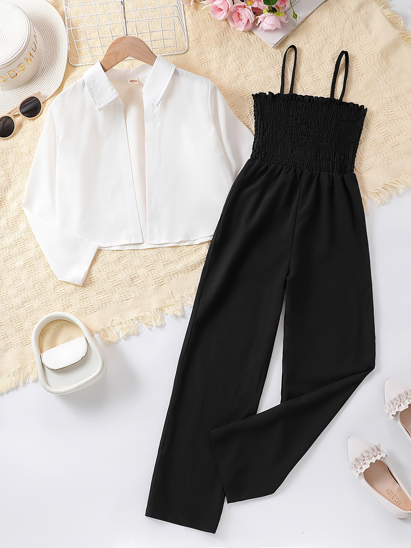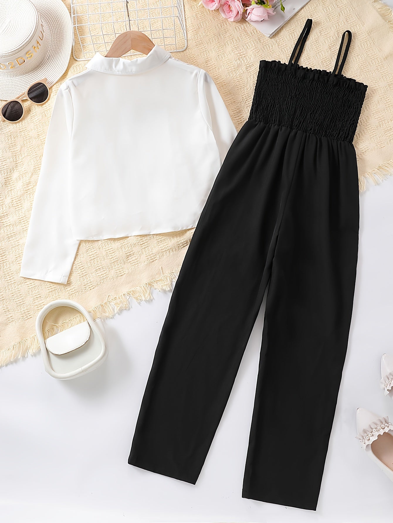 Девочки: весенний и осенний свитшот с длинным рукавом и комбинезон с собранной блузкой