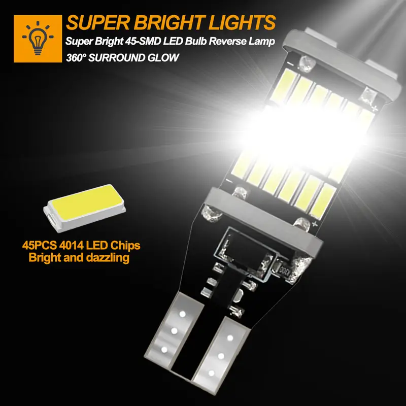 2 шт. T15 W16W 921 912 автомобильная LED-лампа указателя поворота белая 12В для заднего хода и парковки
