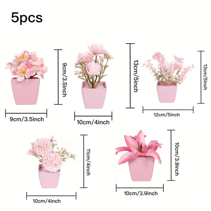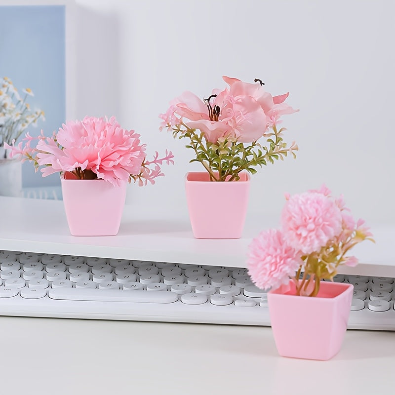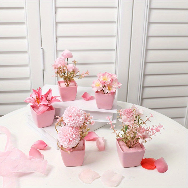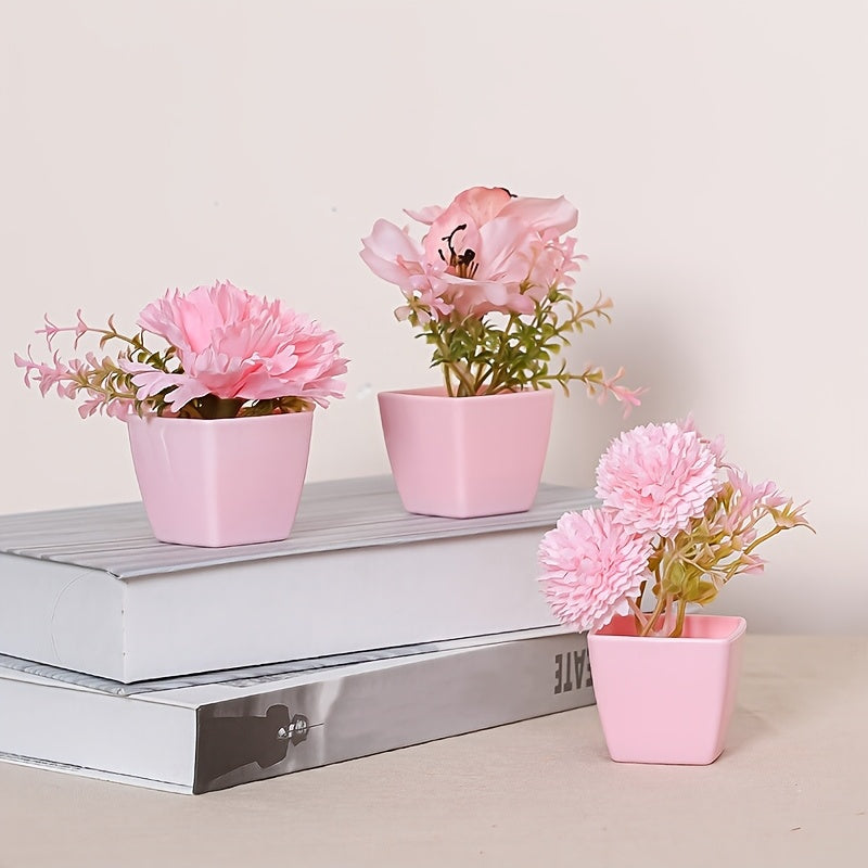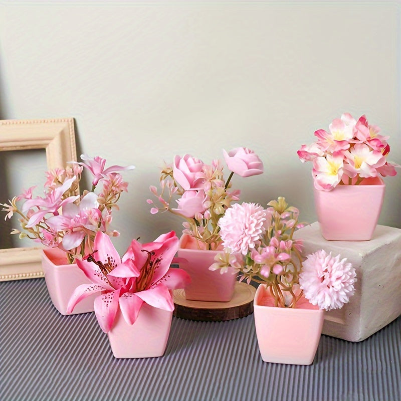 Мини-искусственные розовые цветочные композиции в пластиковых квадратных горшках для внутреннего декора