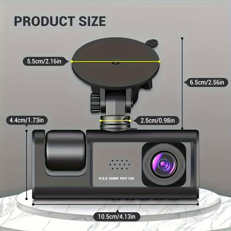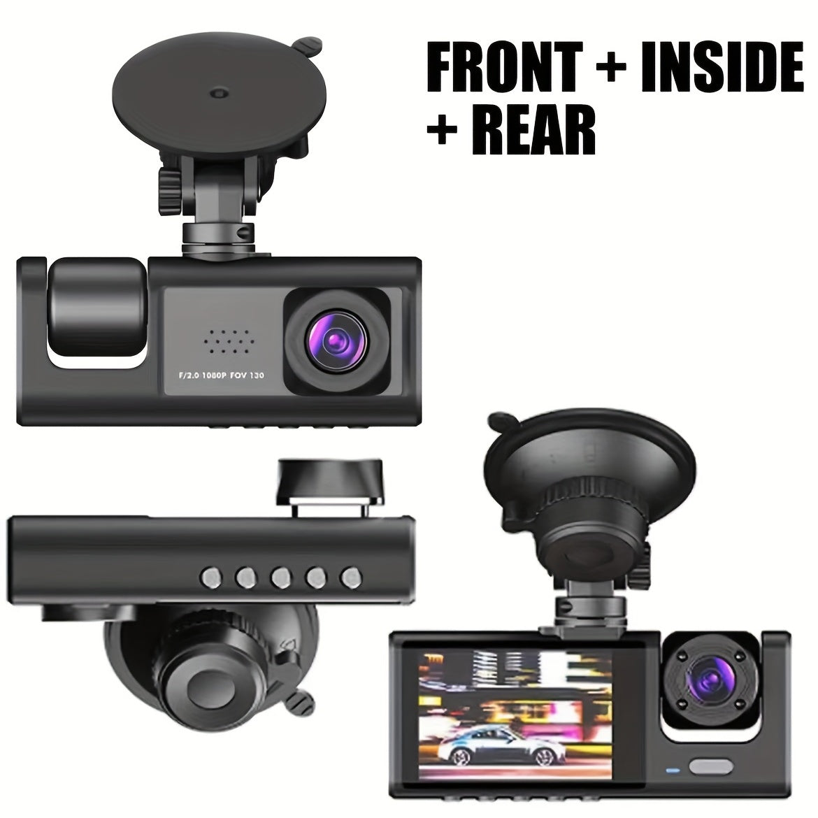 3-камерная HD-камера видеорегистратора с экраном 5,08 см, передний и задний обзор, перезаряжаемый аккумулятор, автомобильная безопасность