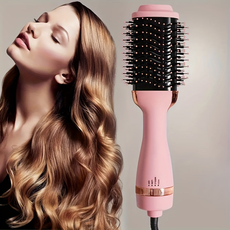3-в-1 фен и стайлер для волос с регулируемой температурой, функциями быстрой сушки, завивки и выпрямления, розовая резиновая отделка, европейская вилка стандарта