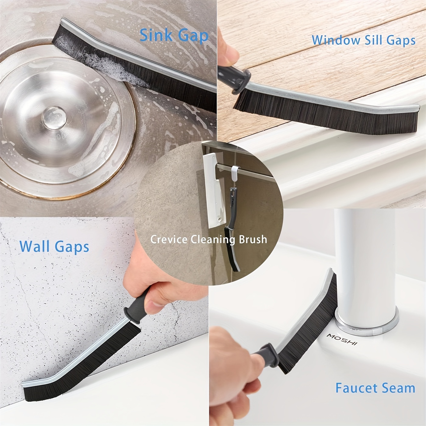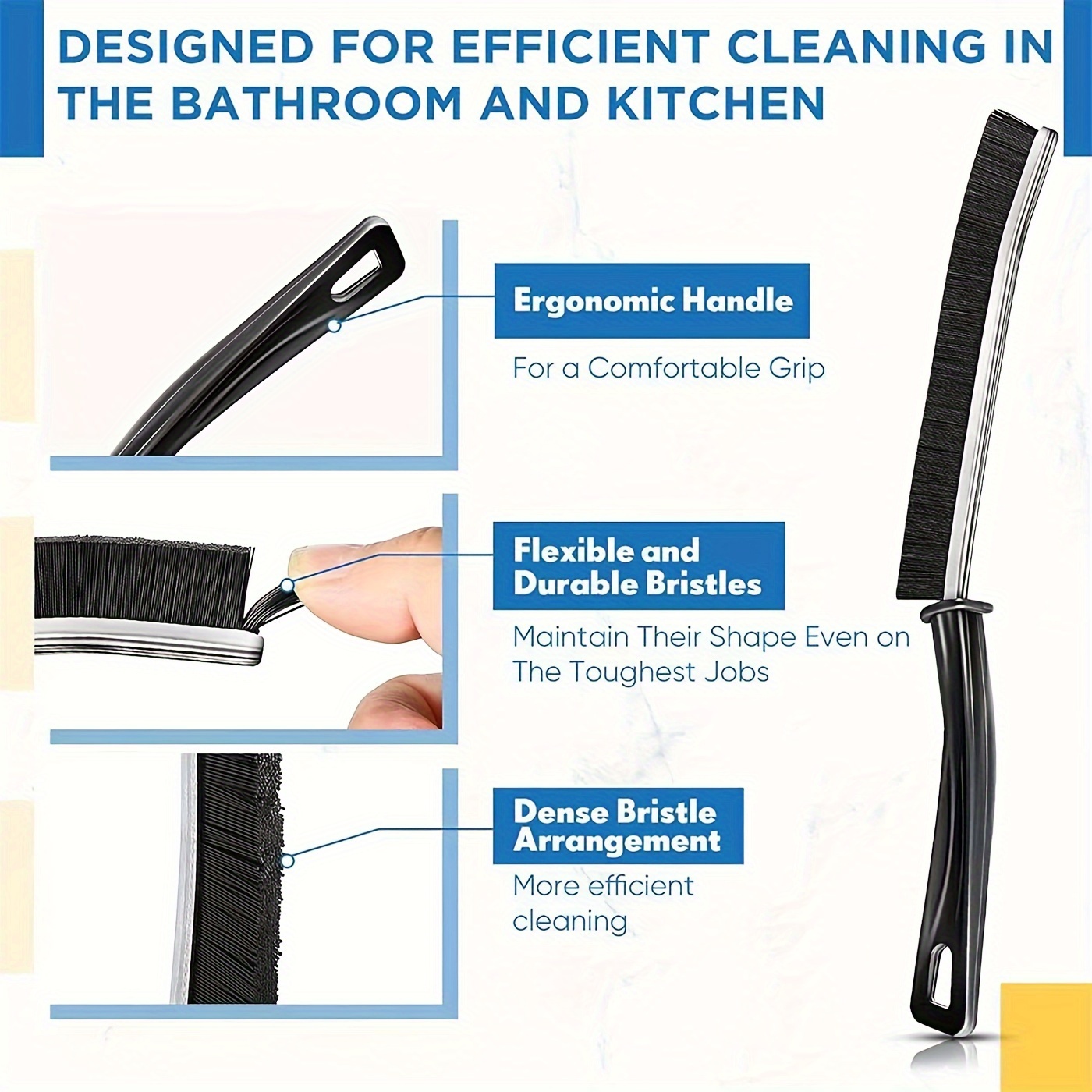 Набор из 3 многофункциональных щеток с жесткой щетиной для чистки щелей для ванной комнаты и кухни