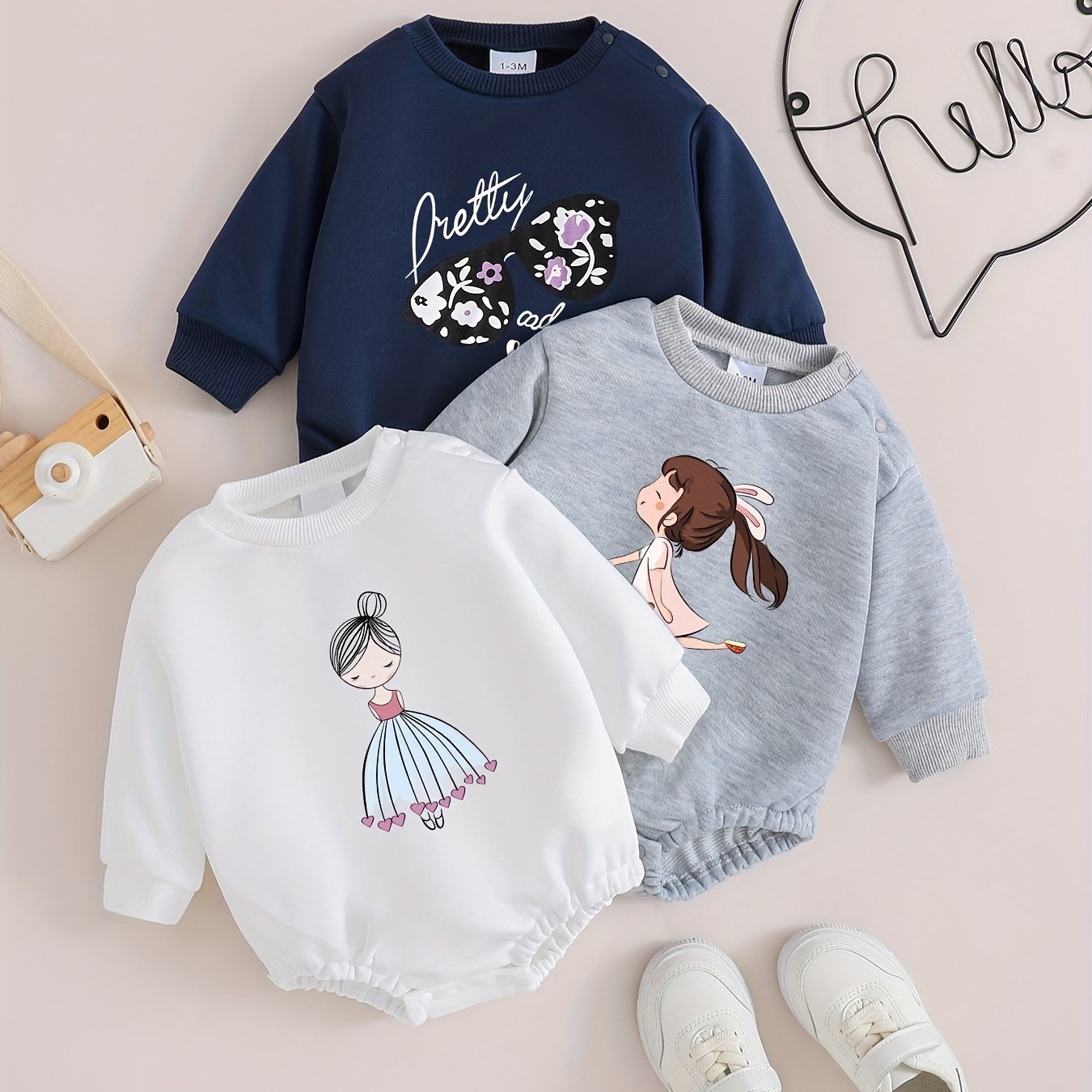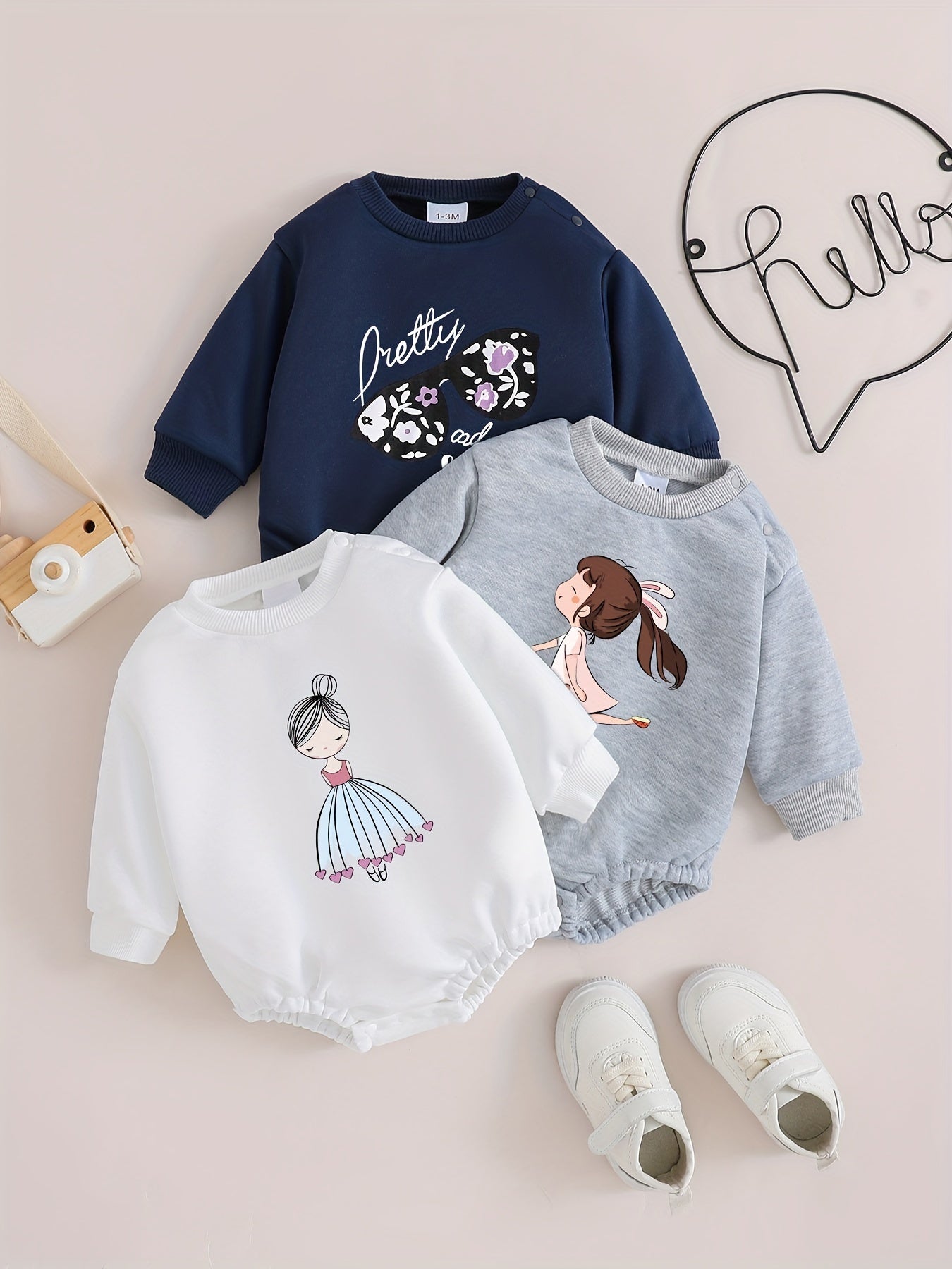 Комплект для девочки-новорожденной 3 предмета с цветочным бантом и принтом принцессы, весна-осень, повседневный, с длинным рукавом