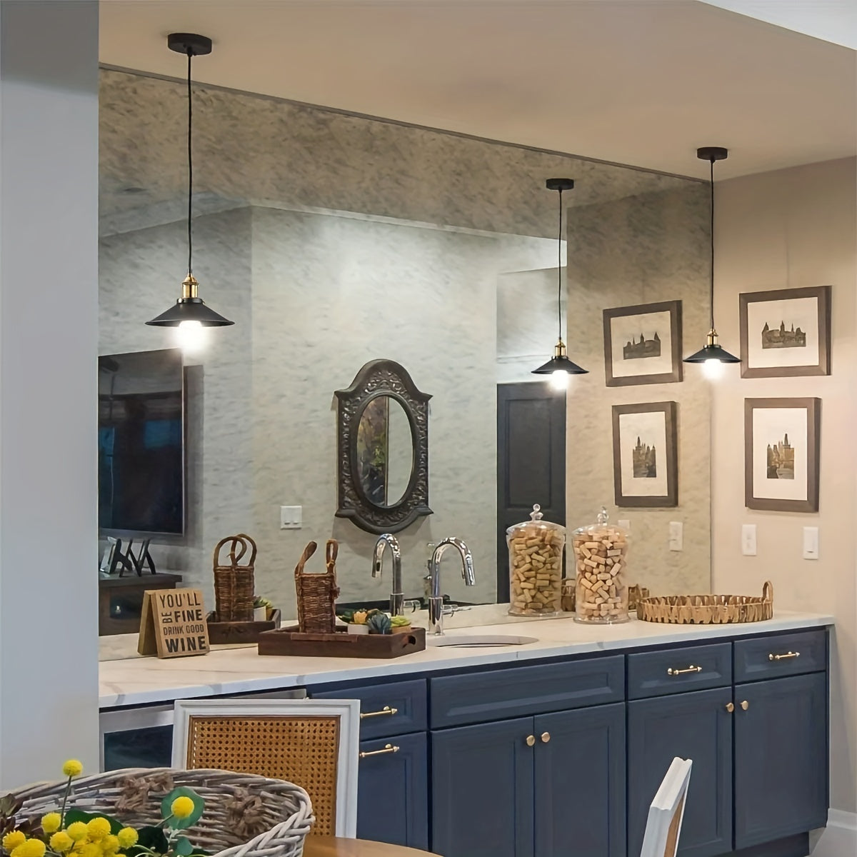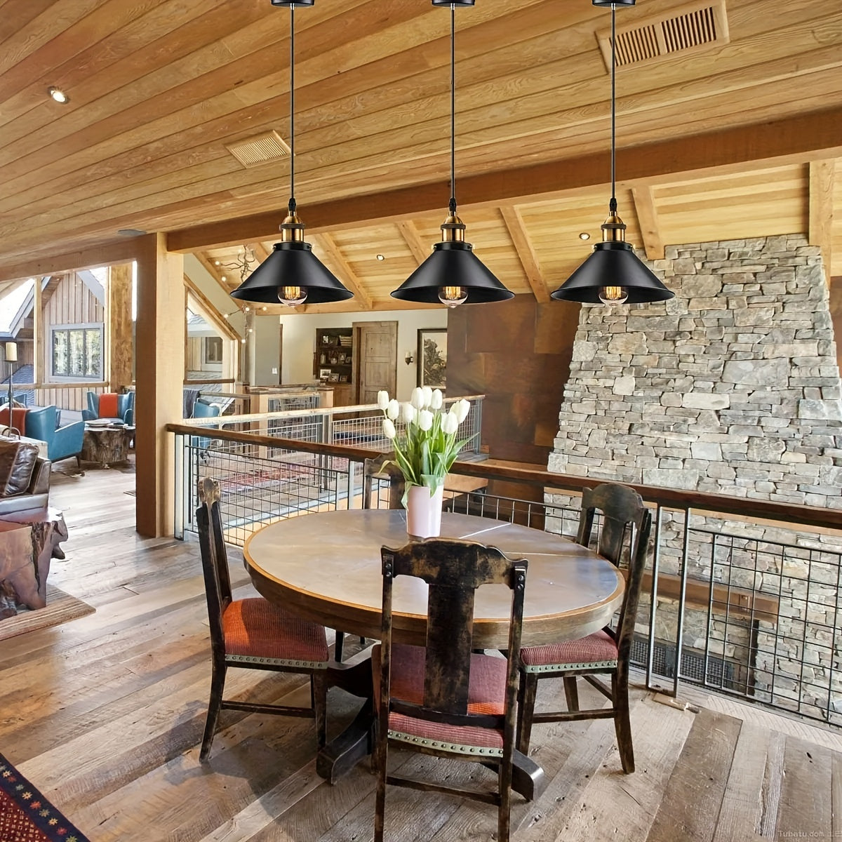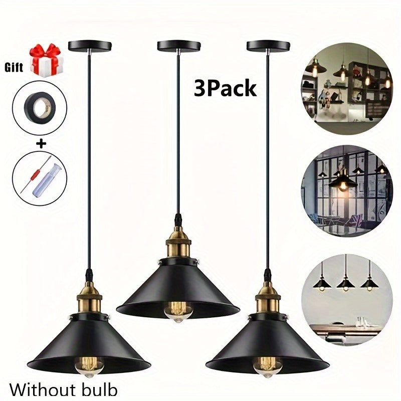 Комплект из 3-х подвесных ламп промышленного стиля с основанием E26/E27, включает отвертку и изоленту в подарок (лампочка не включена)
