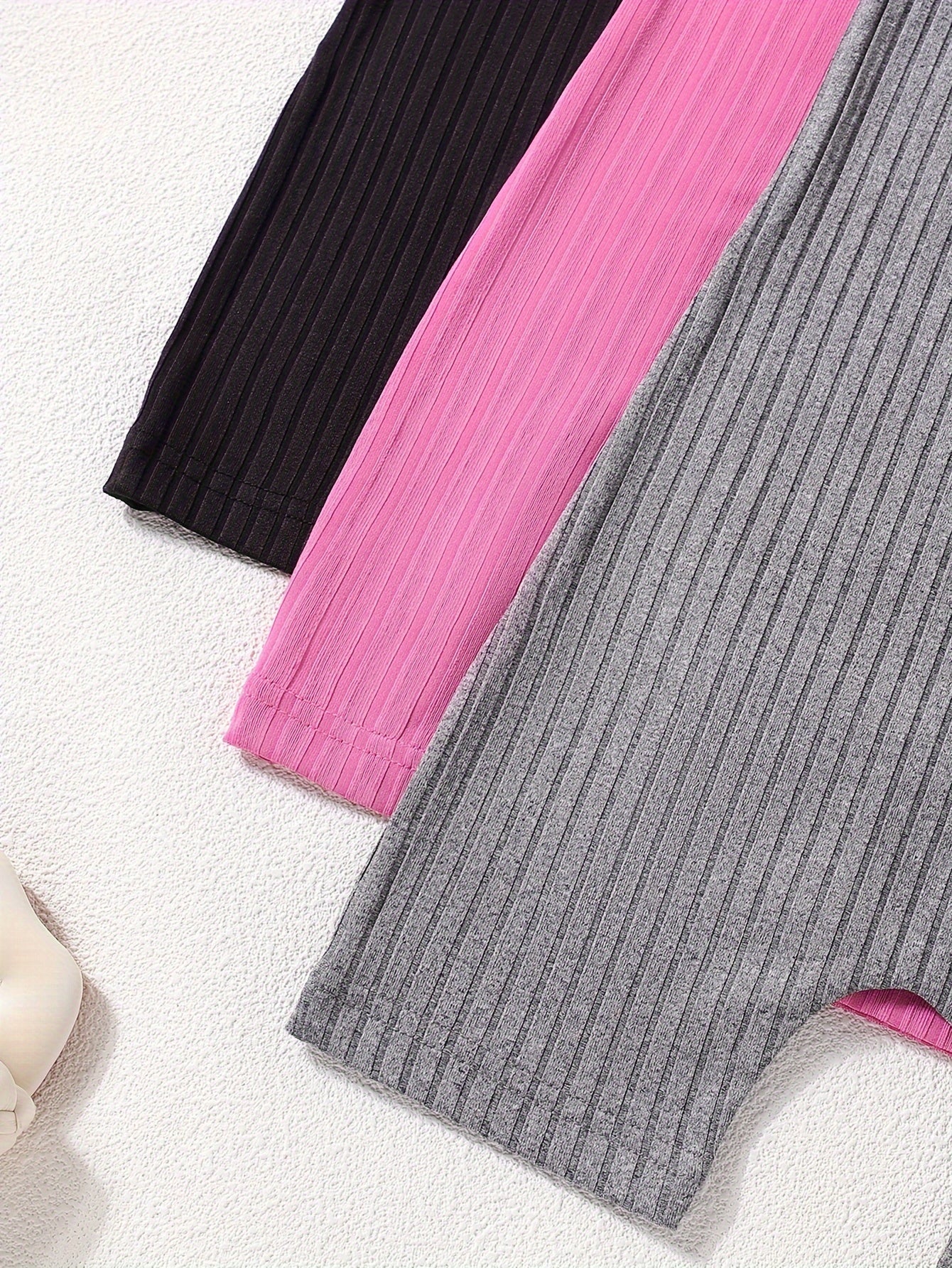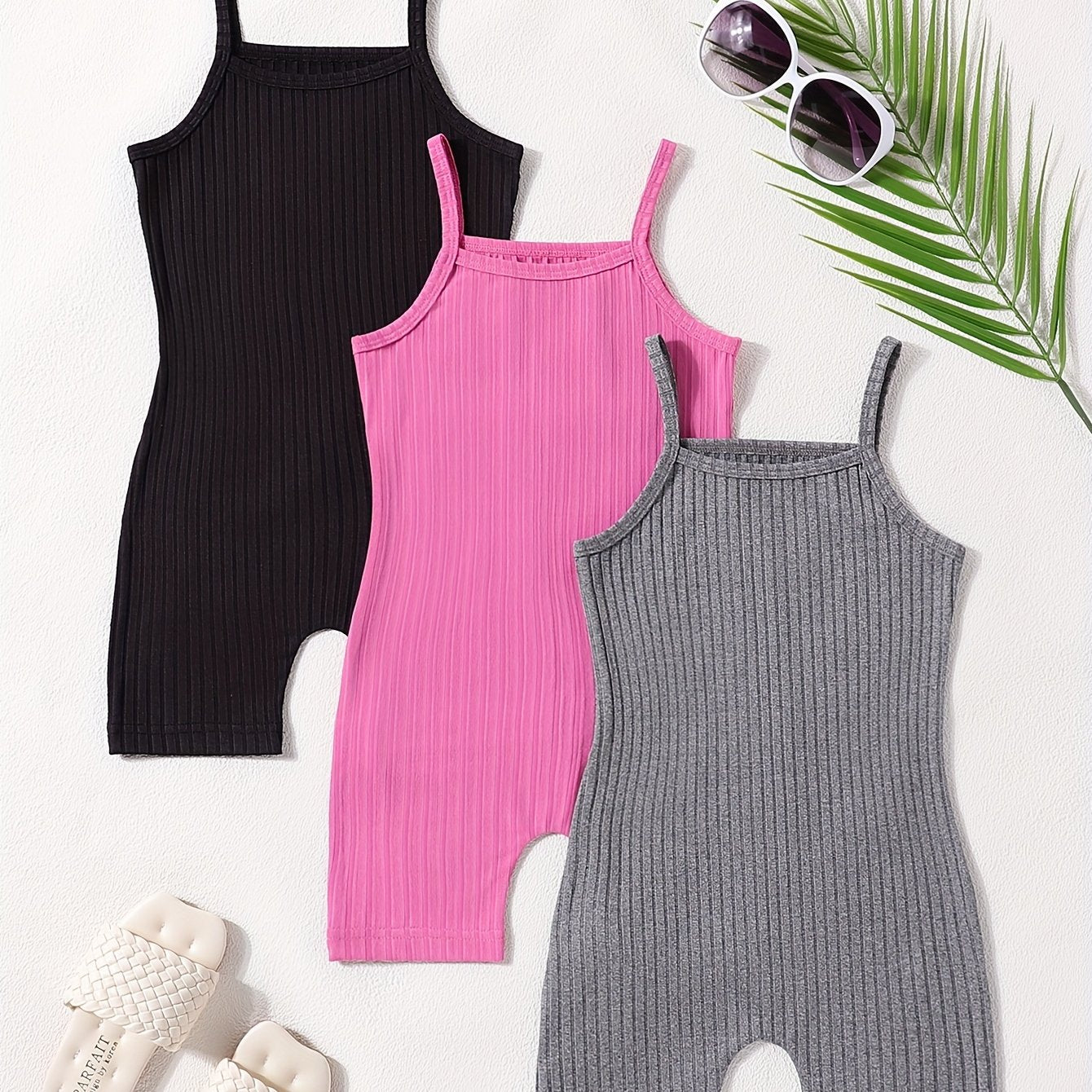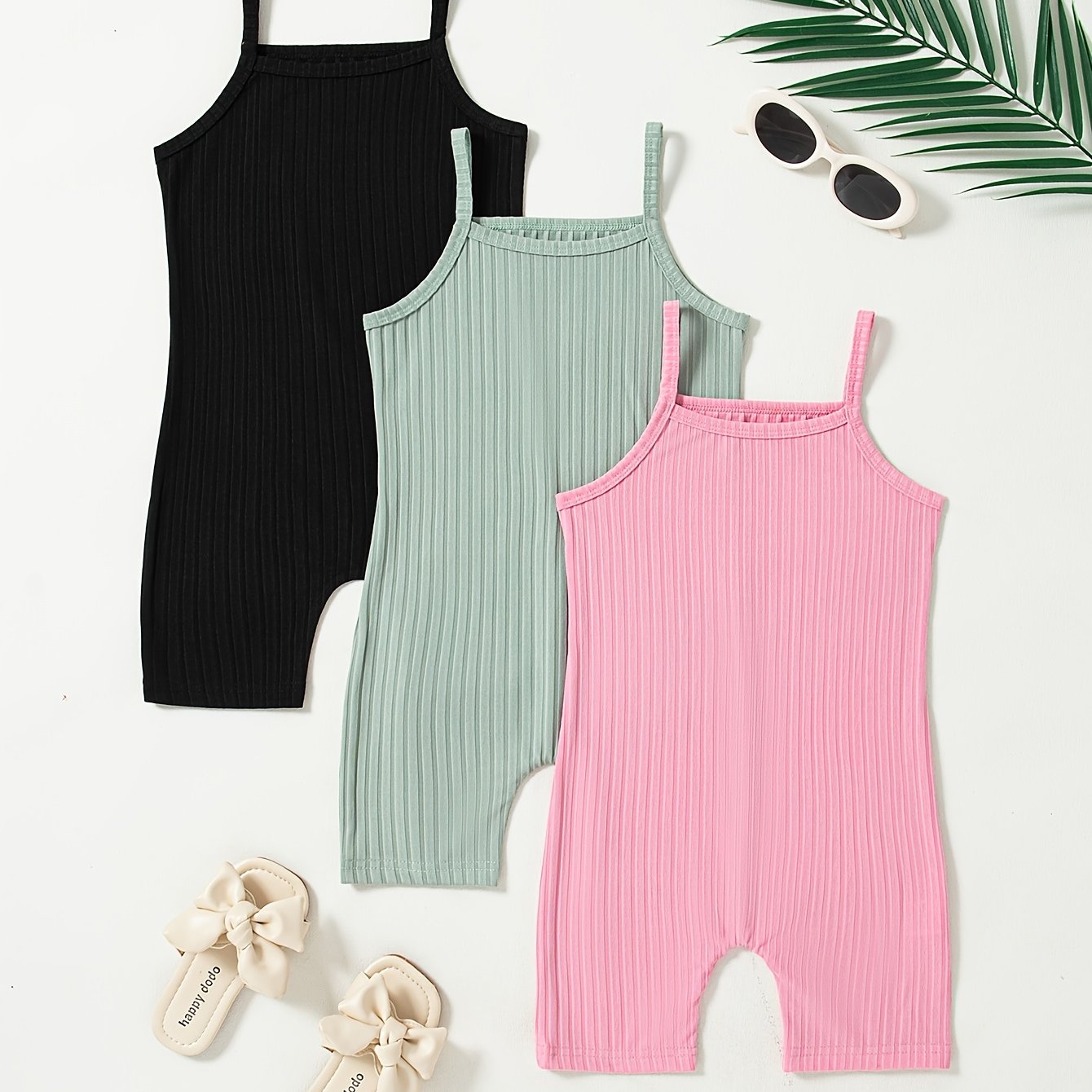 Летний комбинезон с рифлёной бретелью для девочек, 3 шт., однотонные цвета, повседневный уличный стиль