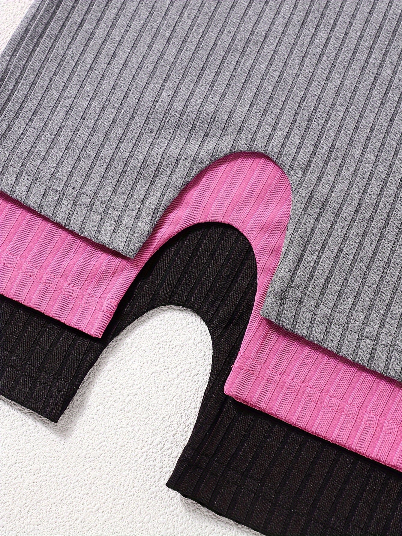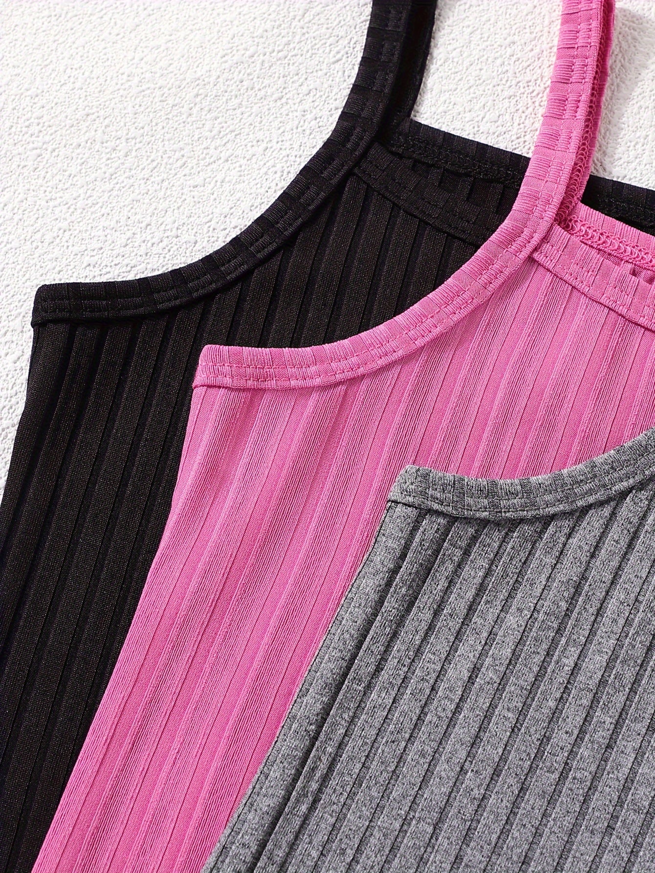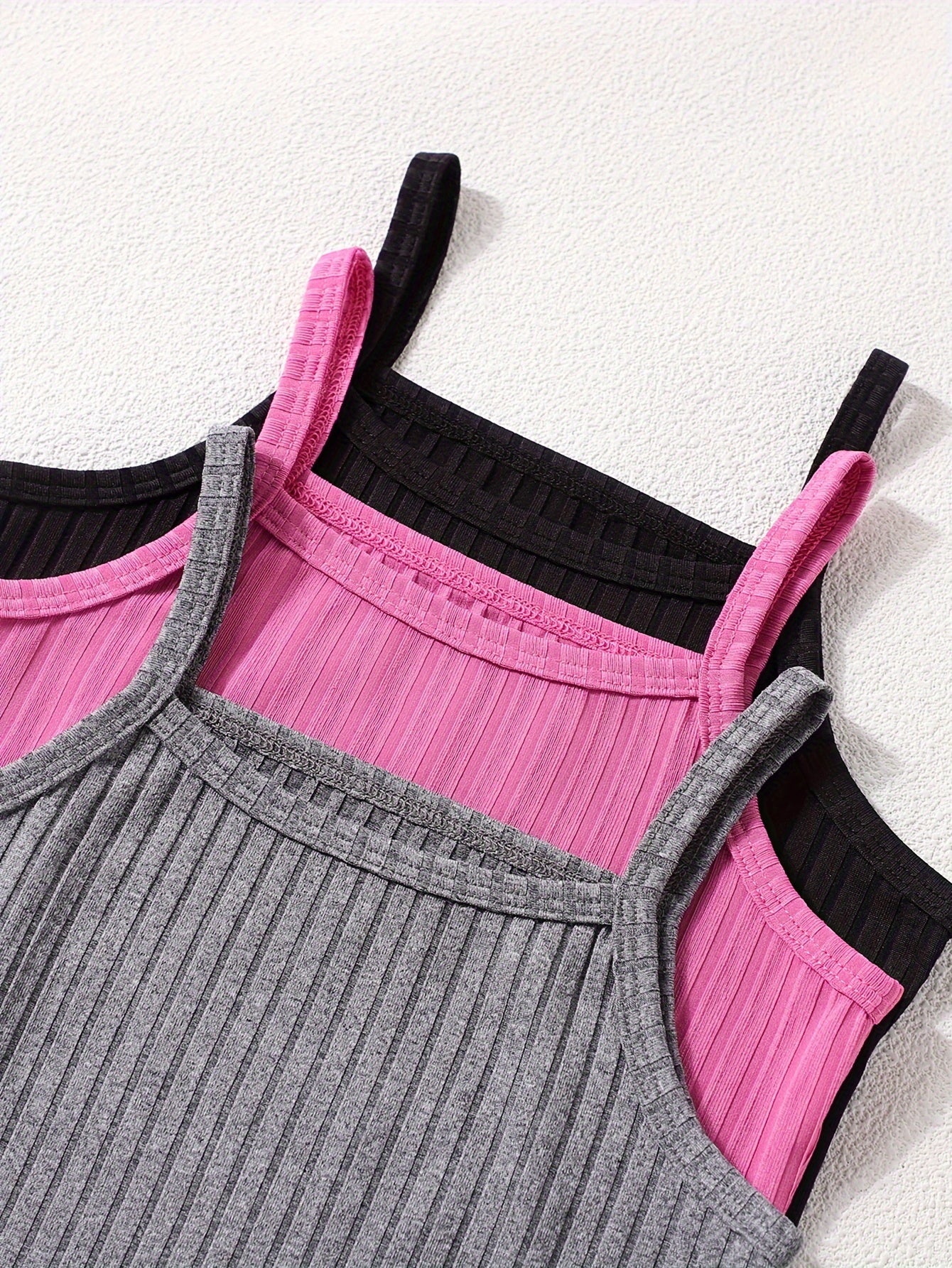 Летний комбинезон с рифлёной бретелью для девочек, 3 шт., однотонные цвета, повседневный уличный стиль