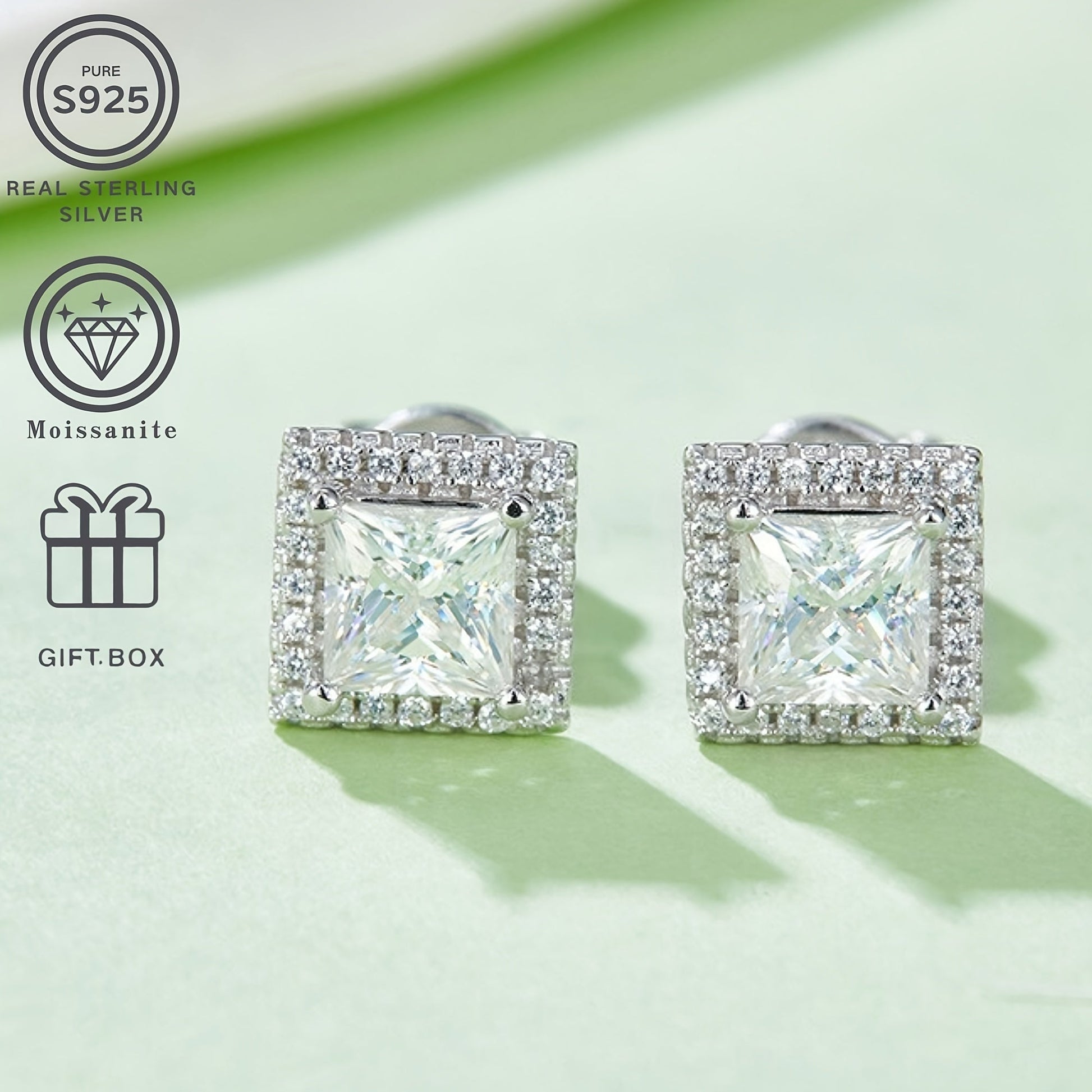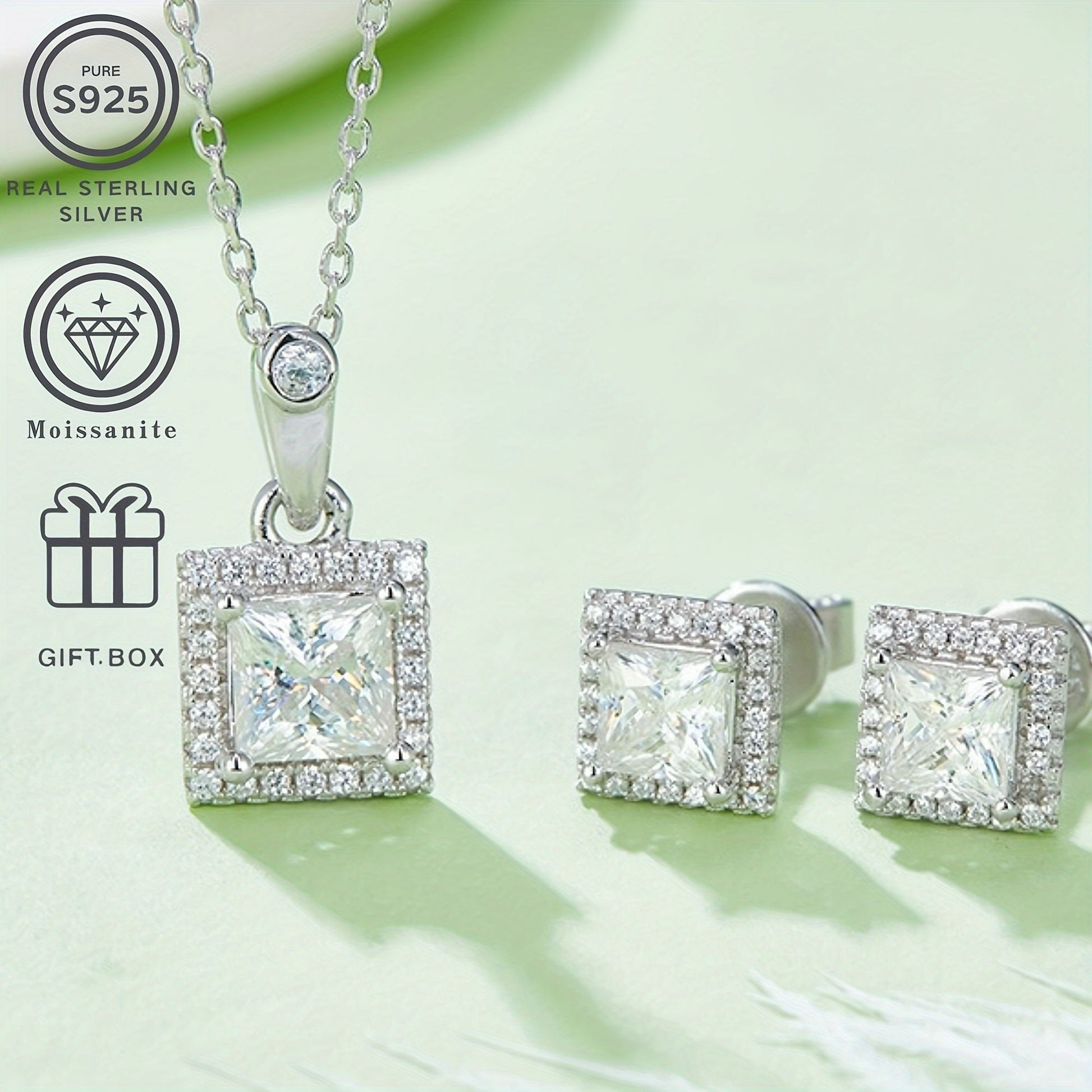 Серебряный ювелирный набор с моиссанитом, серьги-пусеты с центральным камнем 1ct, подарок для женщин