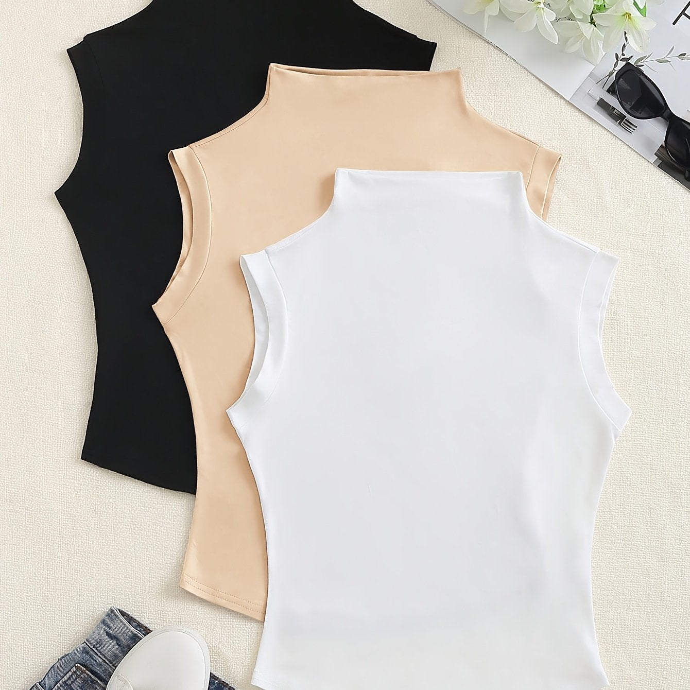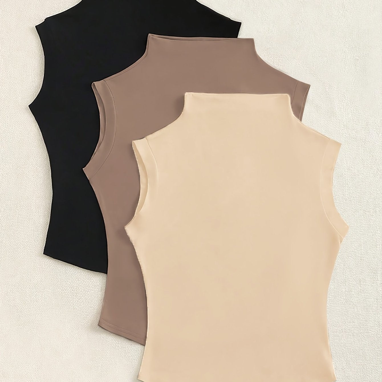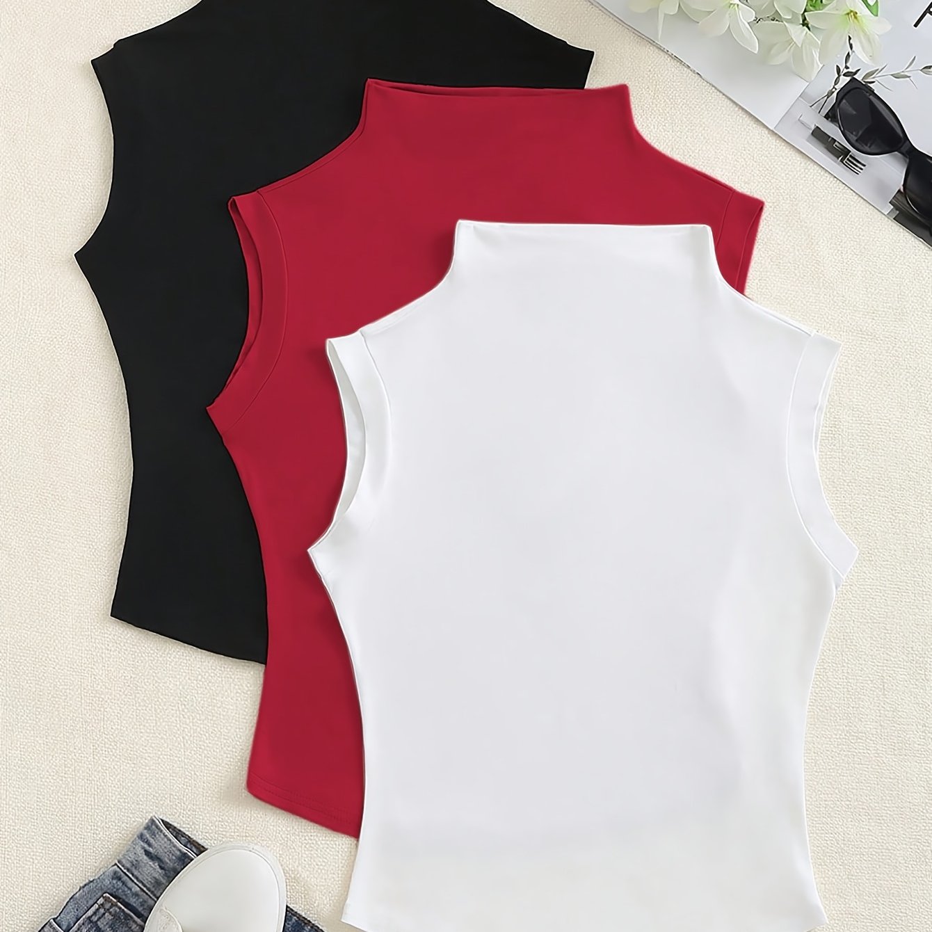 3-комплект стильных женских безрукавных нарядов с маленьким стоячим воротником