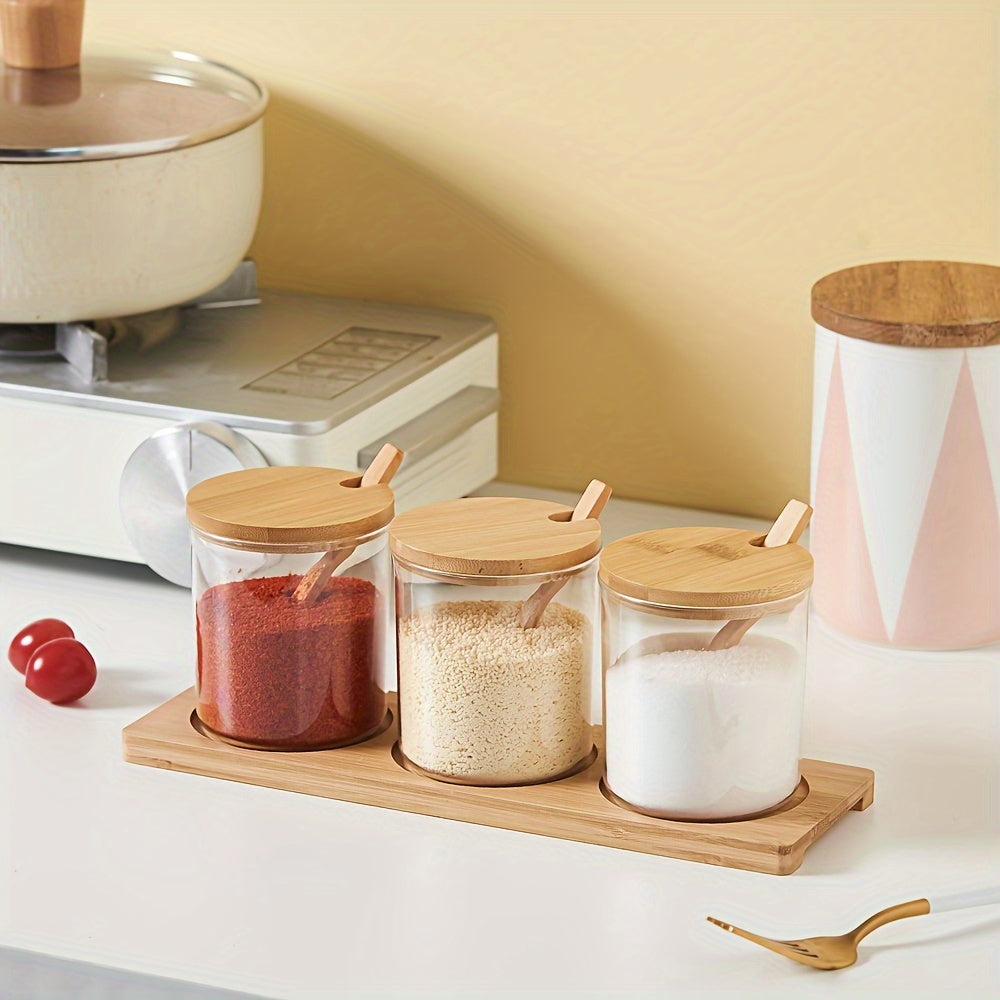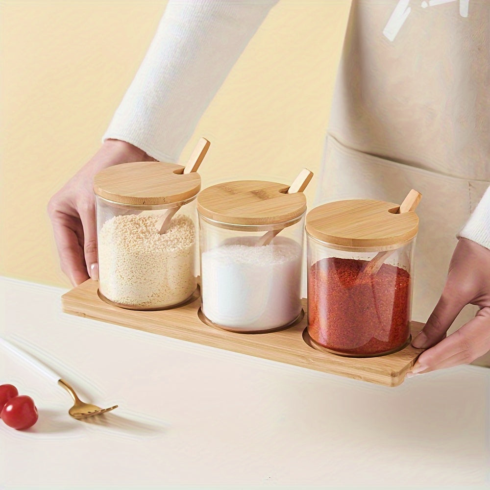 Набор пластиковых банок для специй с влагонепроницаемыми крышками и поддоном для кухонного хранения