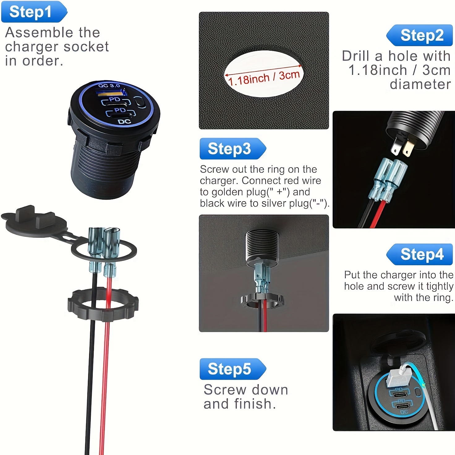 3-портовая автомобильная зарядная розетка из ABS материала 30W PD3.0 18W QC 3.0 для транспортных средств