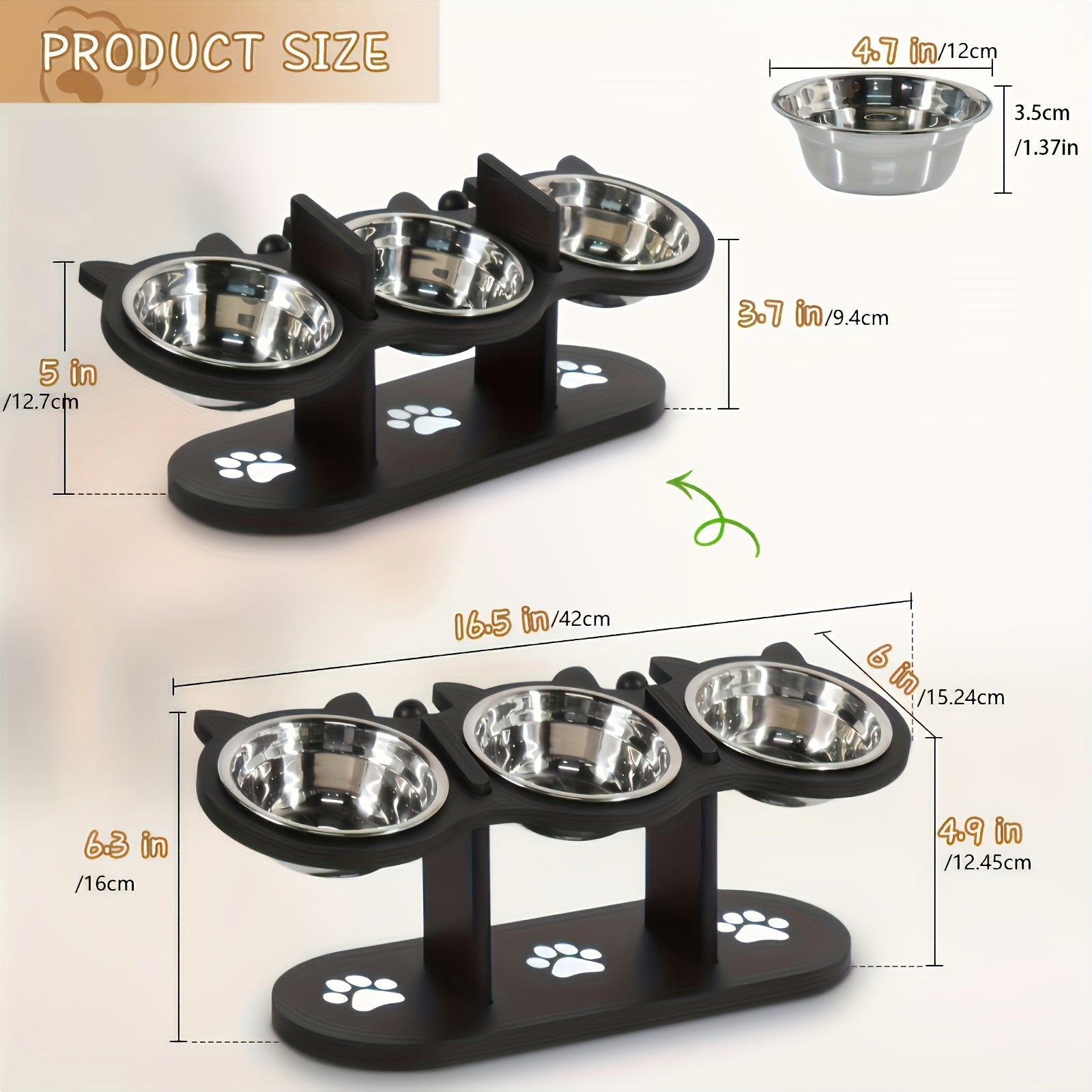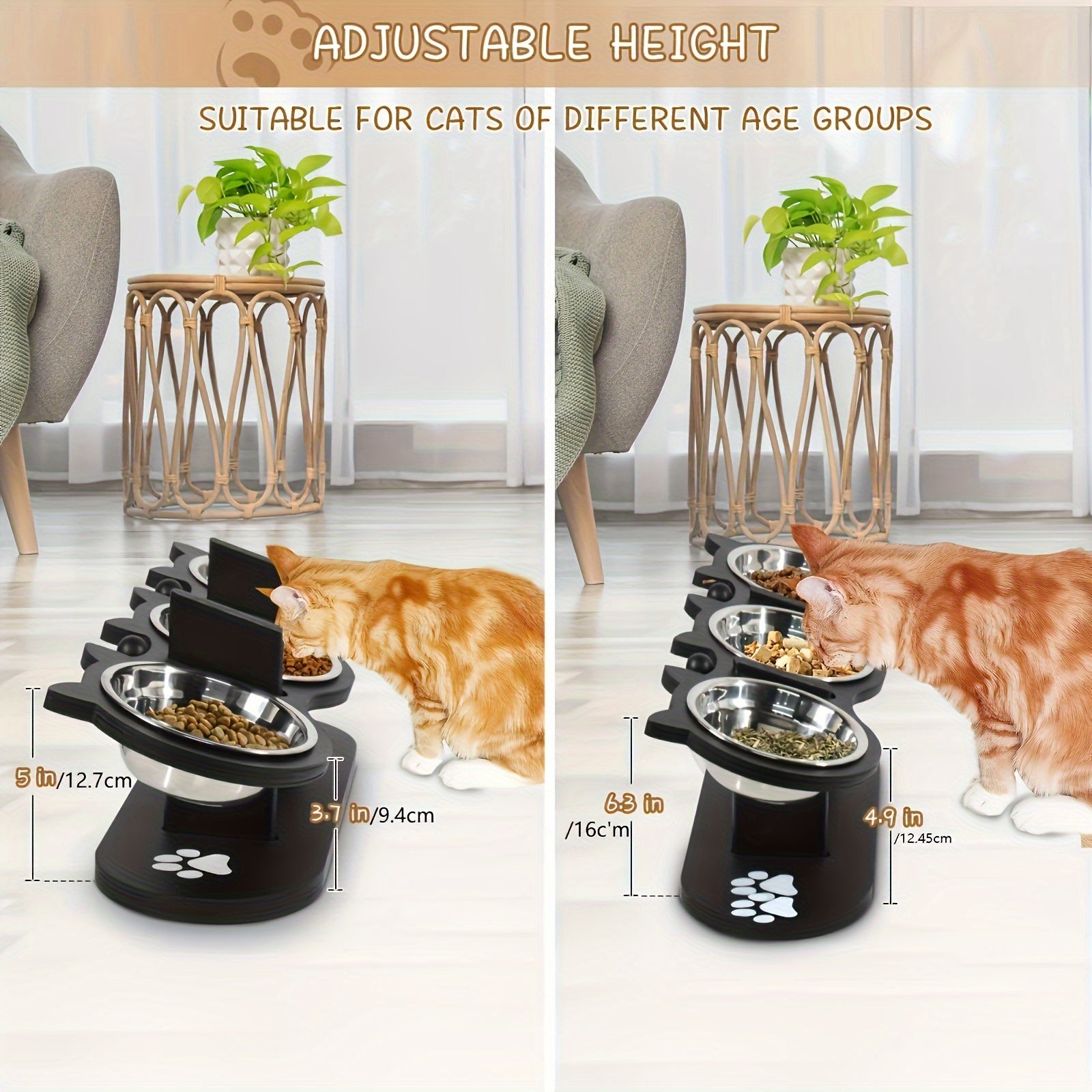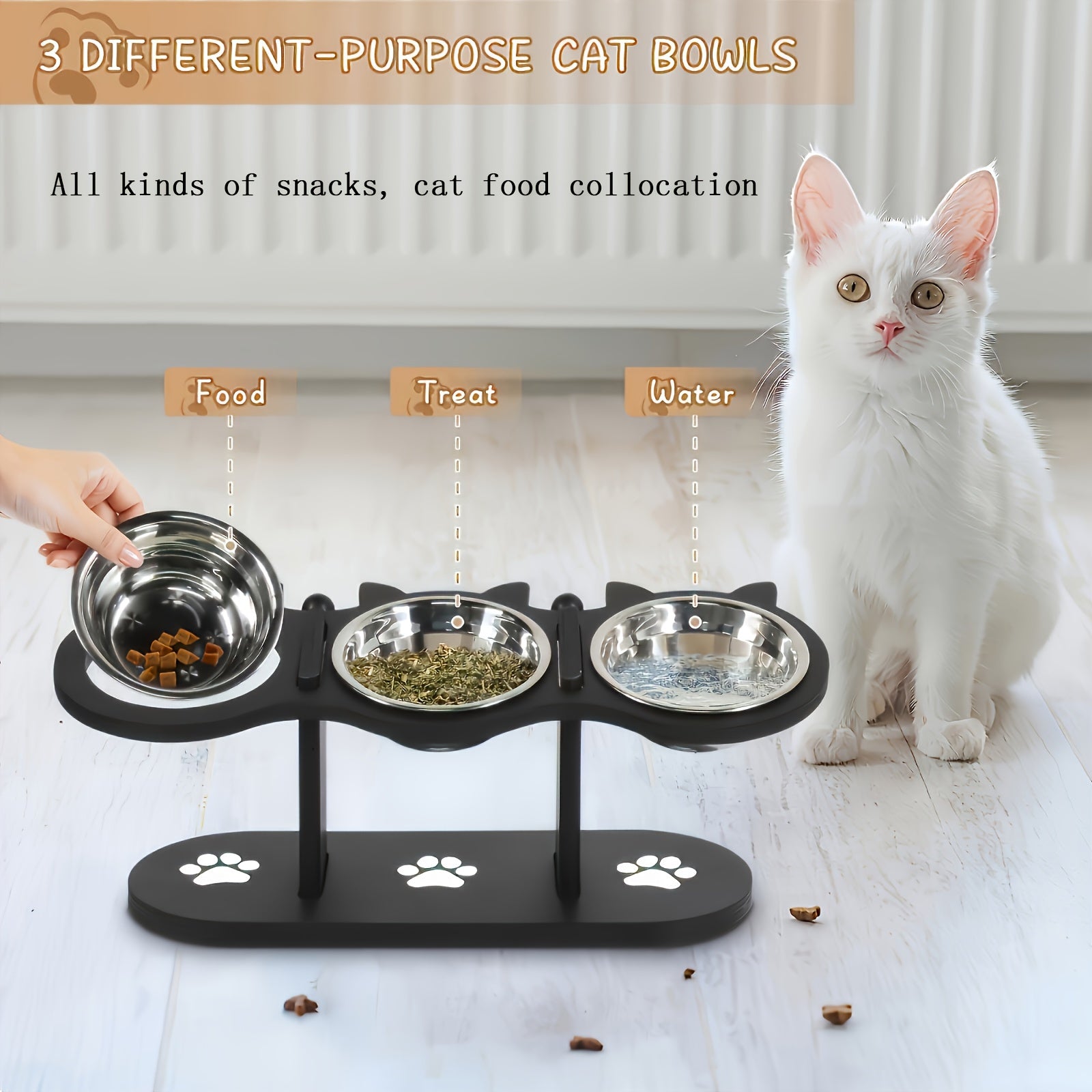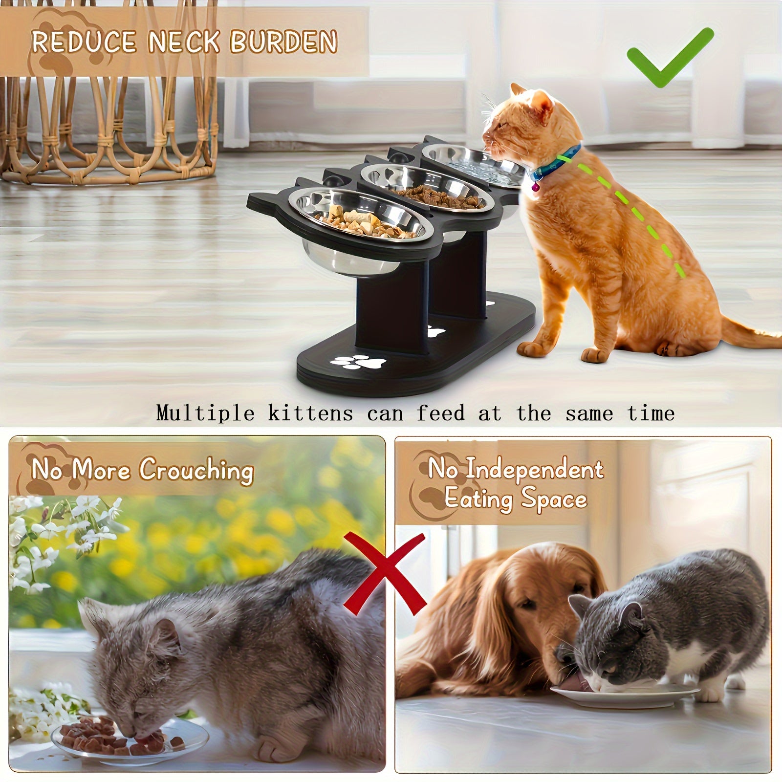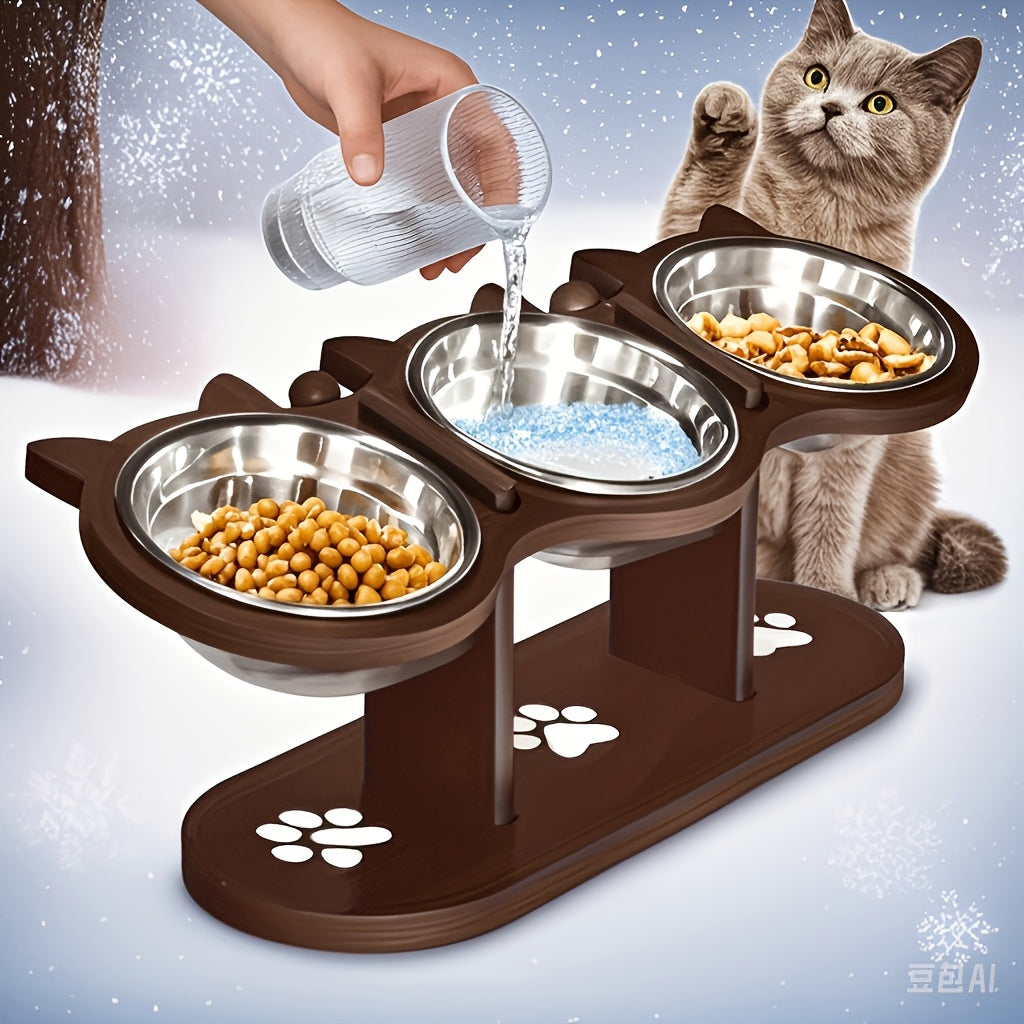 Поднятая кормушка для кошек с регулируемым углом и нержавеющими мисками для нескольких кошек