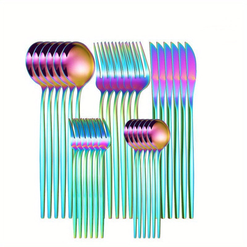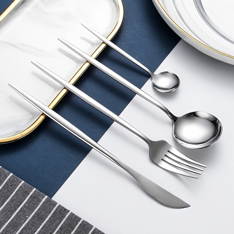 30-частный набор португальских столовых приборов из нержавеющей стали с тонкими ручками, идеальный для стейка, ужина и десерта, идеально подходит для домохозяйств, отелей и ресторанов.