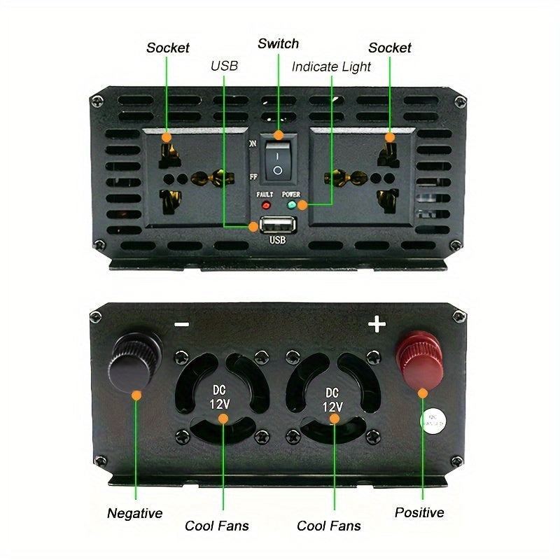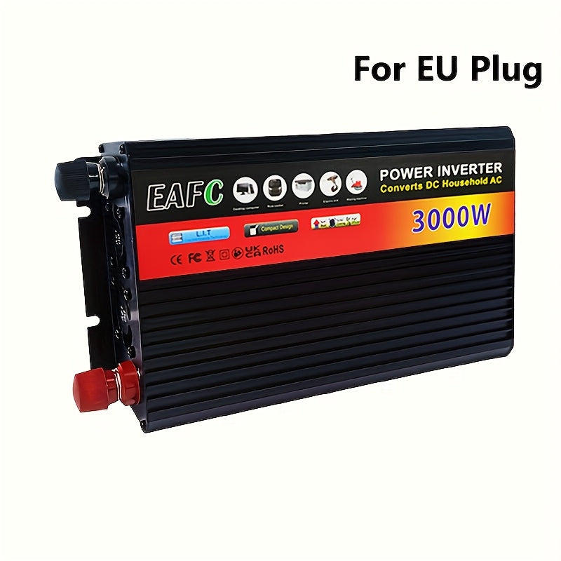 Портативный автомобильный инвертор мощности 3000 Вт, DC 12 В в AC 220 В с европейской вилкой