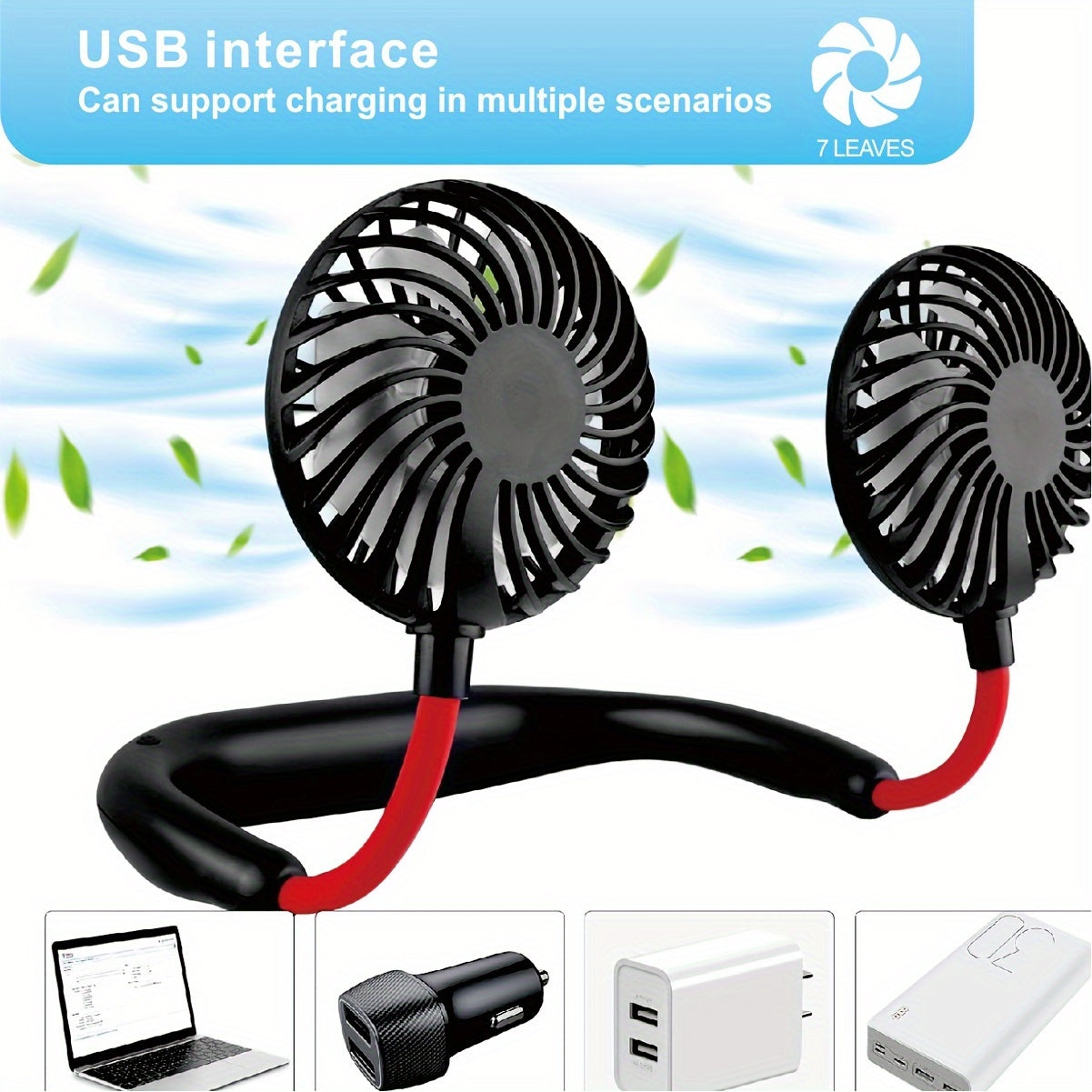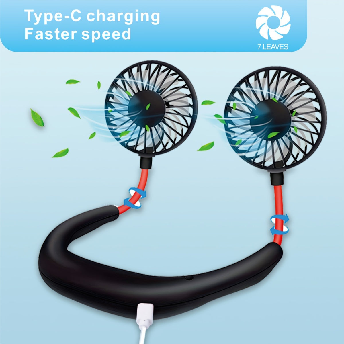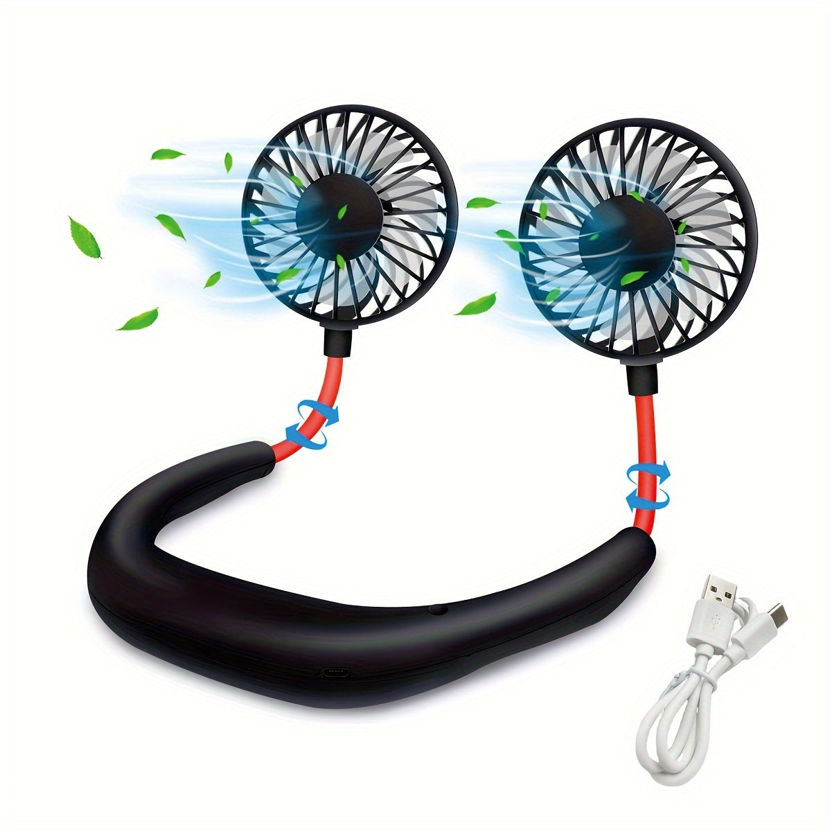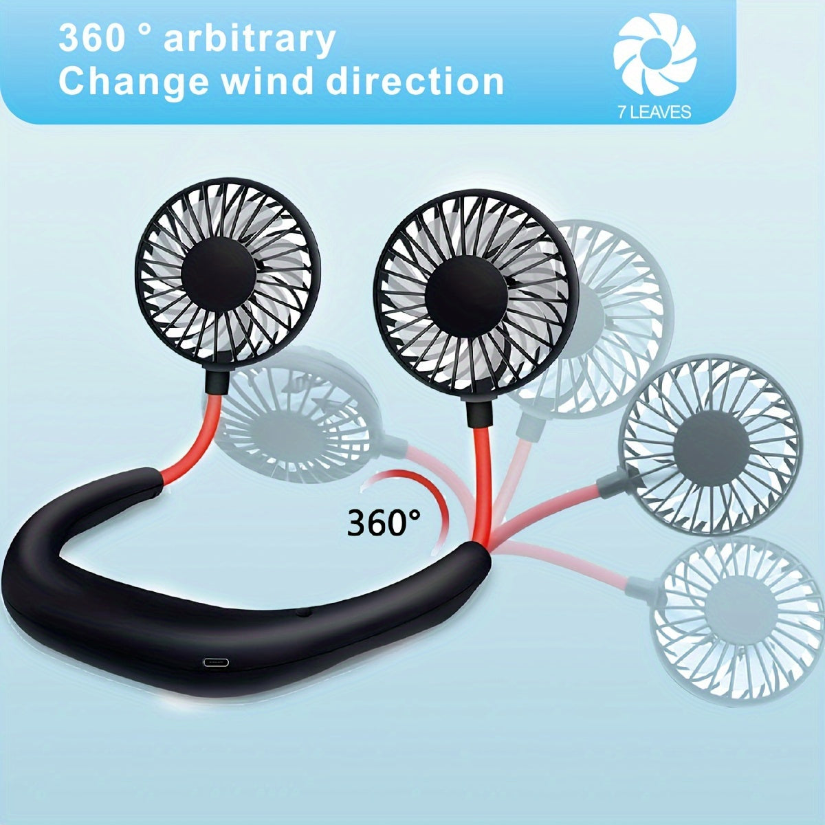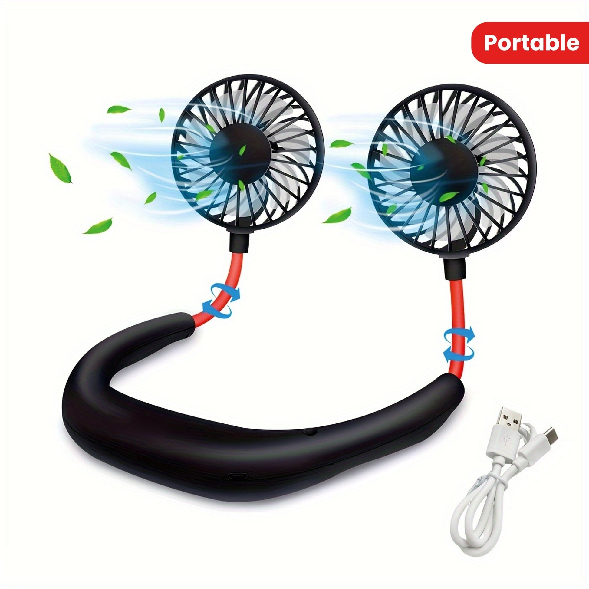 360° Портативный вентилятор с функцией высокой скорости и перезаряжаемой литиевой батареей, изготовленный из пластика, поставляется с несколькими компонентами для охлаждения, идеален для использования в помещении и на улице, USB перезаряжаемый.
