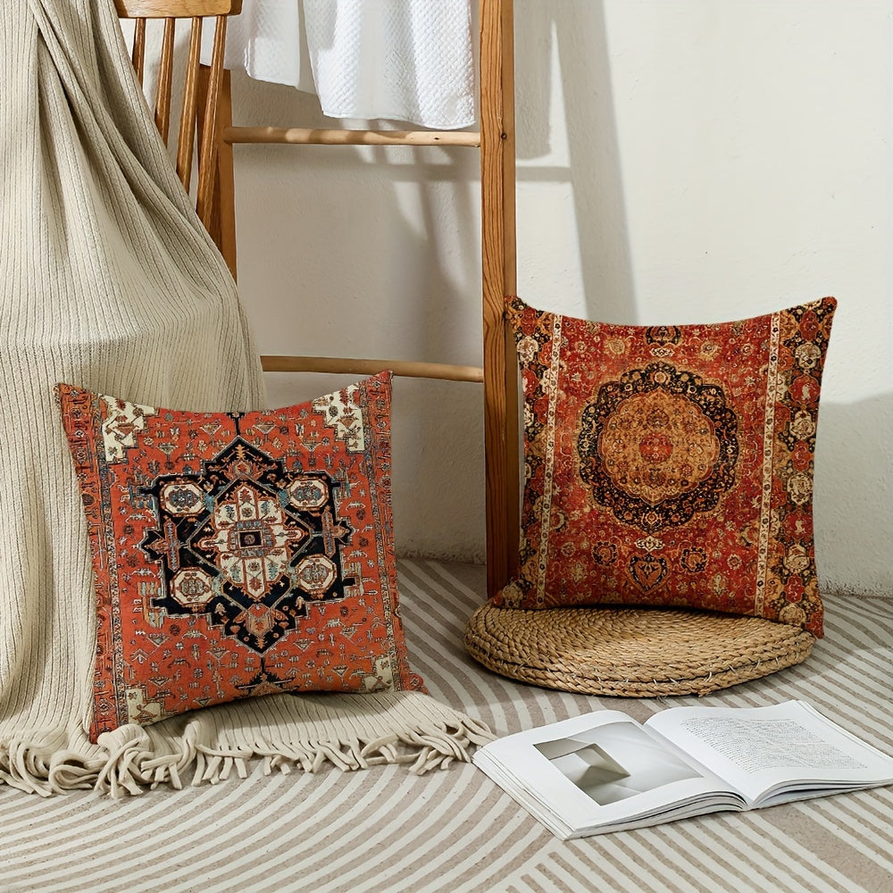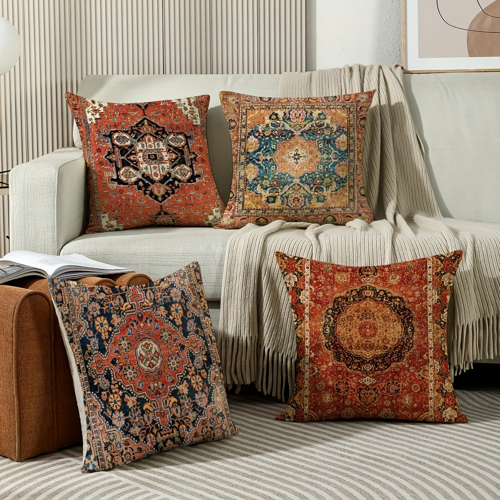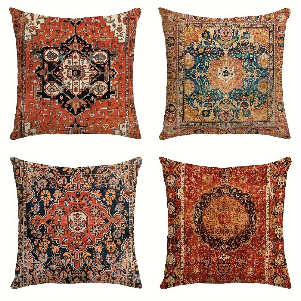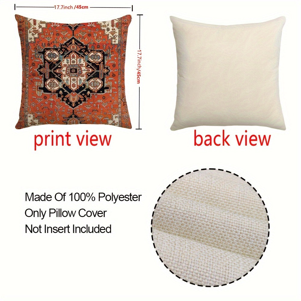 4 Чехла для подушек в стиле бохо, 45.72x45.72 см, оранжево-красный этнический дизайн, квадратные льняные чехлы для уличных диванов и кроватей (без наполнителя)