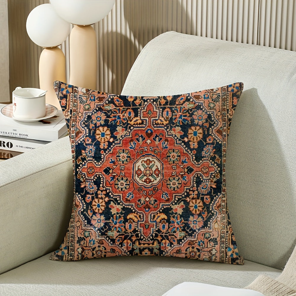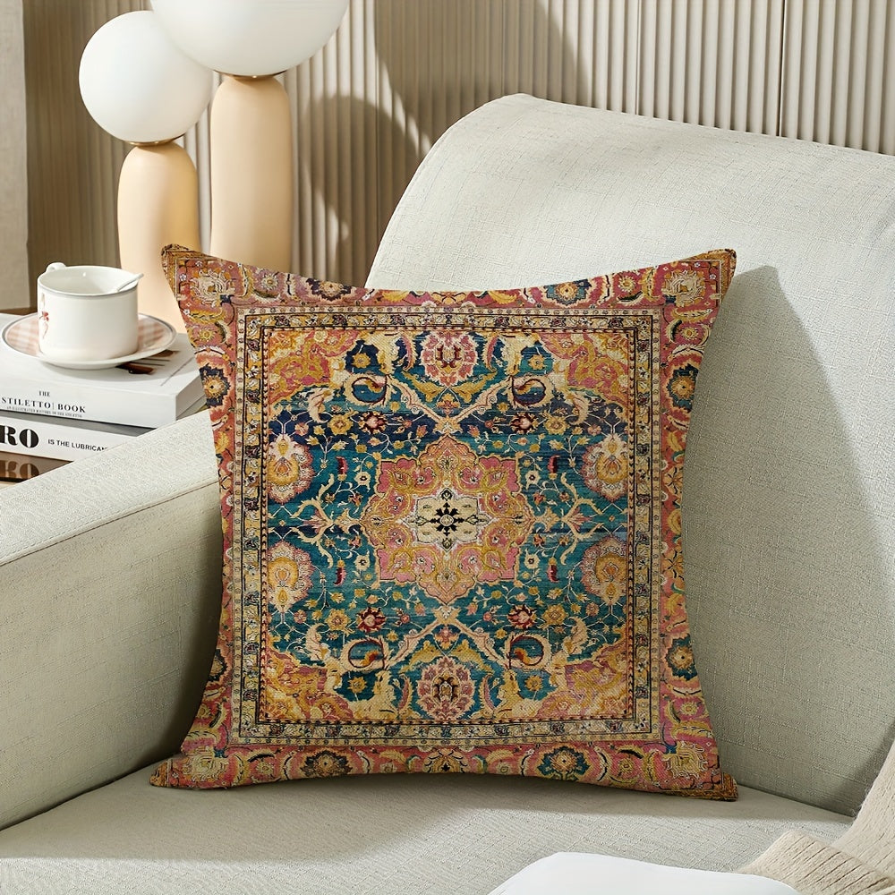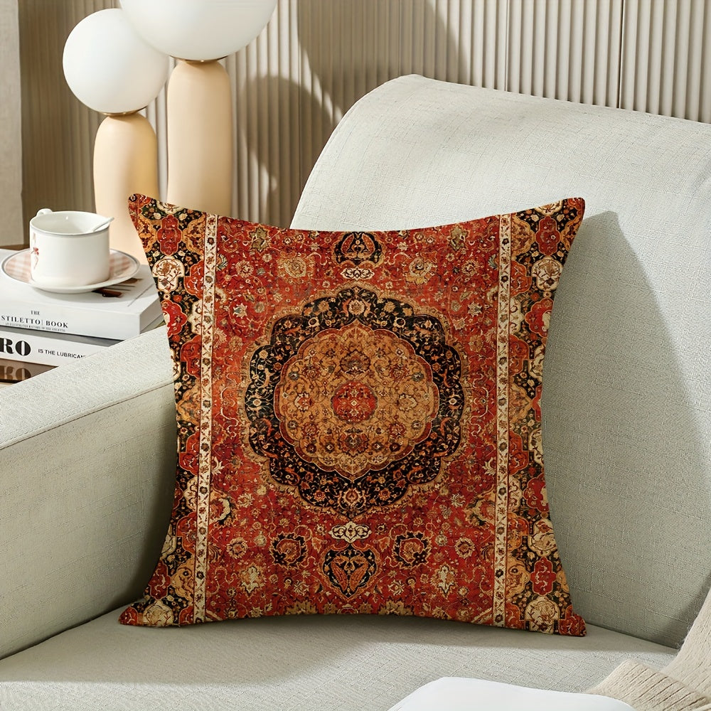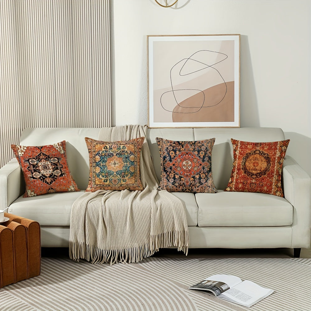 4 Чехла для подушек в стиле бохо, 45.72x45.72 см, оранжево-красный этнический дизайн, квадратные льняные чехлы для уличных диванов и кроватей (без наполнителя)