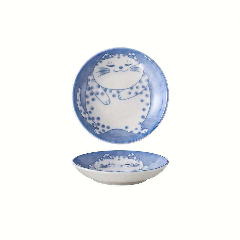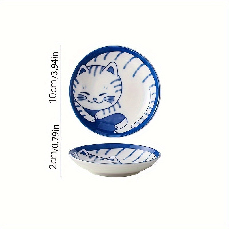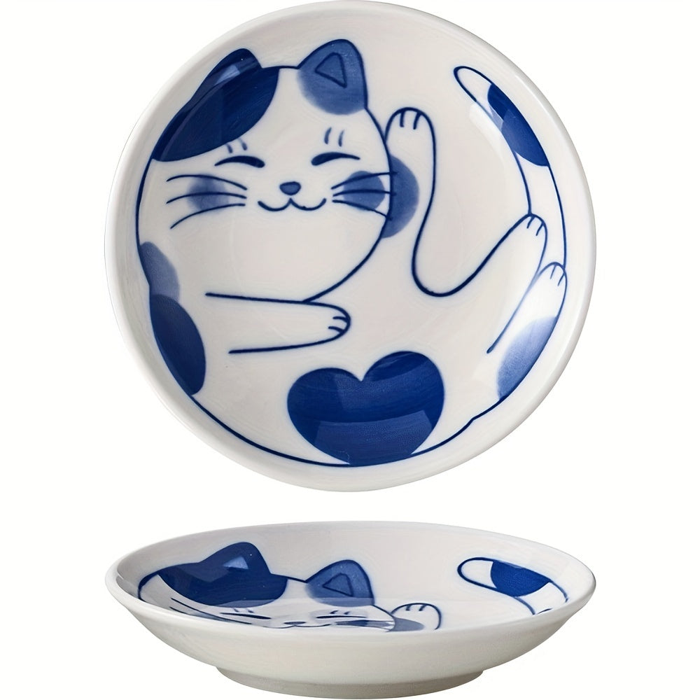 4 японские керамические десертные тарелки и соусники с милым мультяшным узором Счастливого Кота, подходящие для домашних кухонь, ресторанов и отелей.