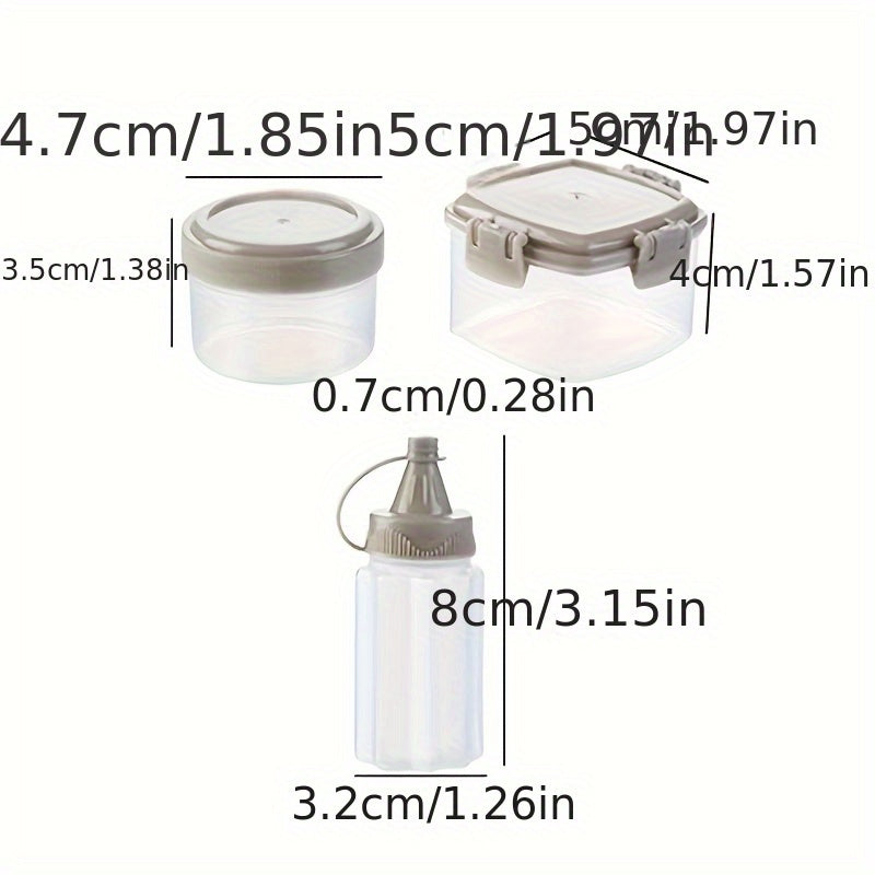 4 мини-бутылочки для приправ для портативного использования, идеально подходят для барбекю и приправ в кухне или на улице. Изготовлены из пластика без ПВХ.