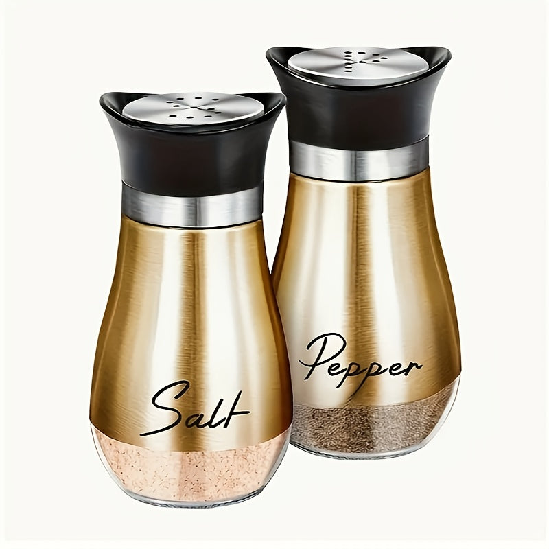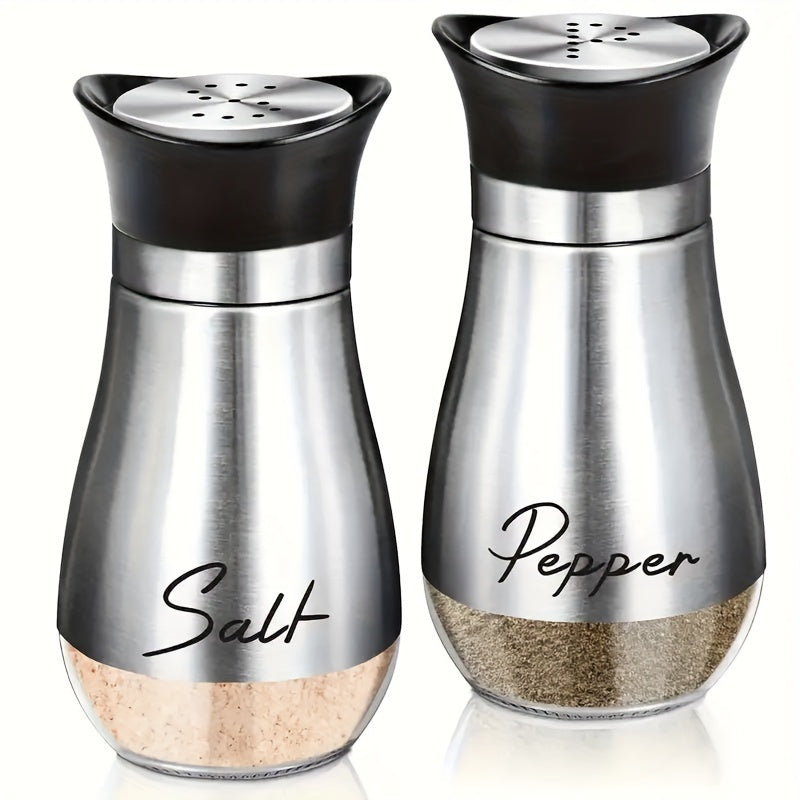Набор солонок и перечниц с стеклянным дном объемом 4 унции с крышками из нержавеющей стали для кухни, автодомов, кемпинга и барбекю.