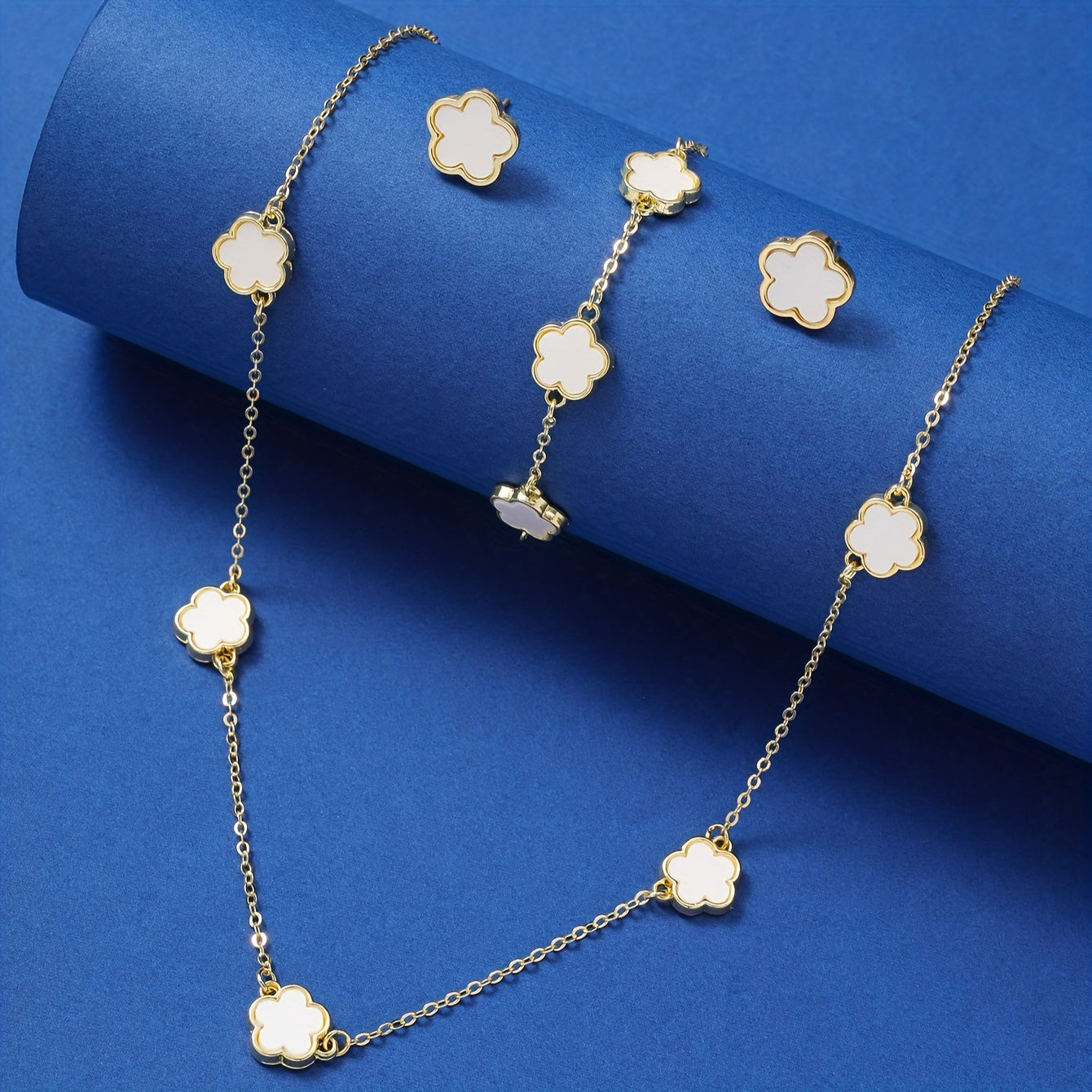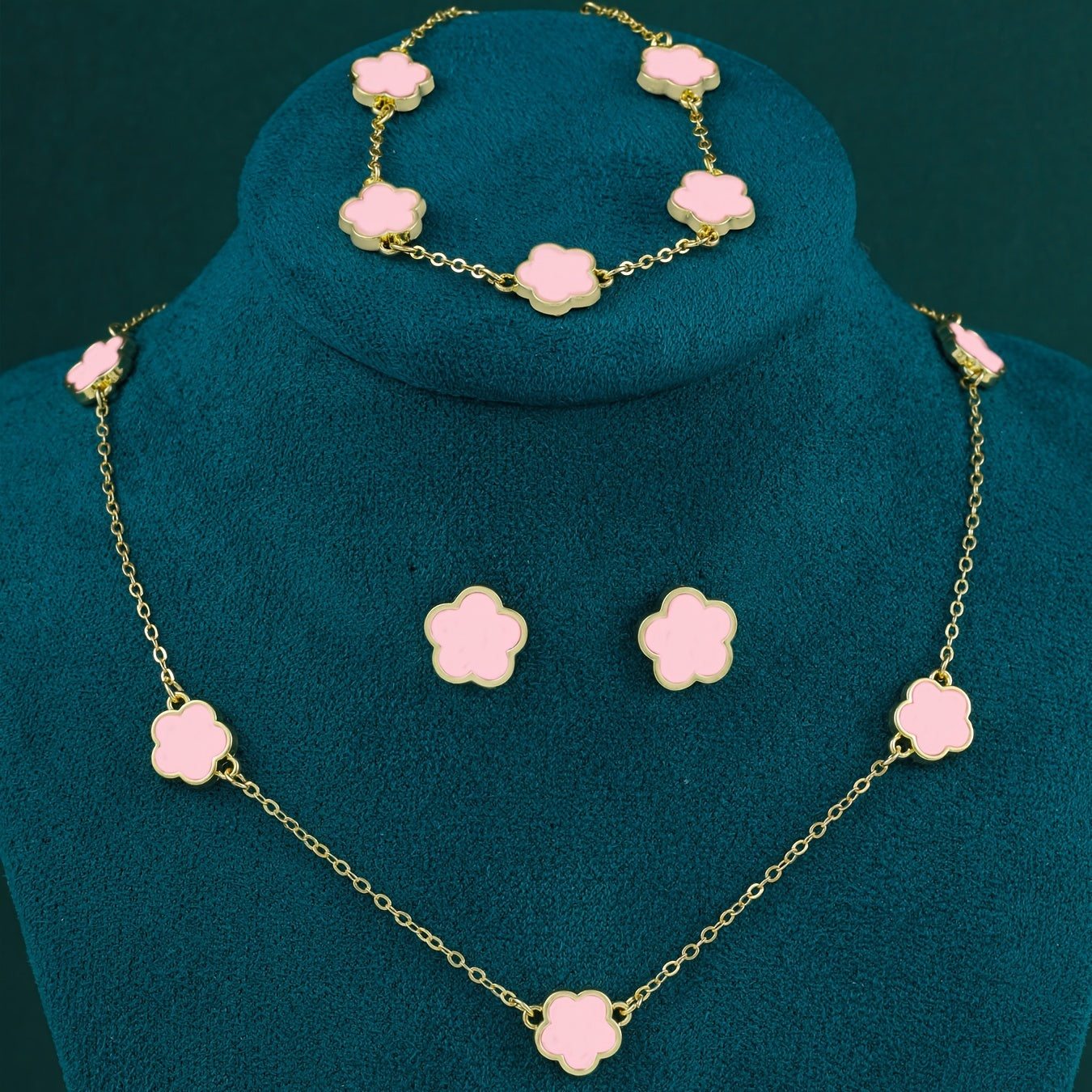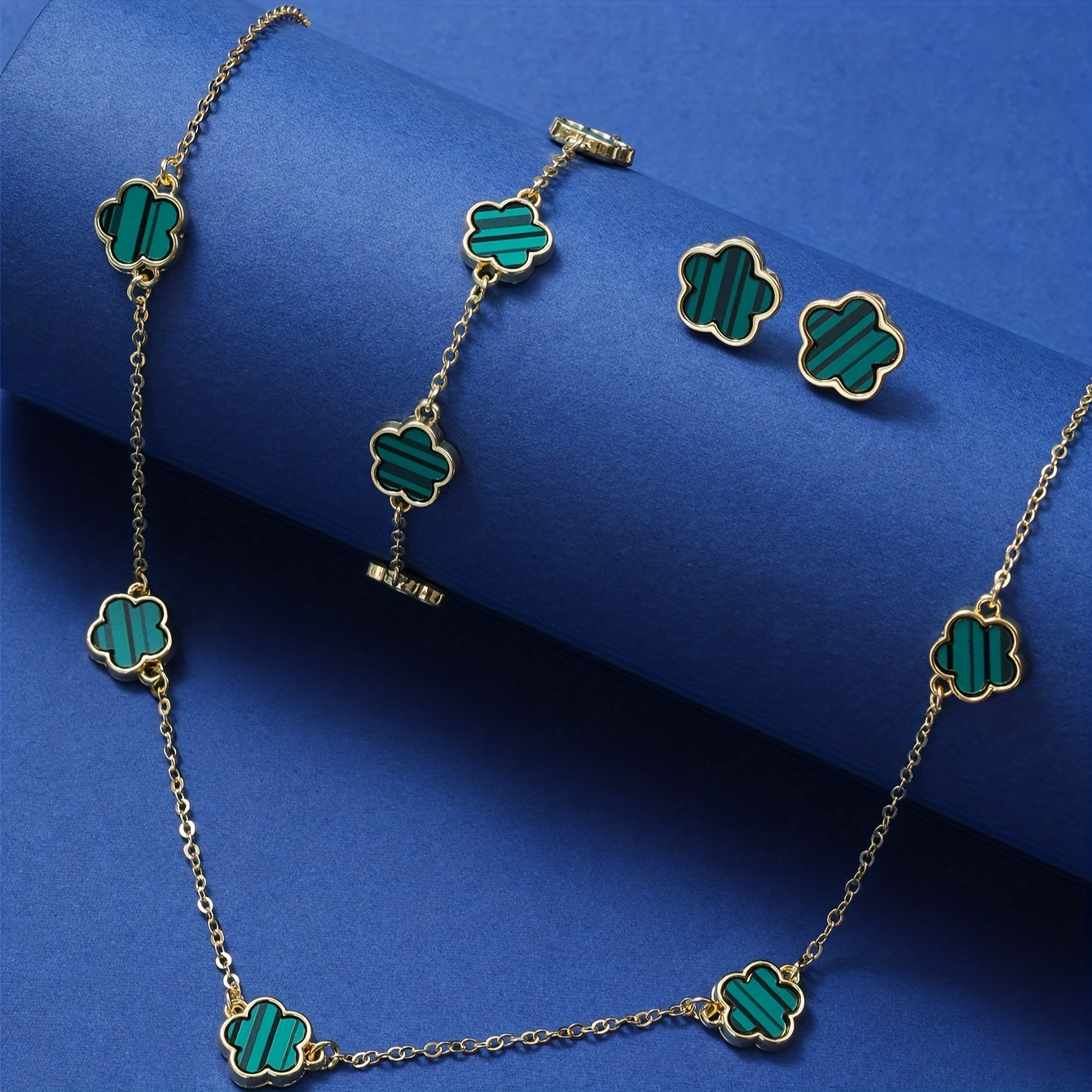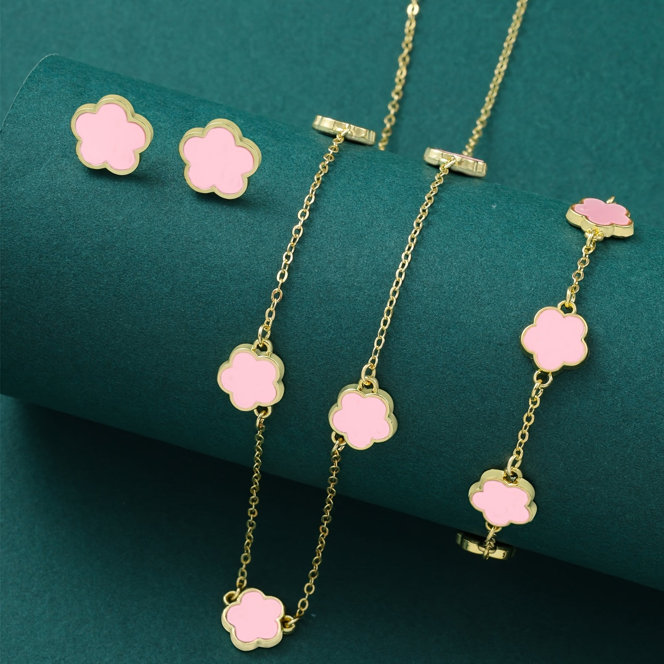 Медный ювелирный набор из 4 предметов с цветочным дизайном: ожерелье, серьги, браслет для повседневной носки, подарок