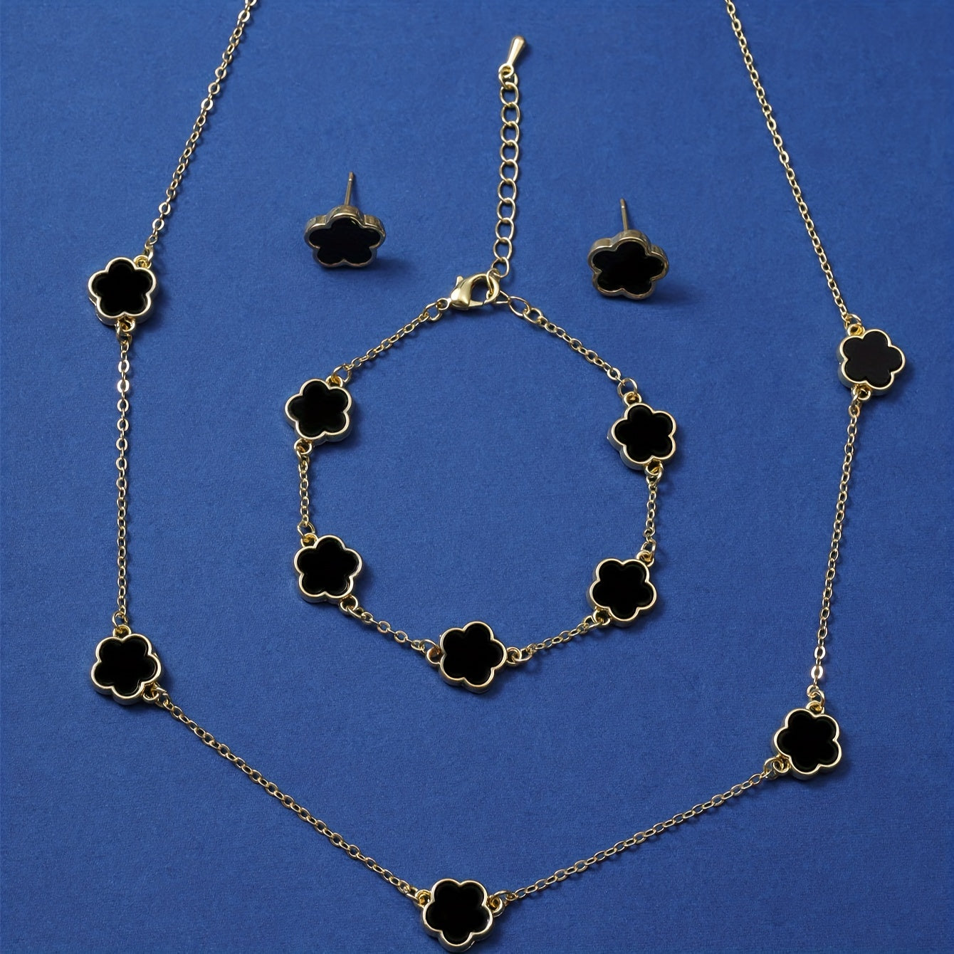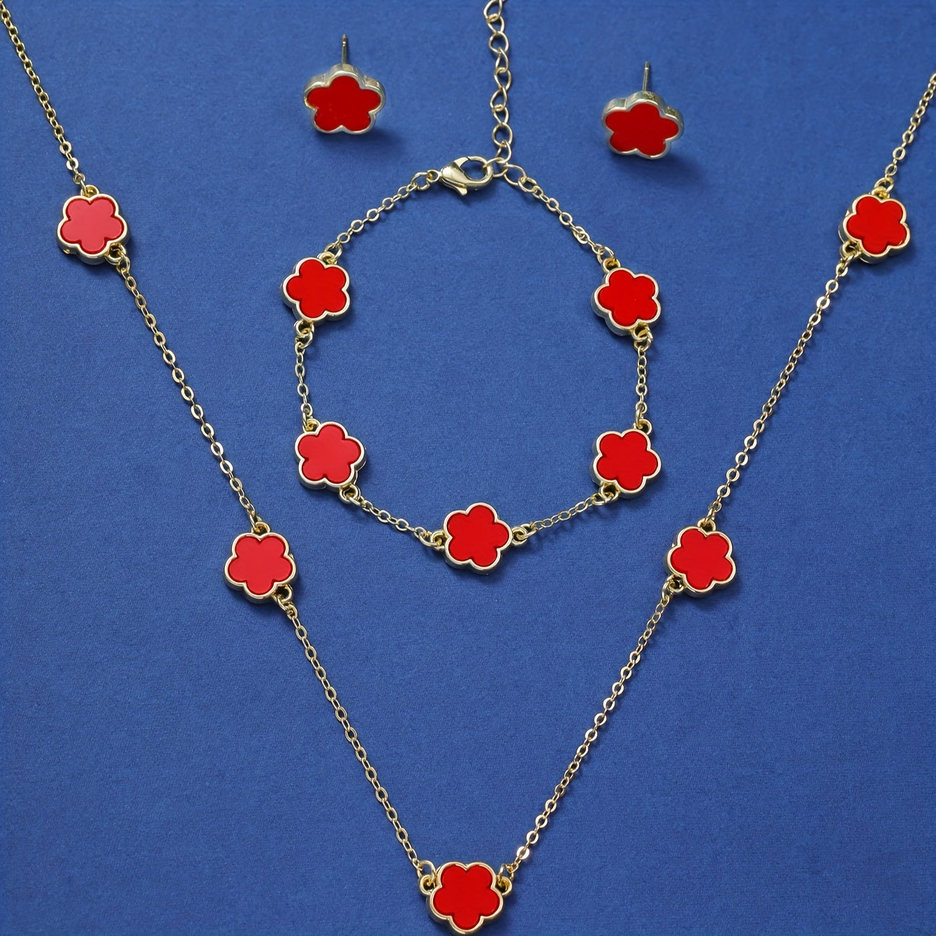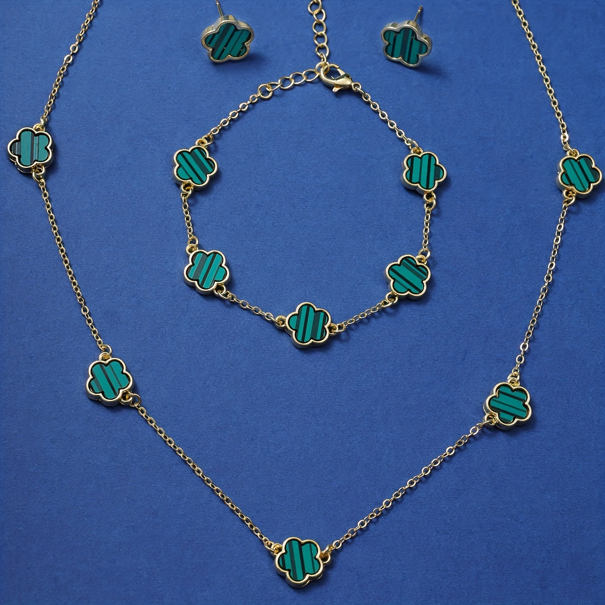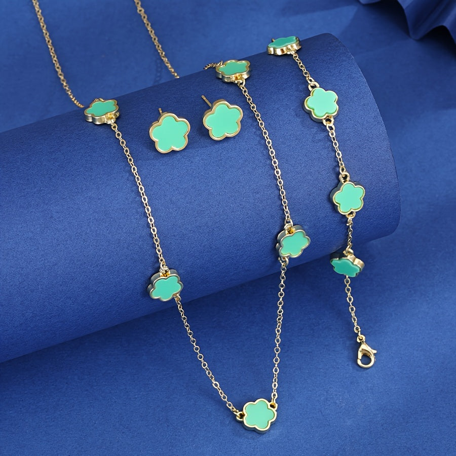 Медный ювелирный набор из 4 предметов с цветочным дизайном: ожерелье, серьги, браслет для повседневной носки, подарок
