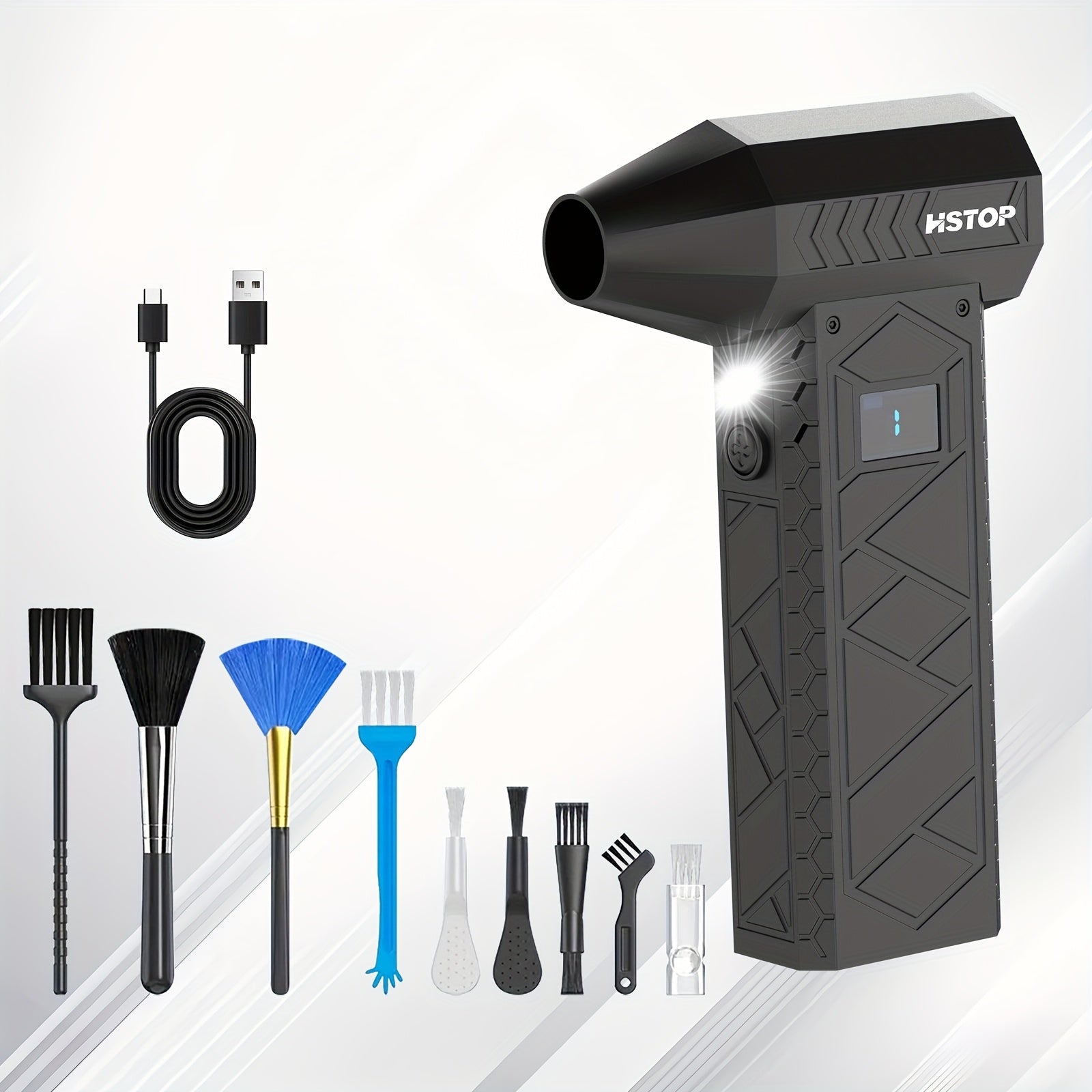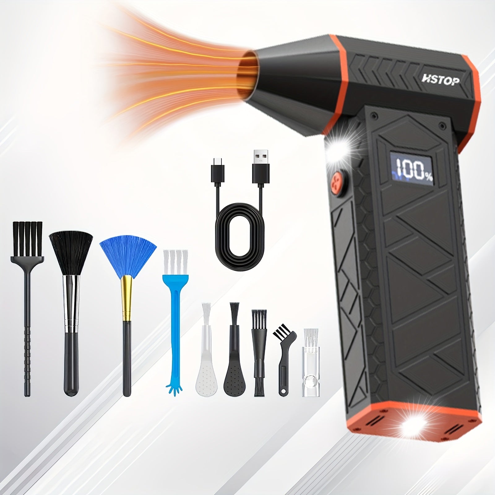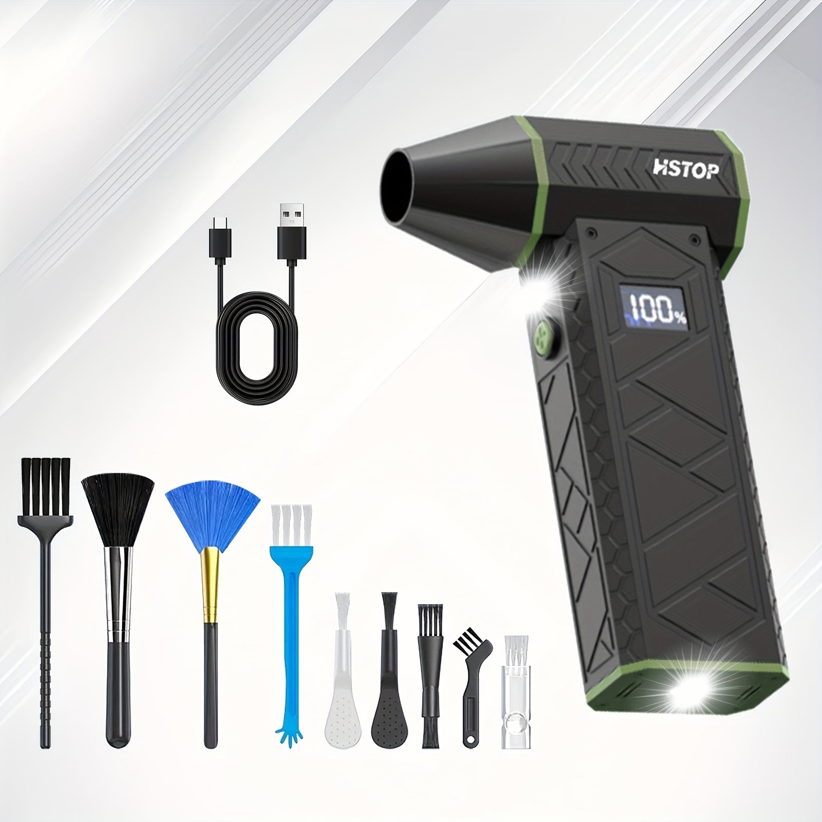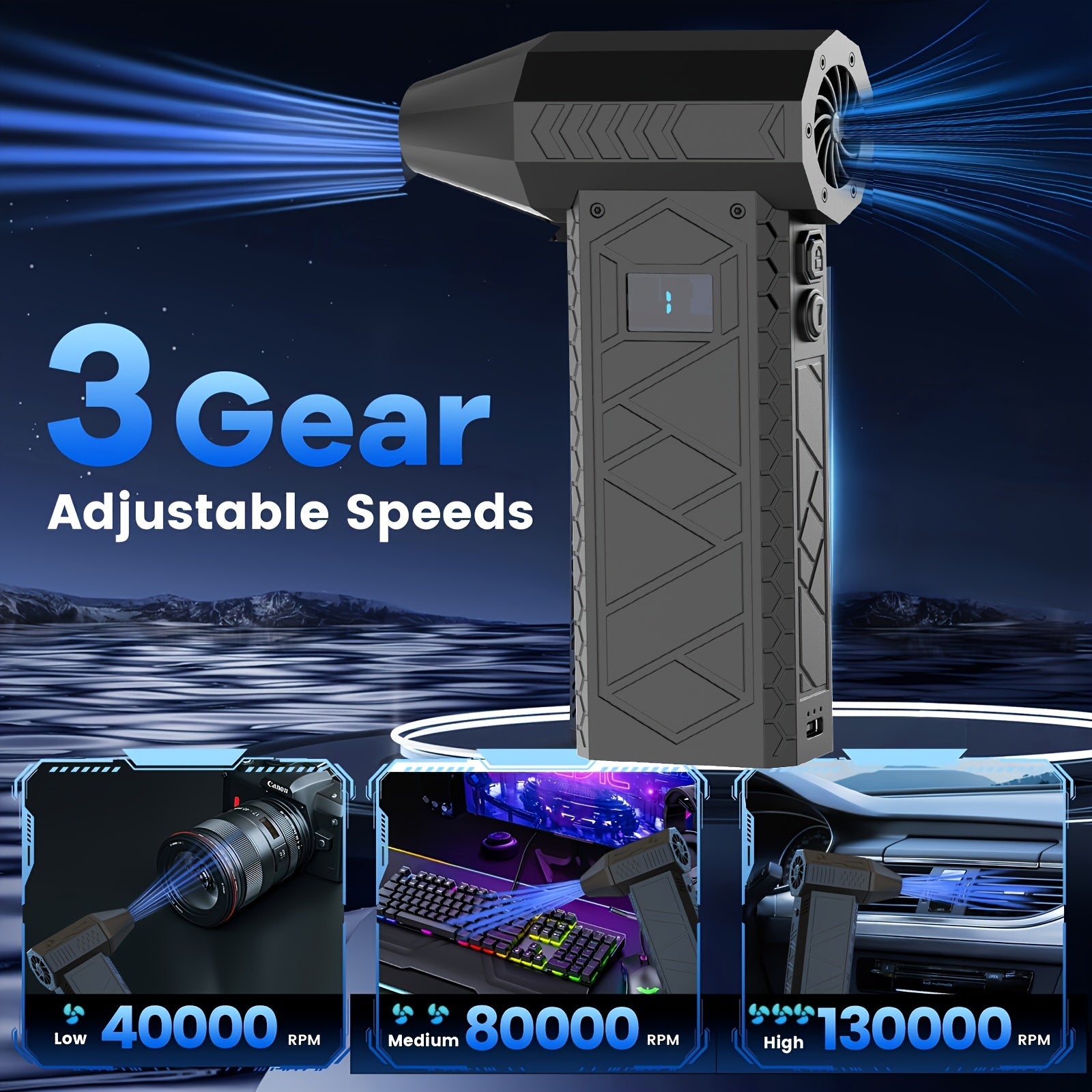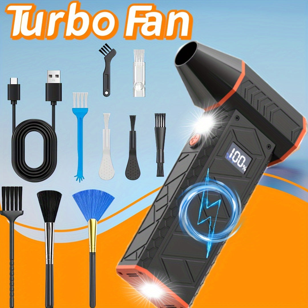 4-скоростной беспроводной турбо-вентилятор с воздушным дустером мощностью 100 Вт, USB-заряжаемый, с цифровым дисплеем, несколько насадок для клавиатур, автомобилей, дома и использования на улице - Турбо-джетный вентилятор