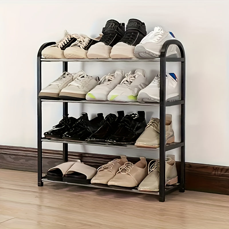 4-х уровневая черная полка для обуви с большим пространством — простая сборка, идеальное решение для хранения в общежитиях, школах и домах, изготовлена из прочного полипропилена, органайзер для обуви с большой вместимостью