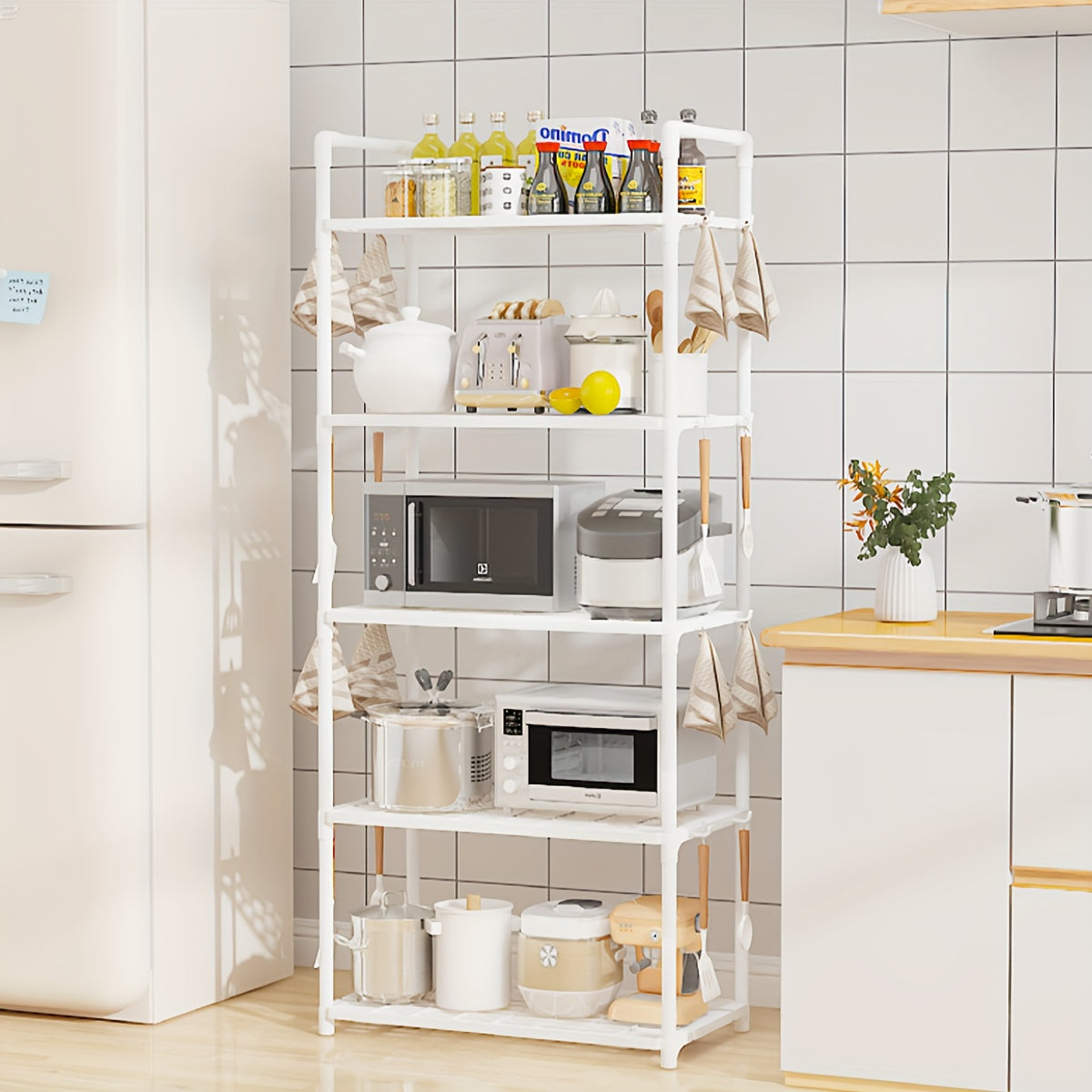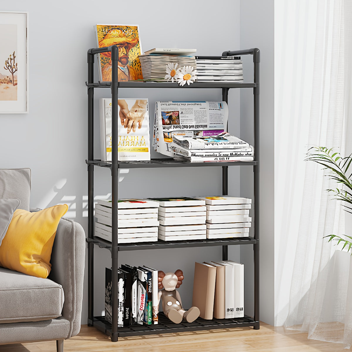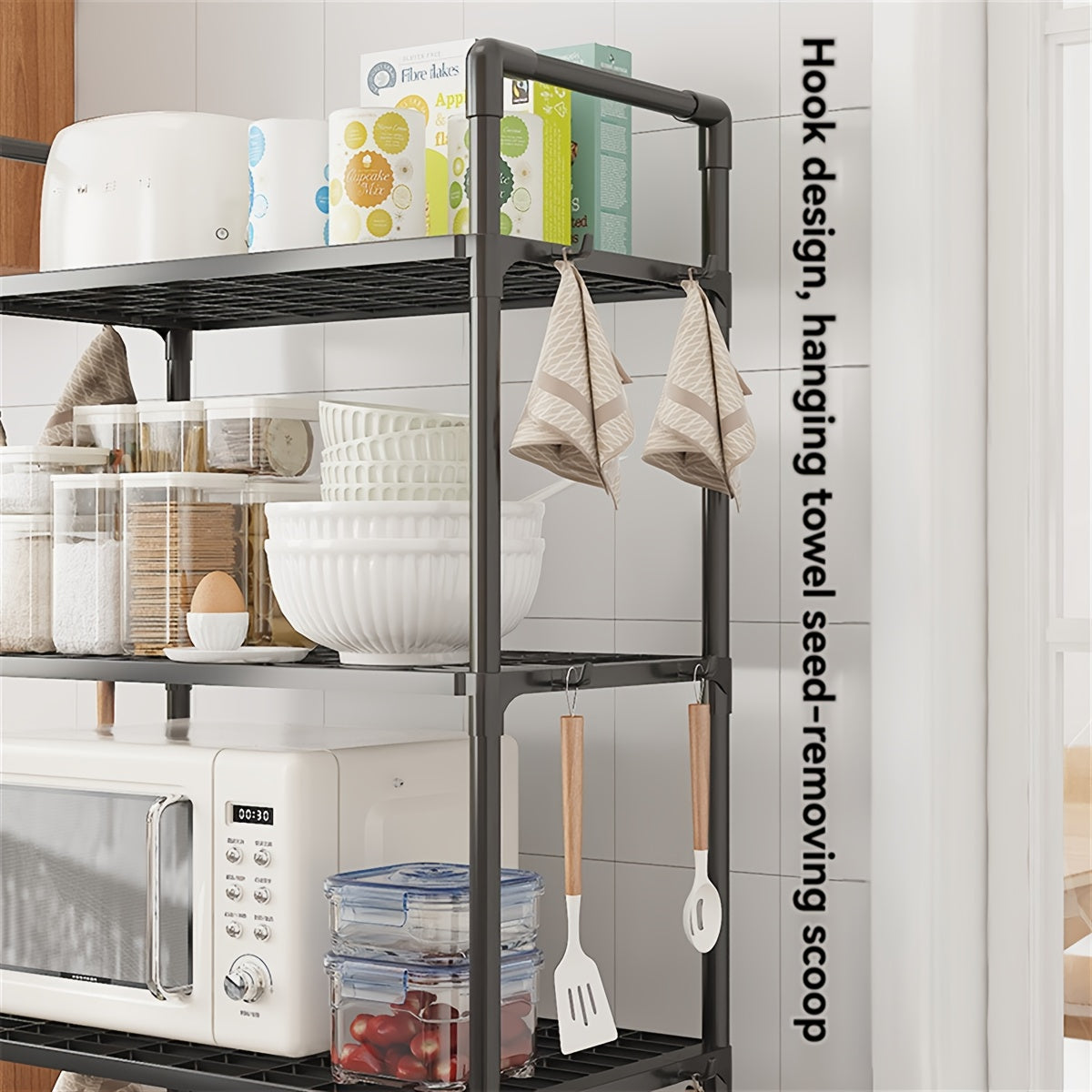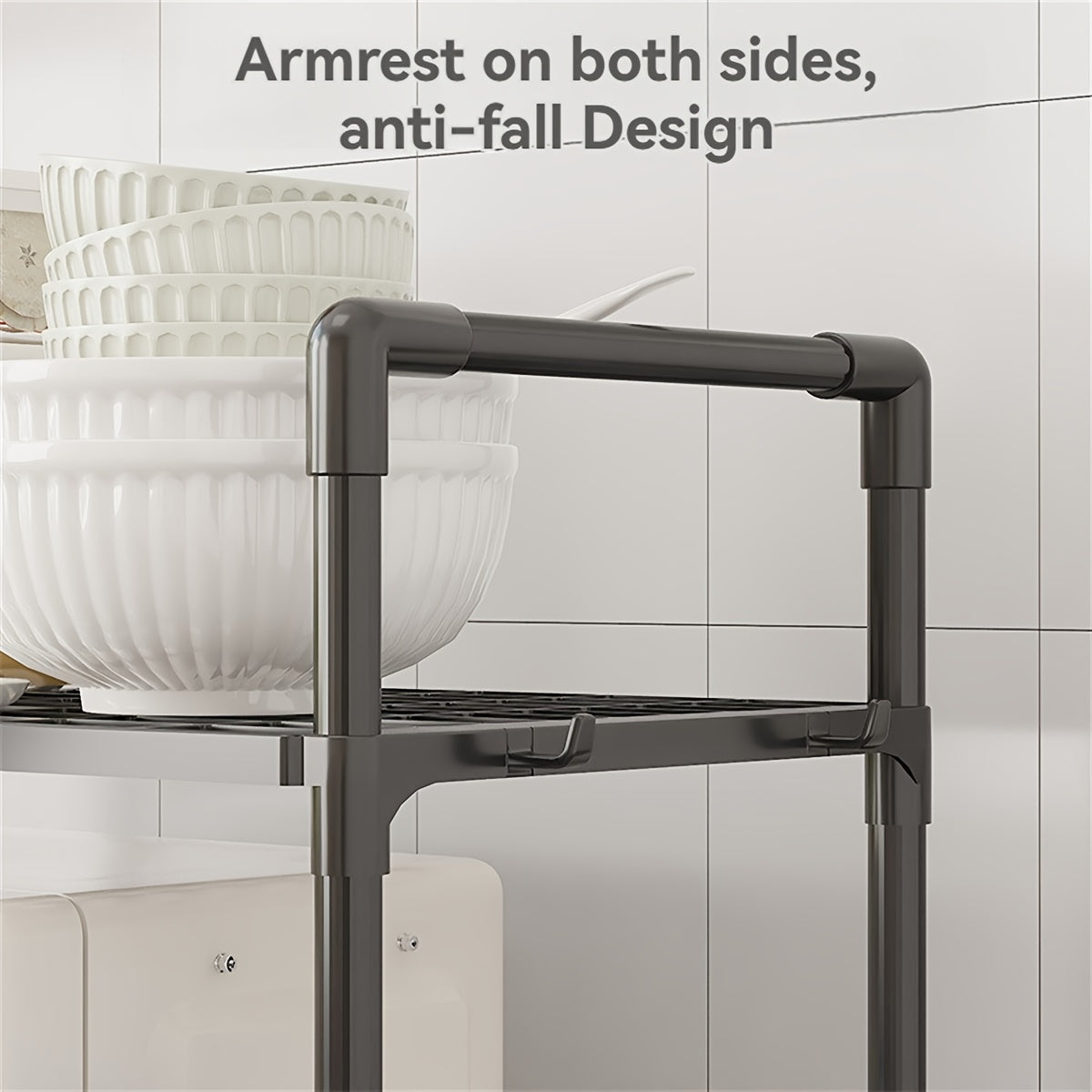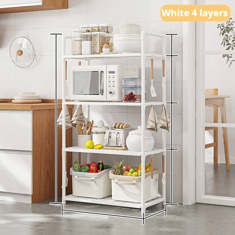 Четырехъярусный комплект стеллажей для хранения с универсальными функциями — простая сборка, изготовлен из оцинкованного металла и пластика, компактный и портативный для организации кухонных и ванных принадлежностей.