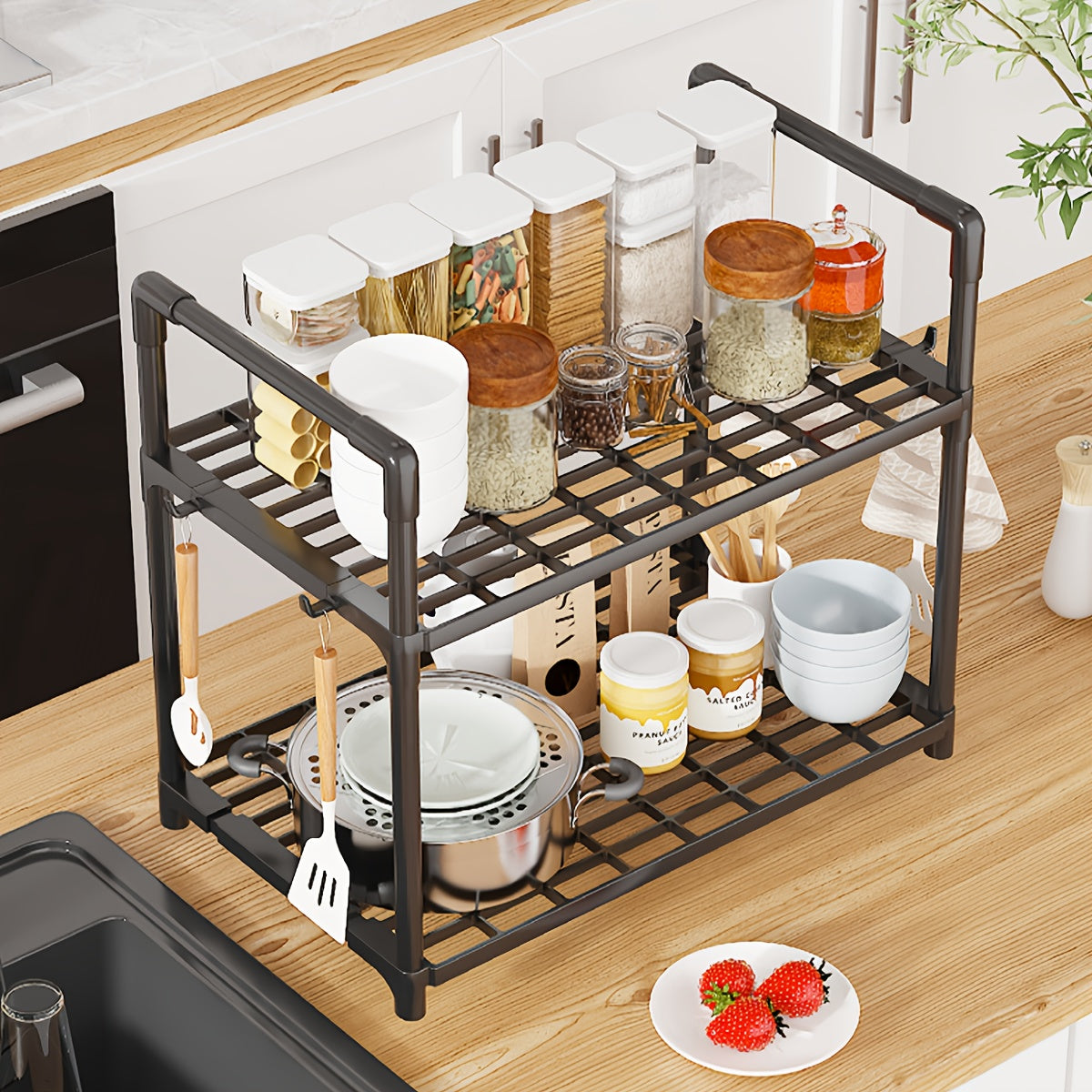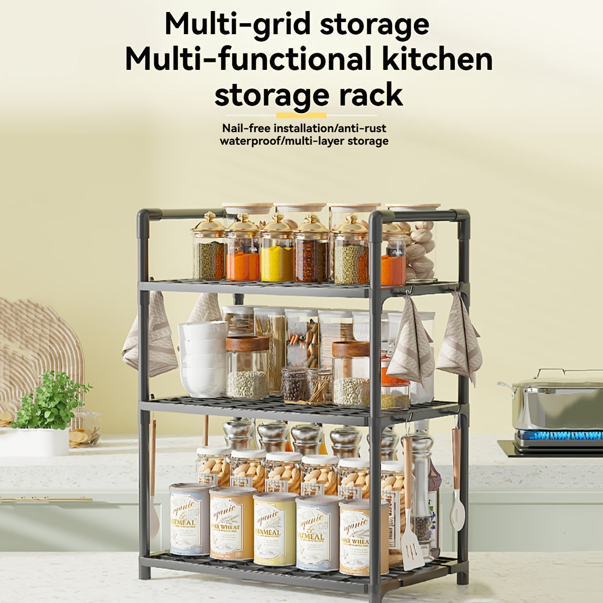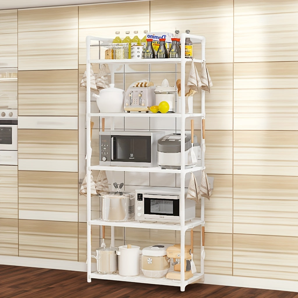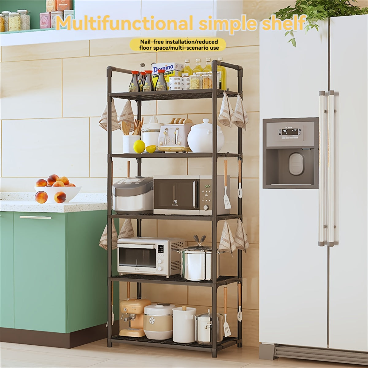 Четырехъярусный комплект стеллажей для хранения с универсальными функциями — простая сборка, изготовлен из оцинкованного металла и пластика, компактный и портативный для организации кухонных и ванных принадлежностей.