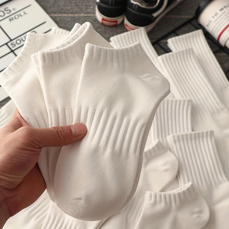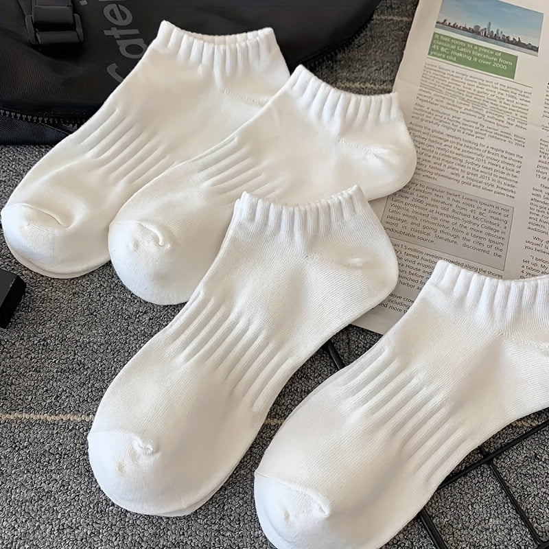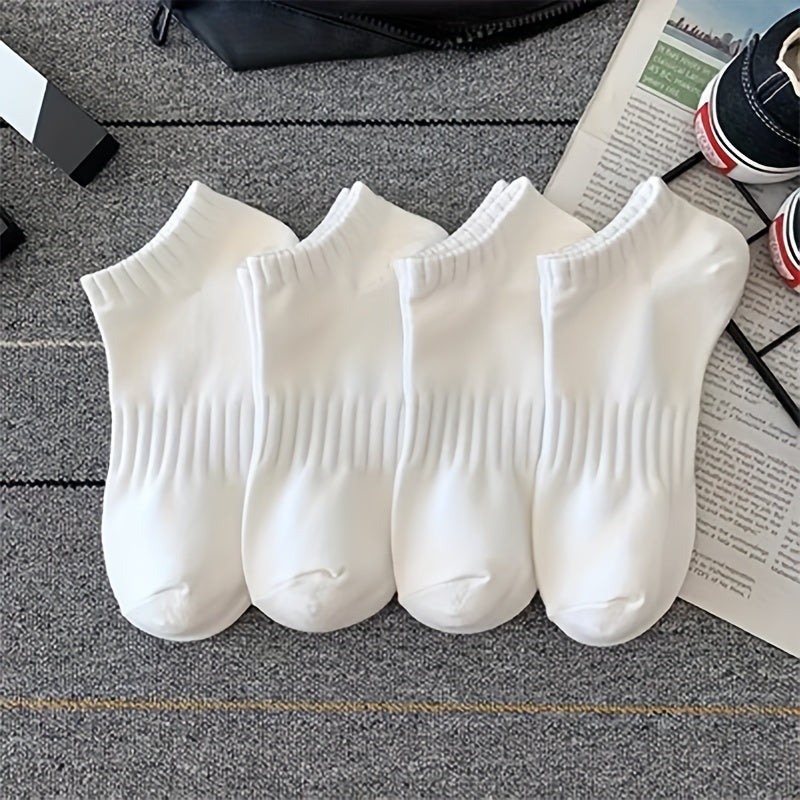 4 белых носка средней длины: мягкий, эластичный полиэстер, дышащая вязка для спорта и повседневной носки, идеально подходят для парного сочетания